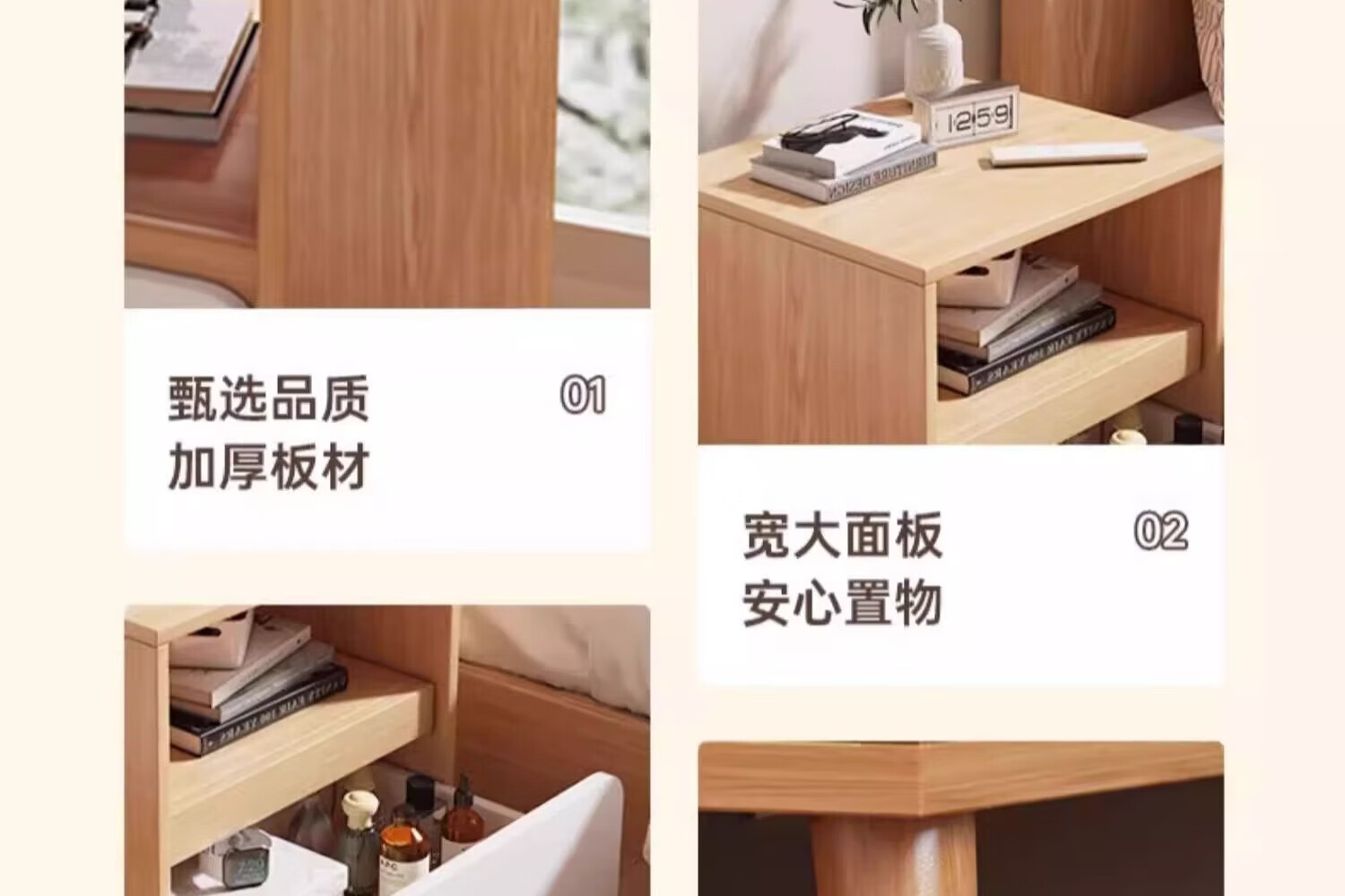 Haosenmeng Bedside Table Bedroom 2025 New Small Storage Bedside Storage Cabinet Modern Simple Extremely Narrow Bedside Table Small Apartment Recommended Goods Jisuda-Double Draw
