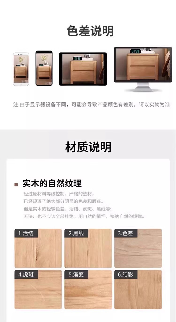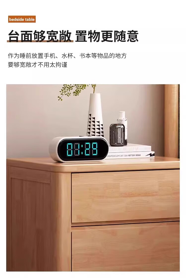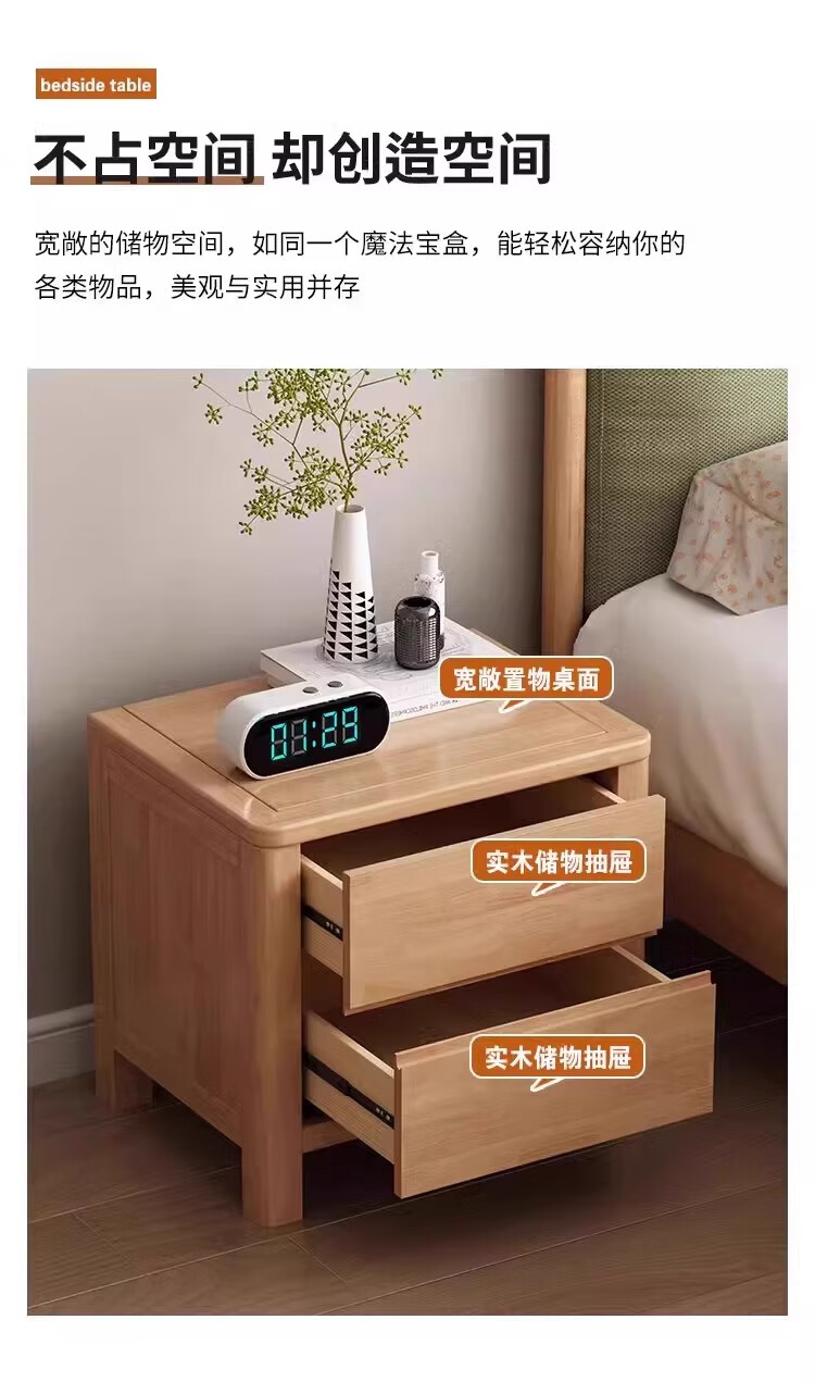 All solid wood bedside table modern minimalist rubber wood chest of drawers Nordic lockable storage cabinet mini bedside table beech color door-to-door delivery 47x40x47cm