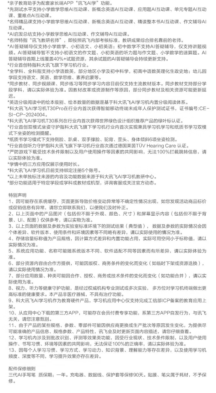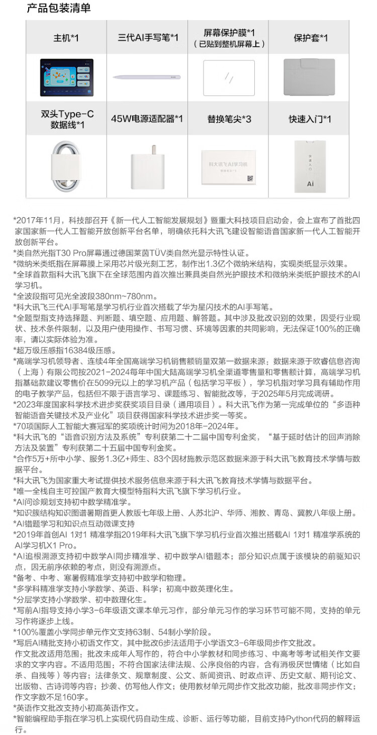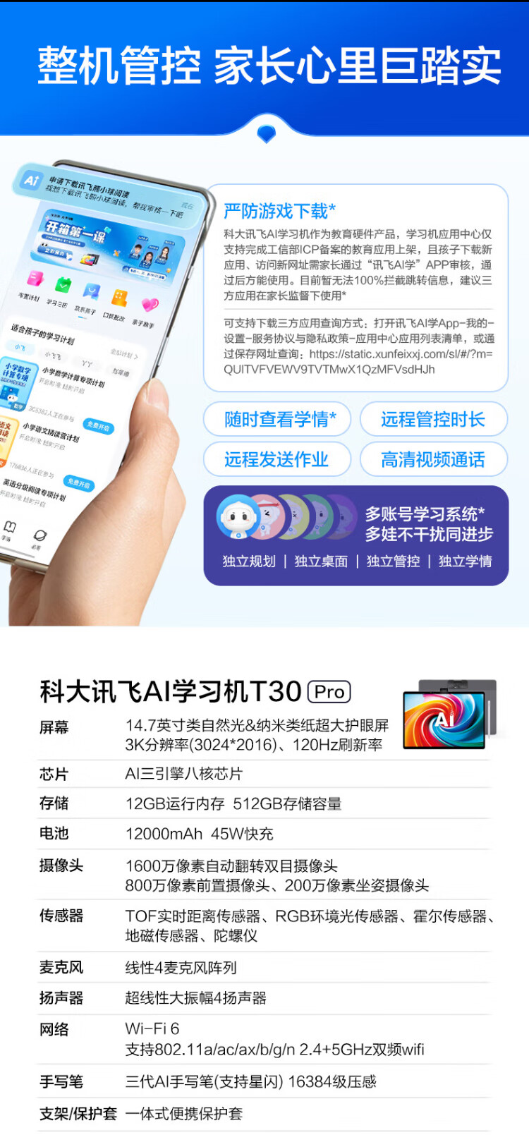 IFlytek AI flagship learning machine T30 Pro 14.7-inch super eye-protecting screen High school and college entrance examination homologous technology Spark + DeepSeek dual AI model 12 + 512G