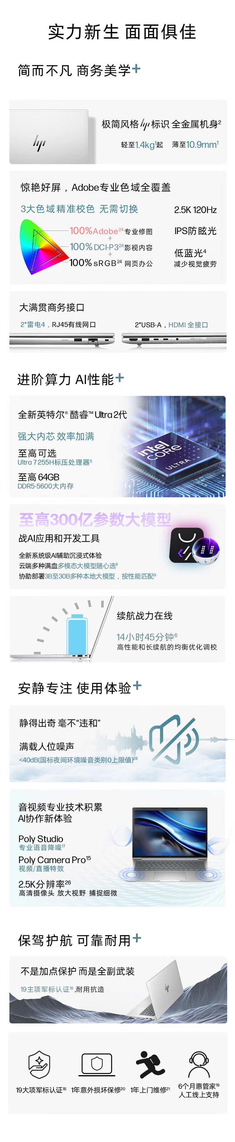 HP War 66+ Series 14-inch 2025 Thin and Light Office Laptop Second Generation Core Ultra7 255H 32G 1T 2.5K 1-year Accident Insurance National Subsidy