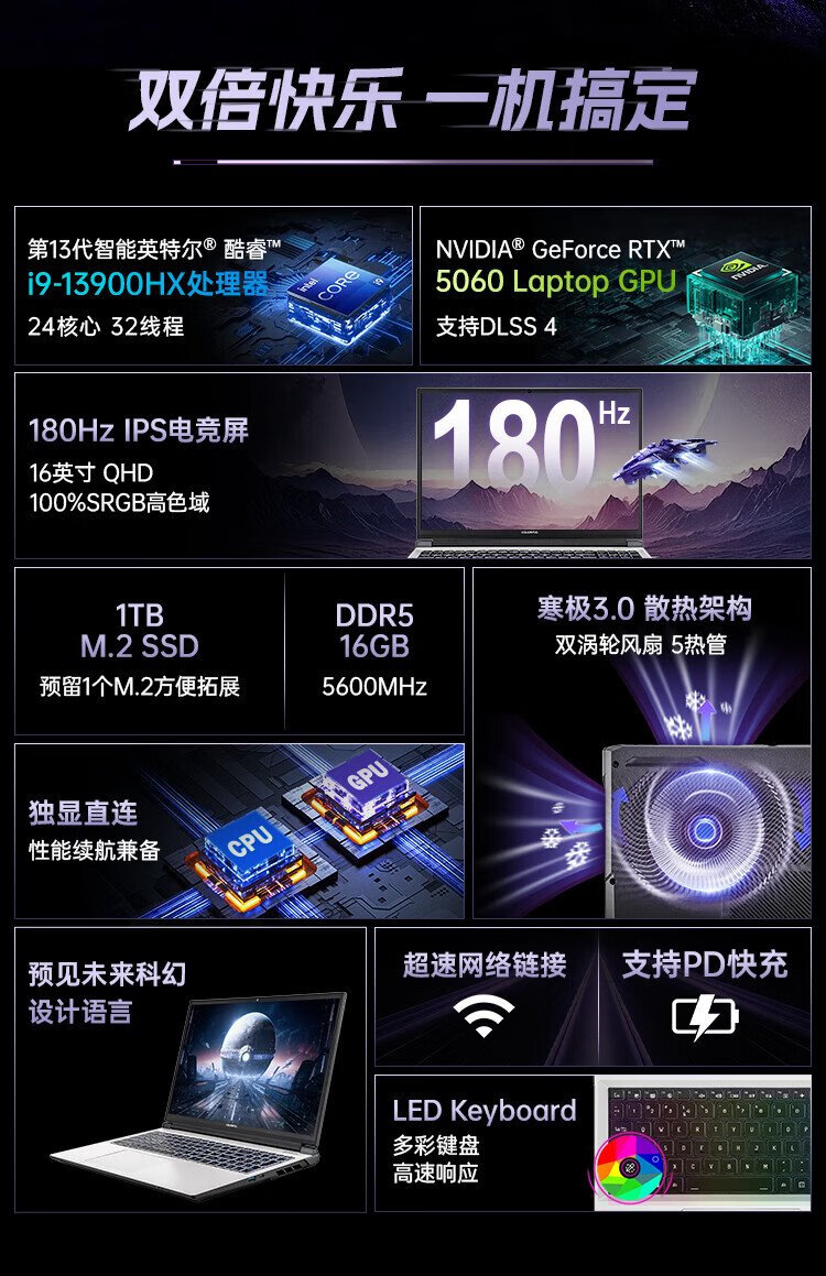 Colorful Hidden Star P16 Pro 13th generation Core i9 16-inch gaming laptop (i9-13900HX 16G 1TB RTX5060 180Hz) updated version