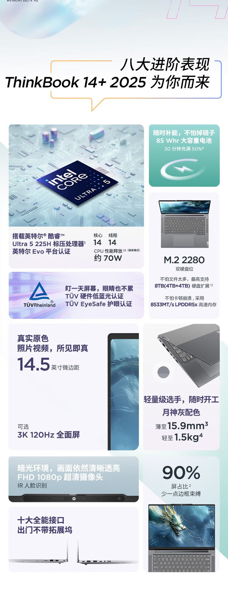 ThinkPad Lenovo laptop ThinkBook14+ 2025 AI thin and light office notebook Intel Core Ultra5 14.5 inches 32G 1T 3K 120Hz