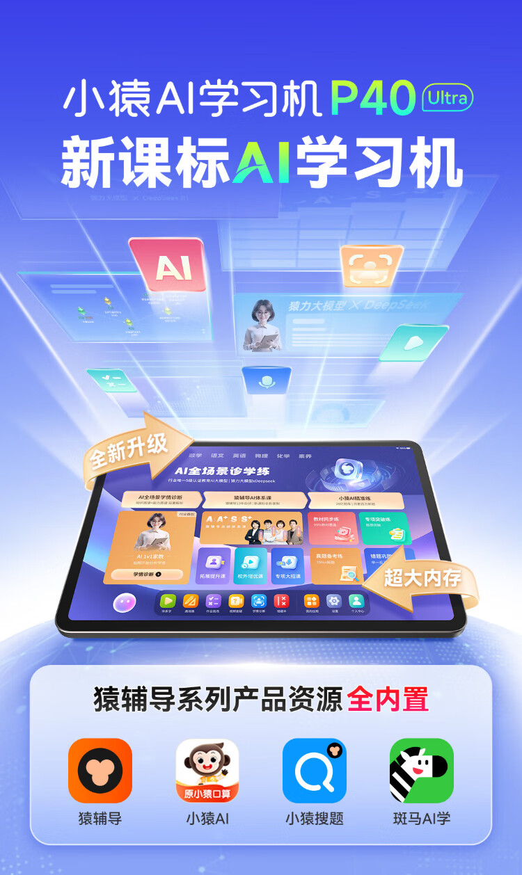 Xiaoyuan AI Learning Machine P40Ultra National Subsidy Province 1400 AI Full Scenario Learning Diagnosis All-Purpose Tutoring Training Machine Tablet Eye Protection Screen 12.3 inches 8+8+256