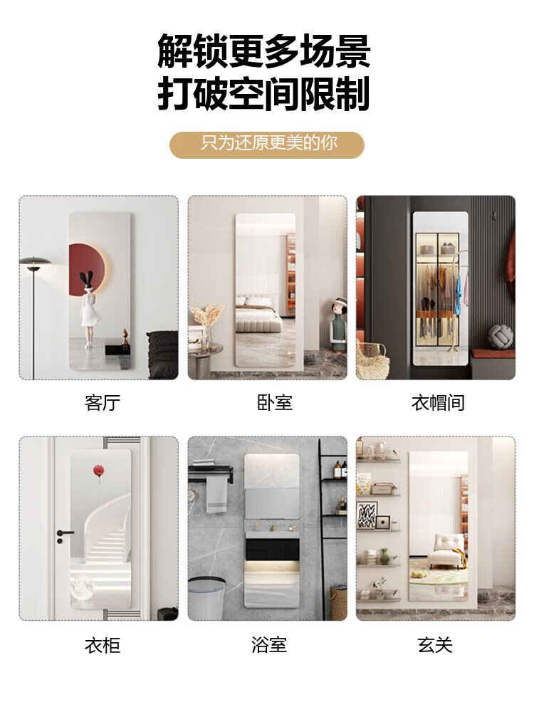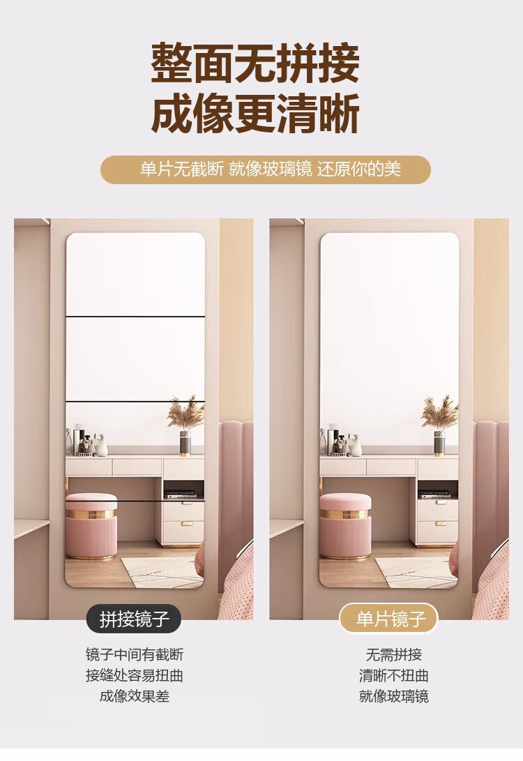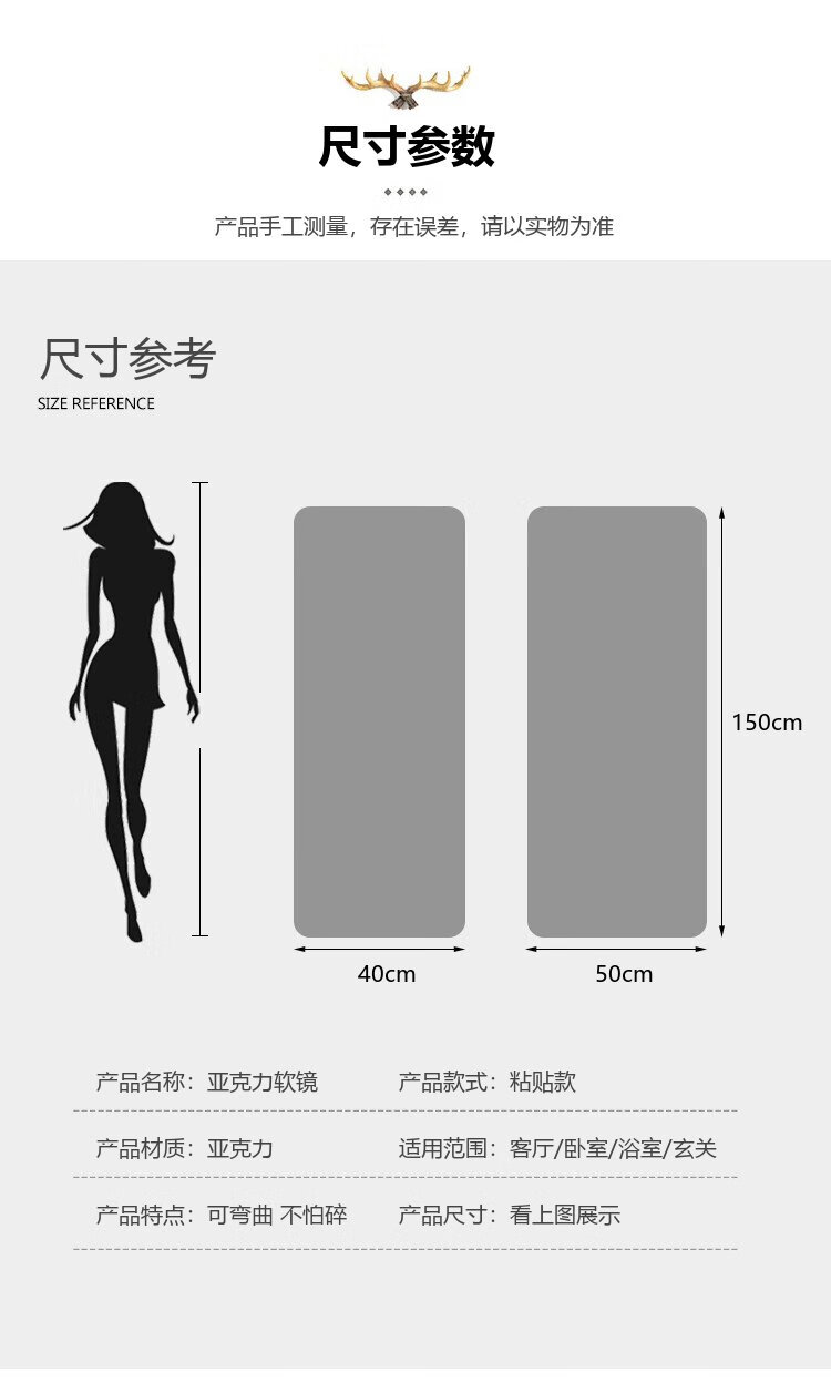 Xingkai weicher Acrylspiegel zur Wandmontage, selbstklebender Ganzkörperspiegel, Heimspiegel, HD-Spiegel JY61, 40 x 150 cm