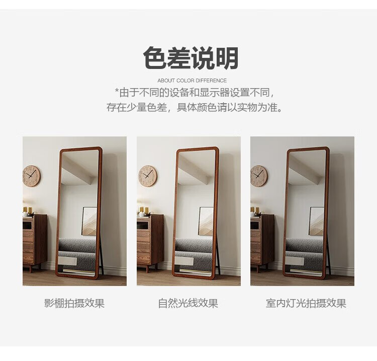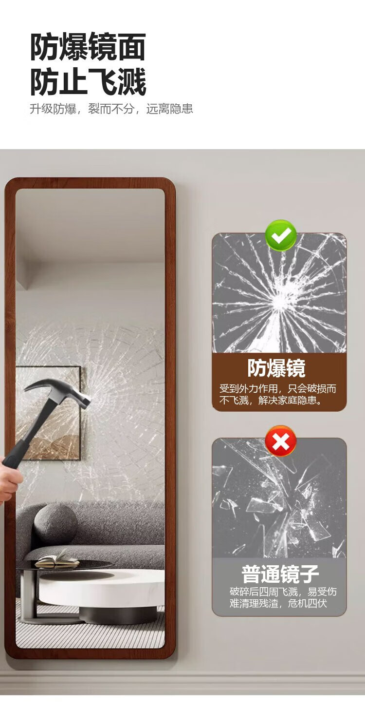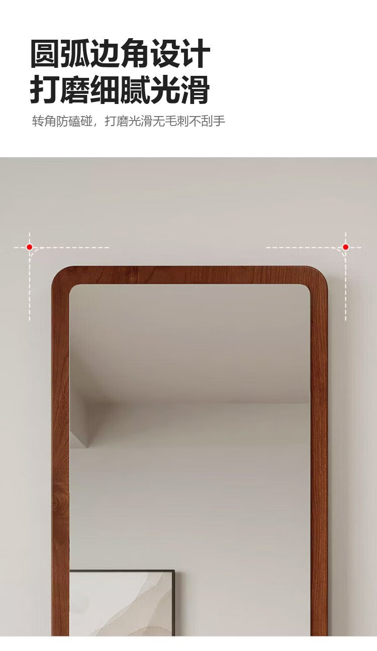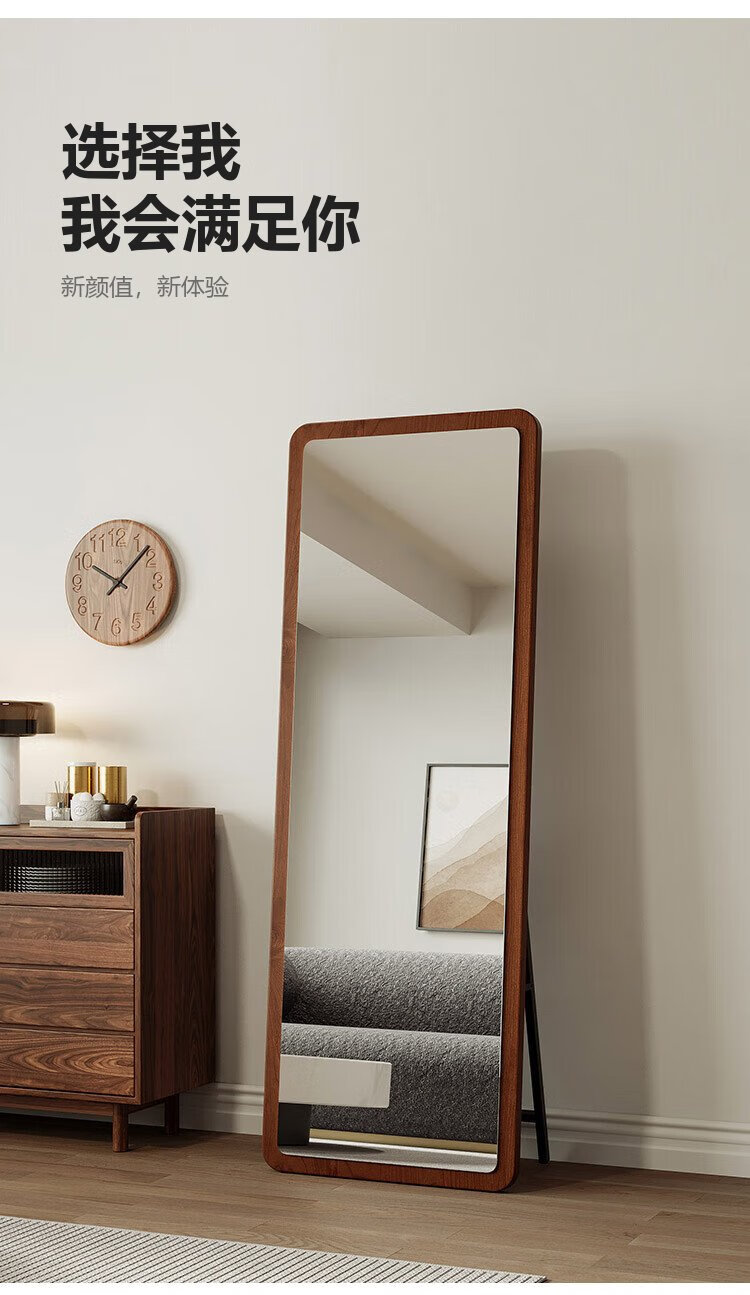 Yupin dressing mirror bedroom mirror full body mirror wall hanging home fitting floor wooden frame mirror JY78 walnut 160*50