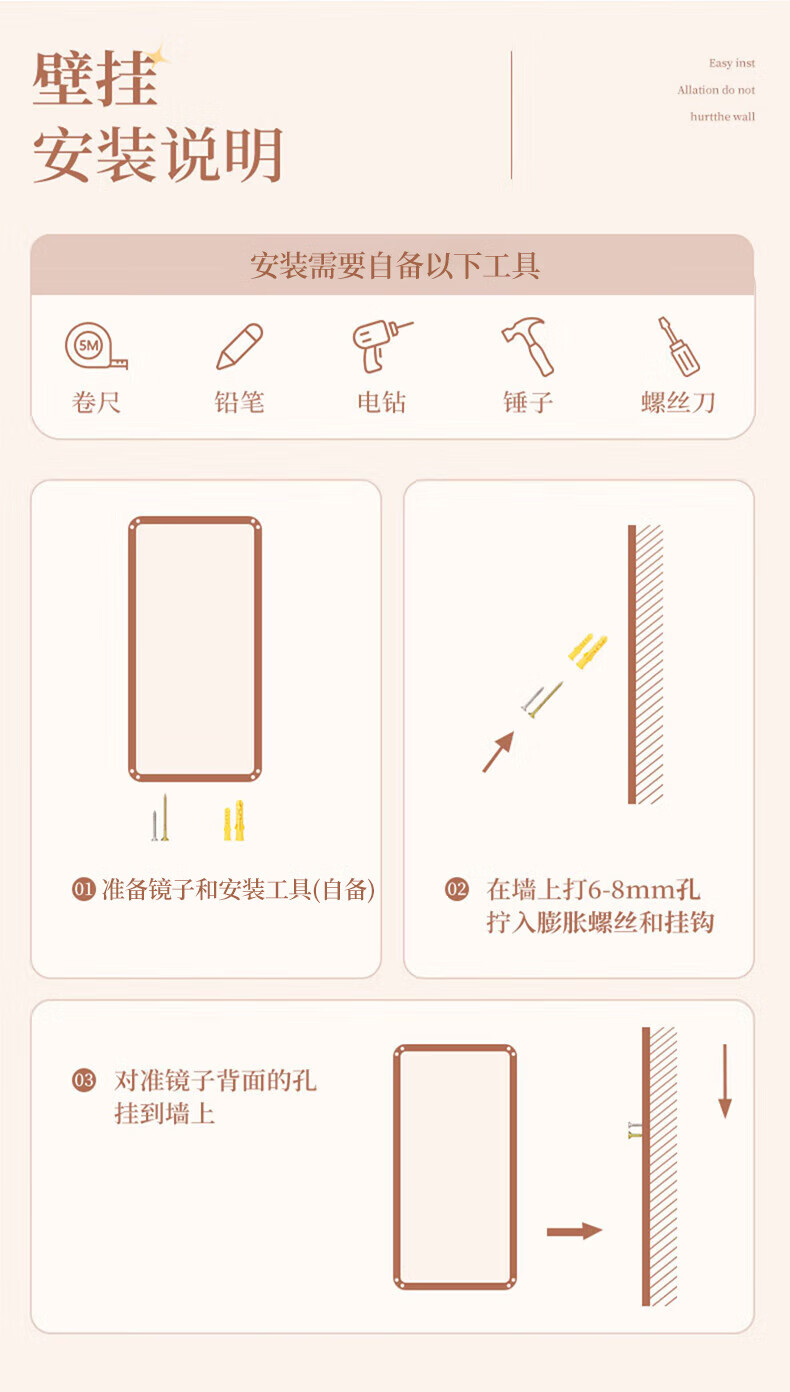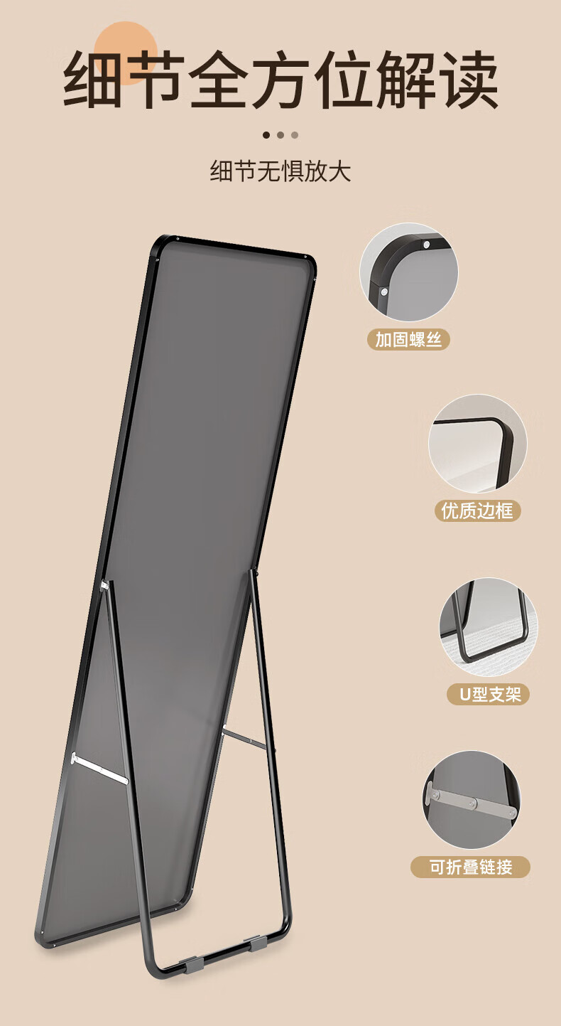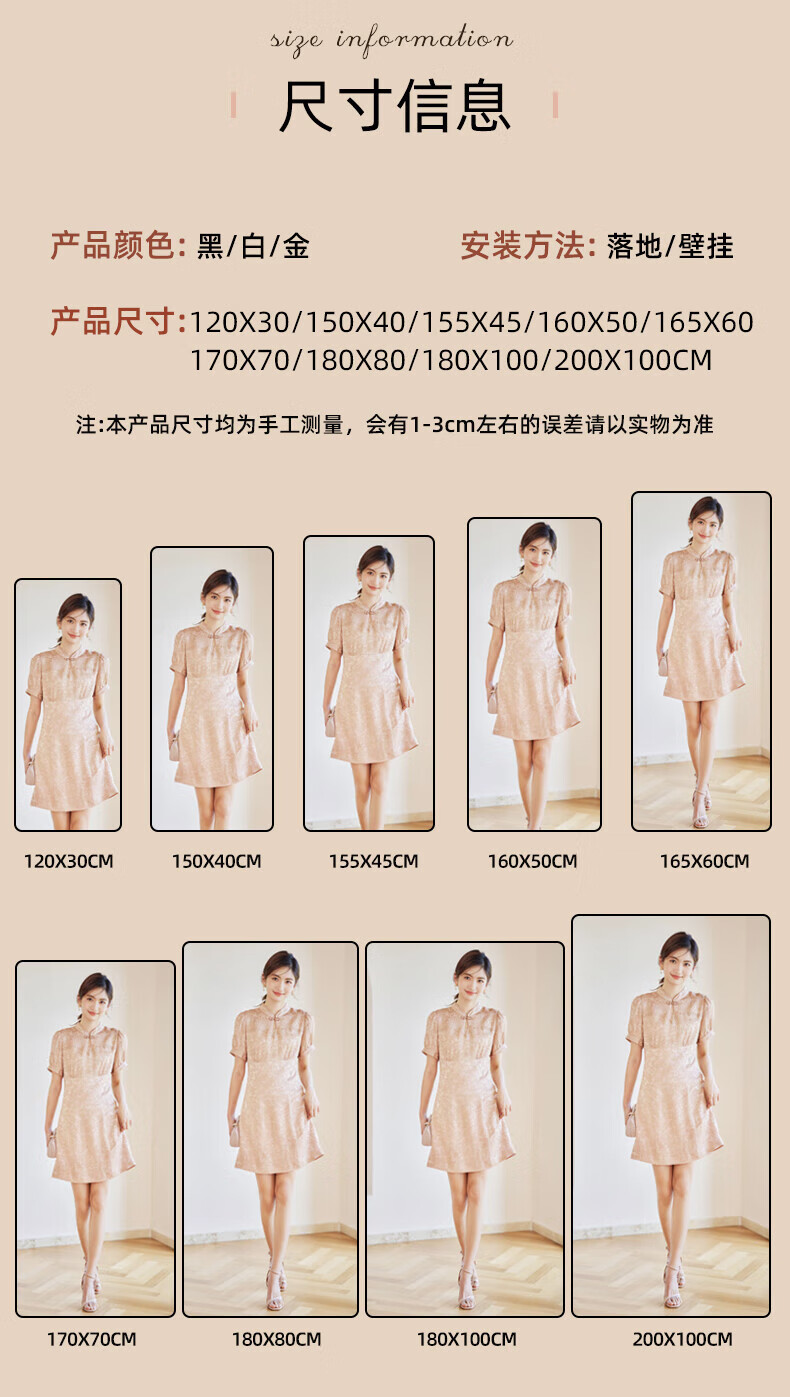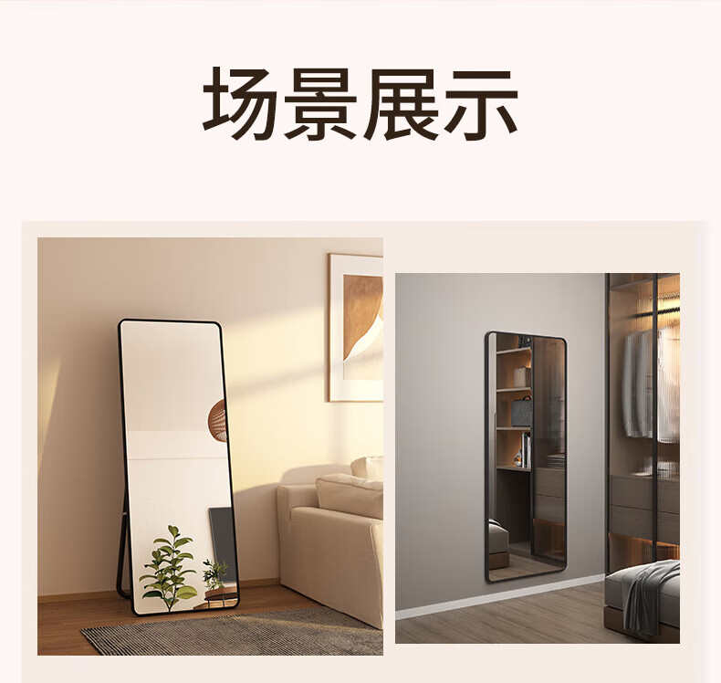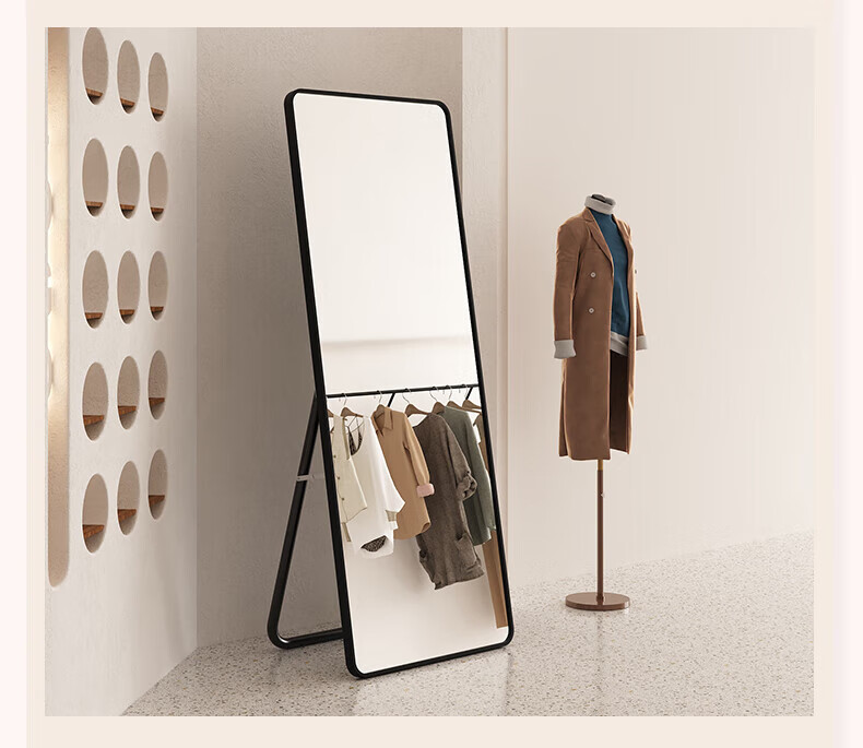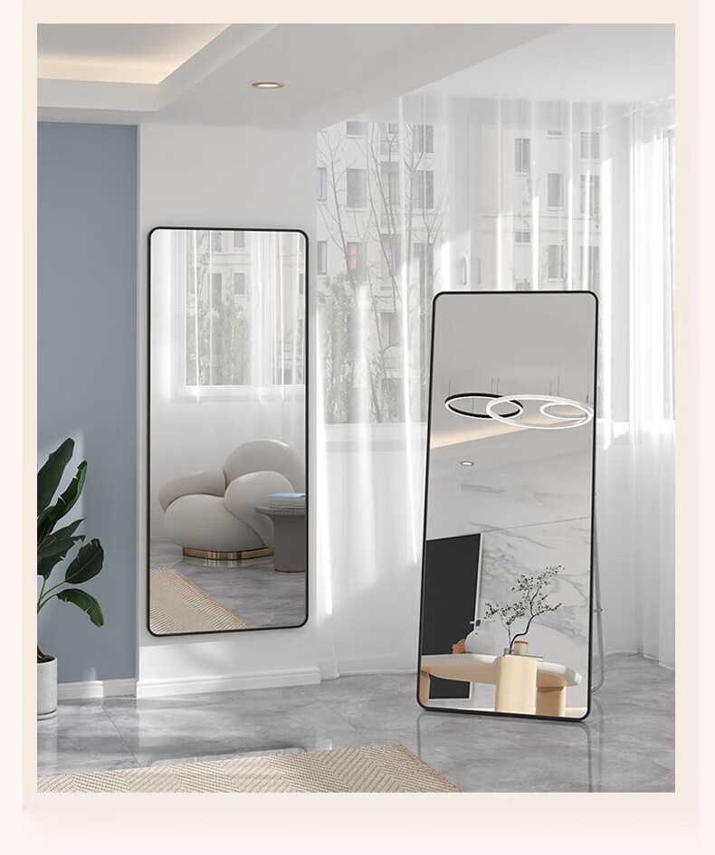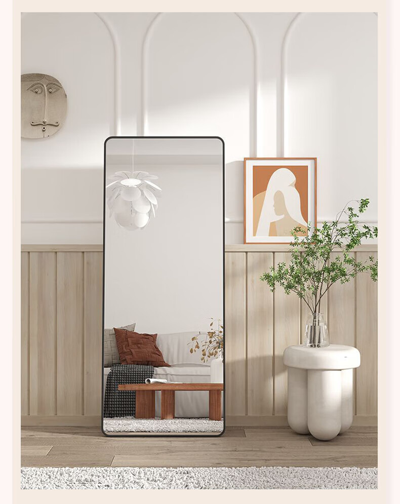 穿衣镜全身镜落地镜壁挂镜挂门服装店试衣镜挂穿一体简约北欧风 【圆角】典雅白150*40cm 送货上门