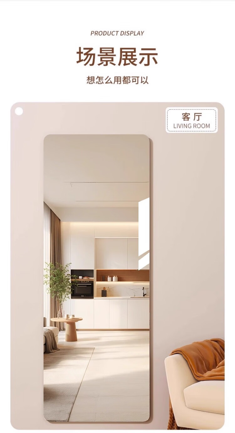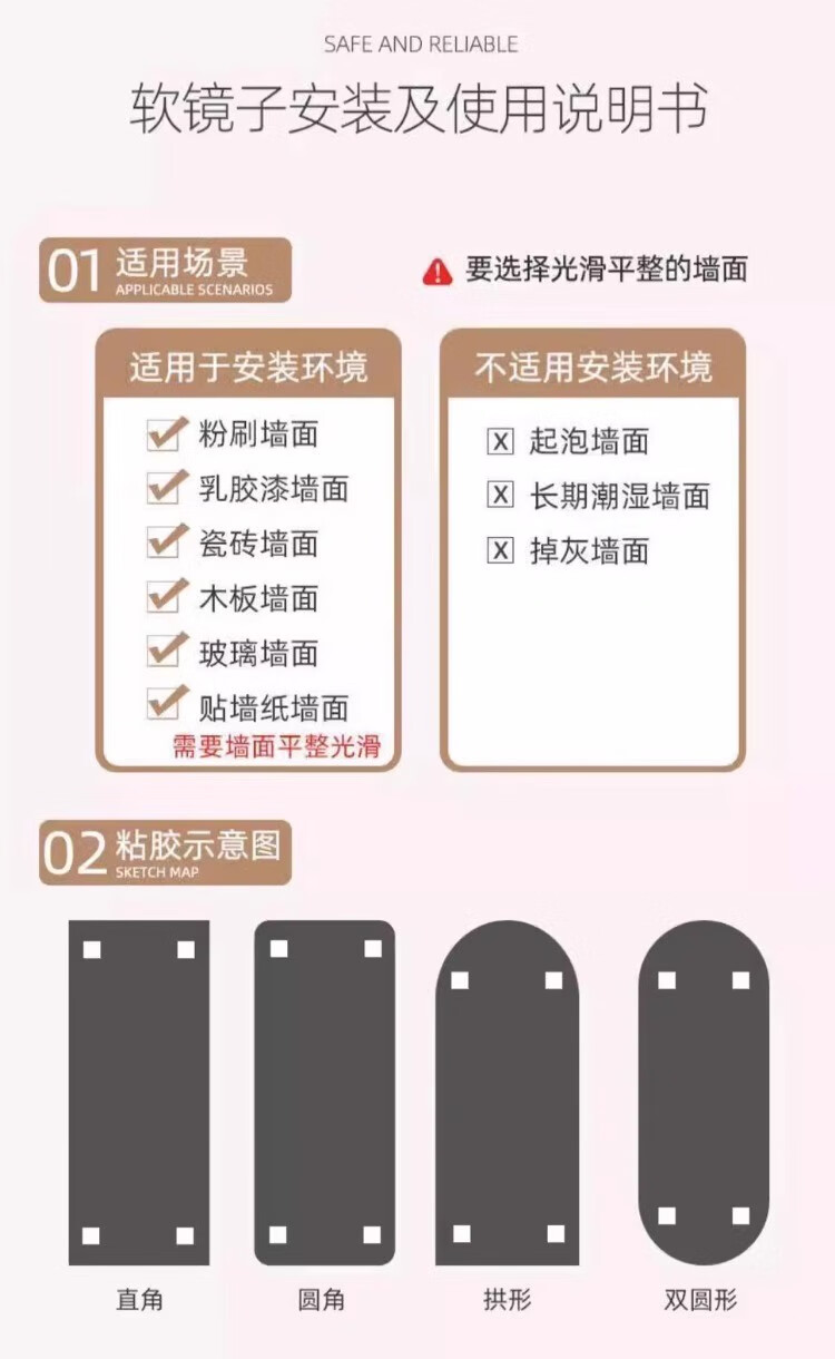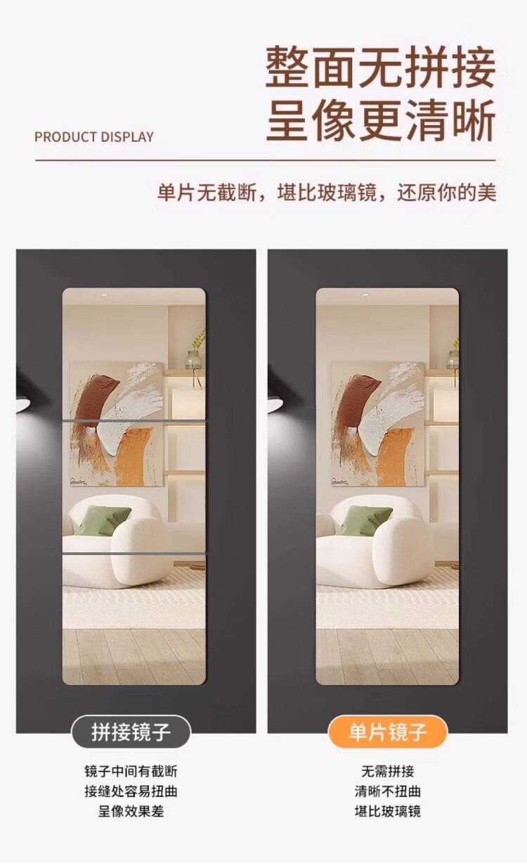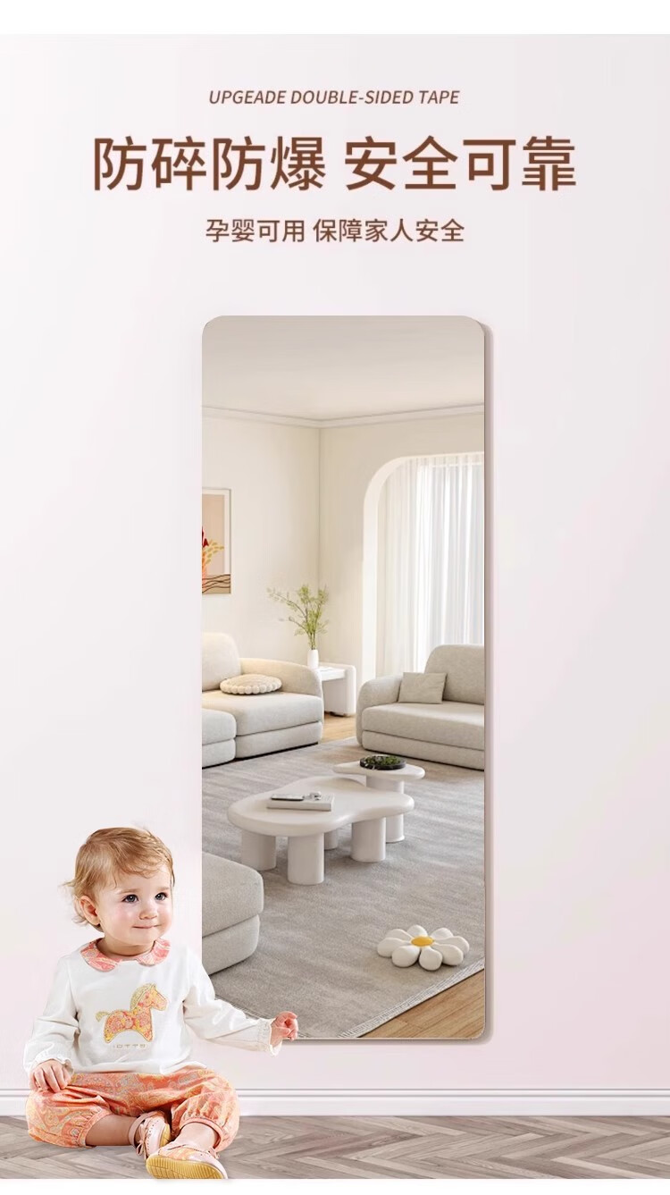 Miroir mural autocollant doux en acrylique, miroir mural haute définition, miroir d'entretien mural, miroir de dressing complet, coin arrondi, 40 x 150 cm, miroir souple haute définition antidéflagrant