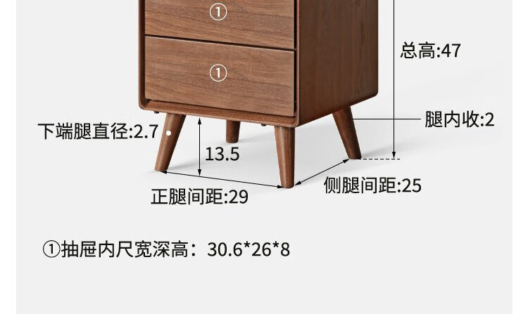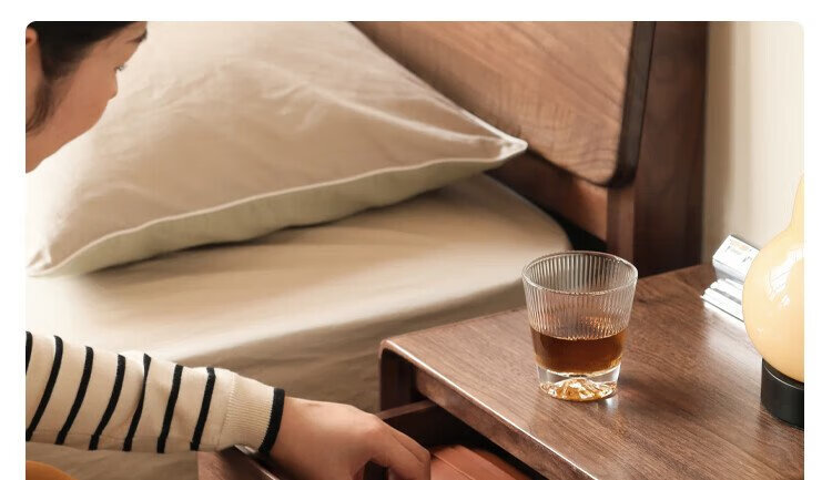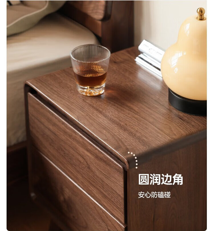 Genji Wood Language Solid Wood Bedside Table Home Bedroom Black Walnut Drawer Cabinet Storage Cabinet Modern Simple Bedside Cabinet