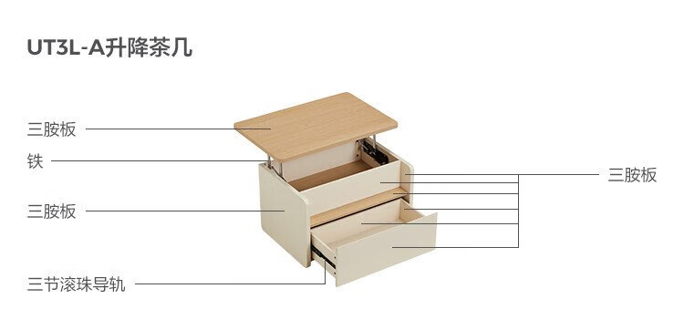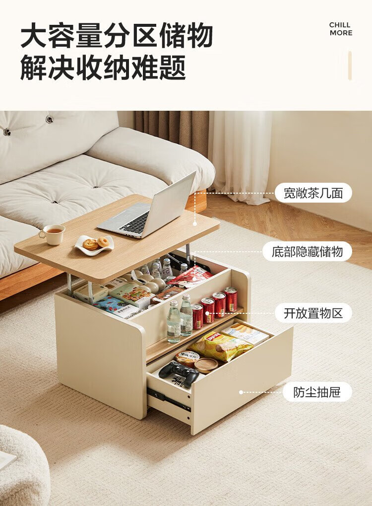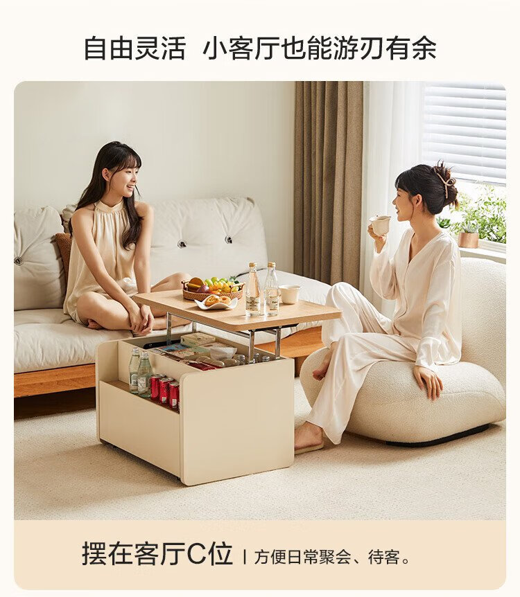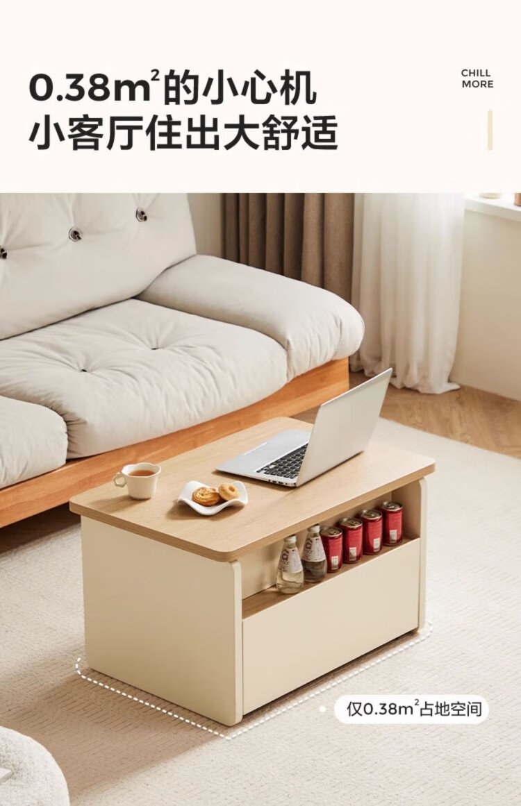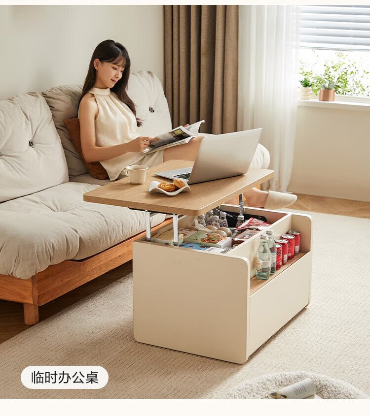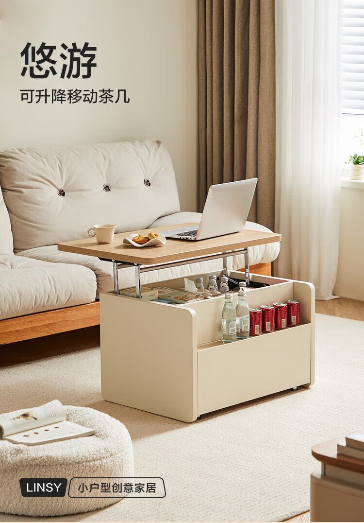 林氏家居可升降移动茶几桌客厅家用小户型奶油风沙发边几UT3L