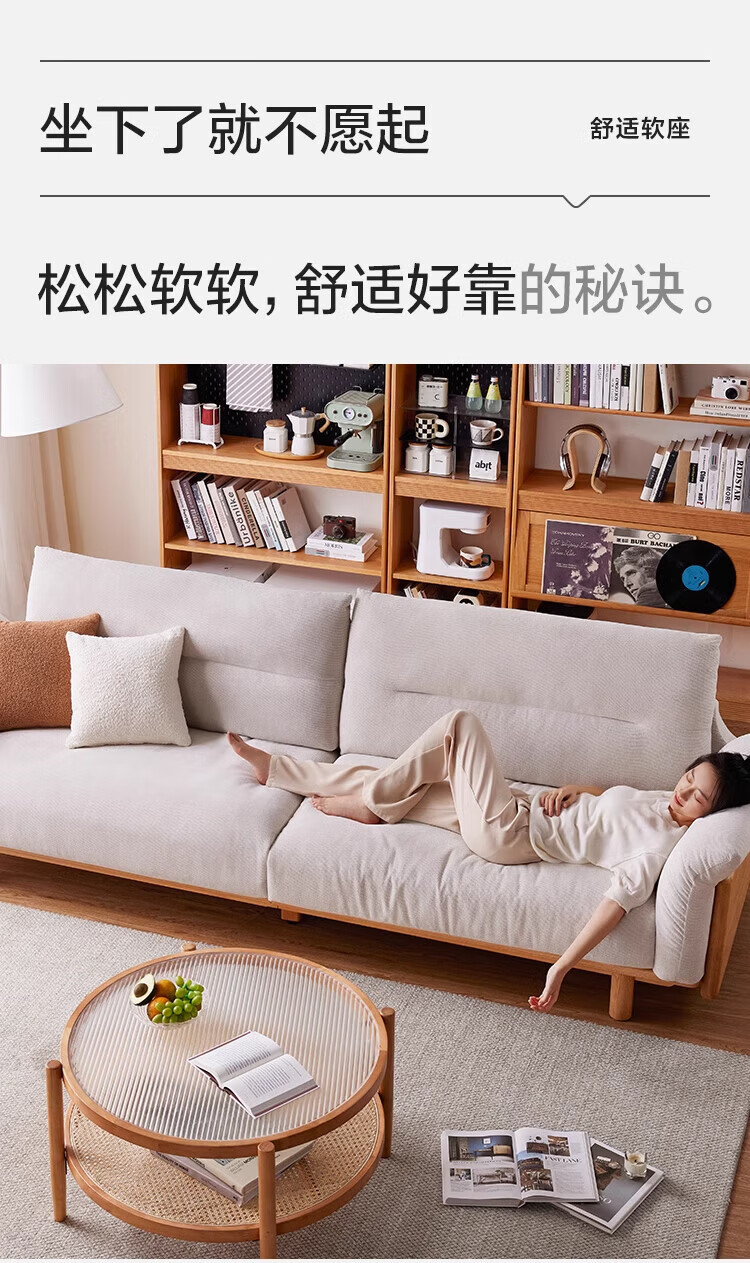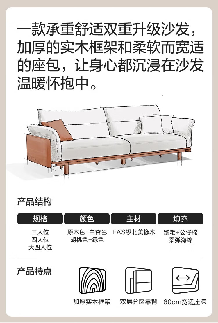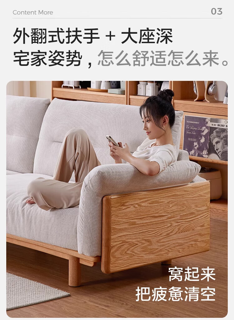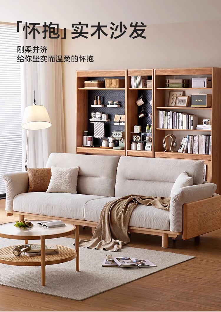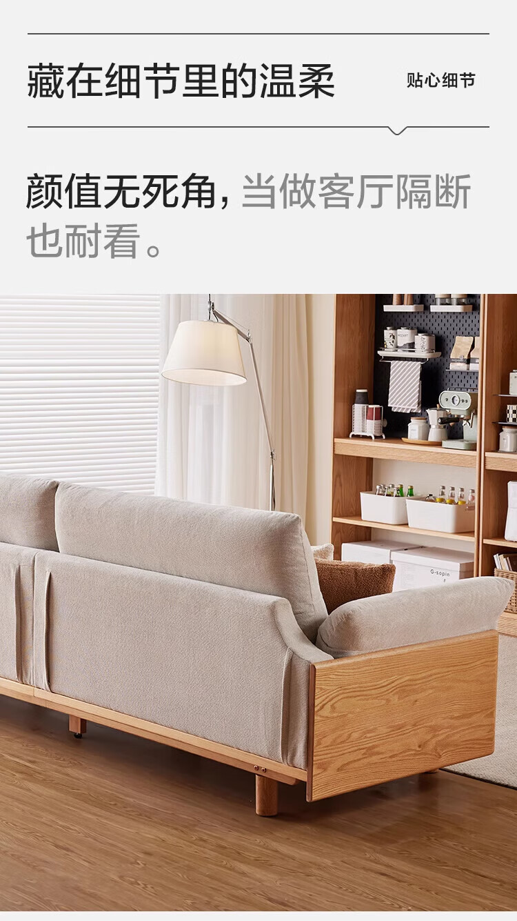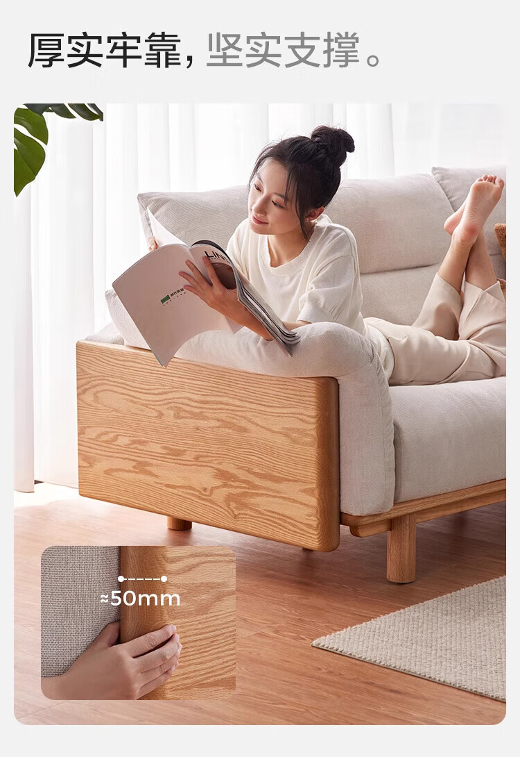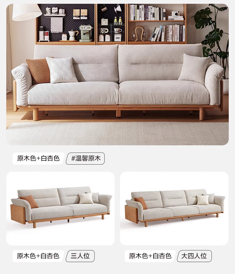 Lin's Home Nordic style log oak solid wood sofa living room small apartment LH122K3