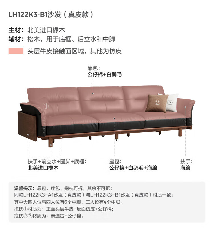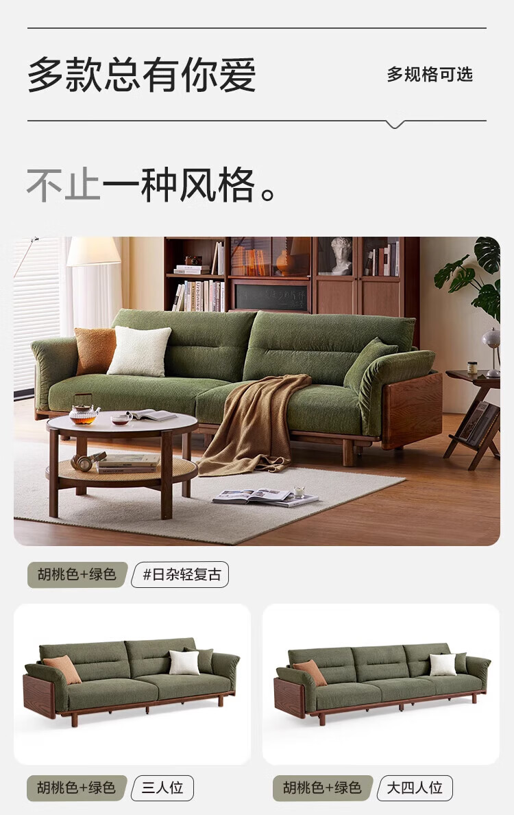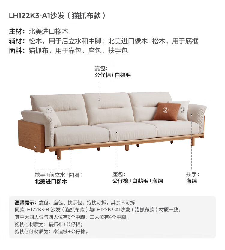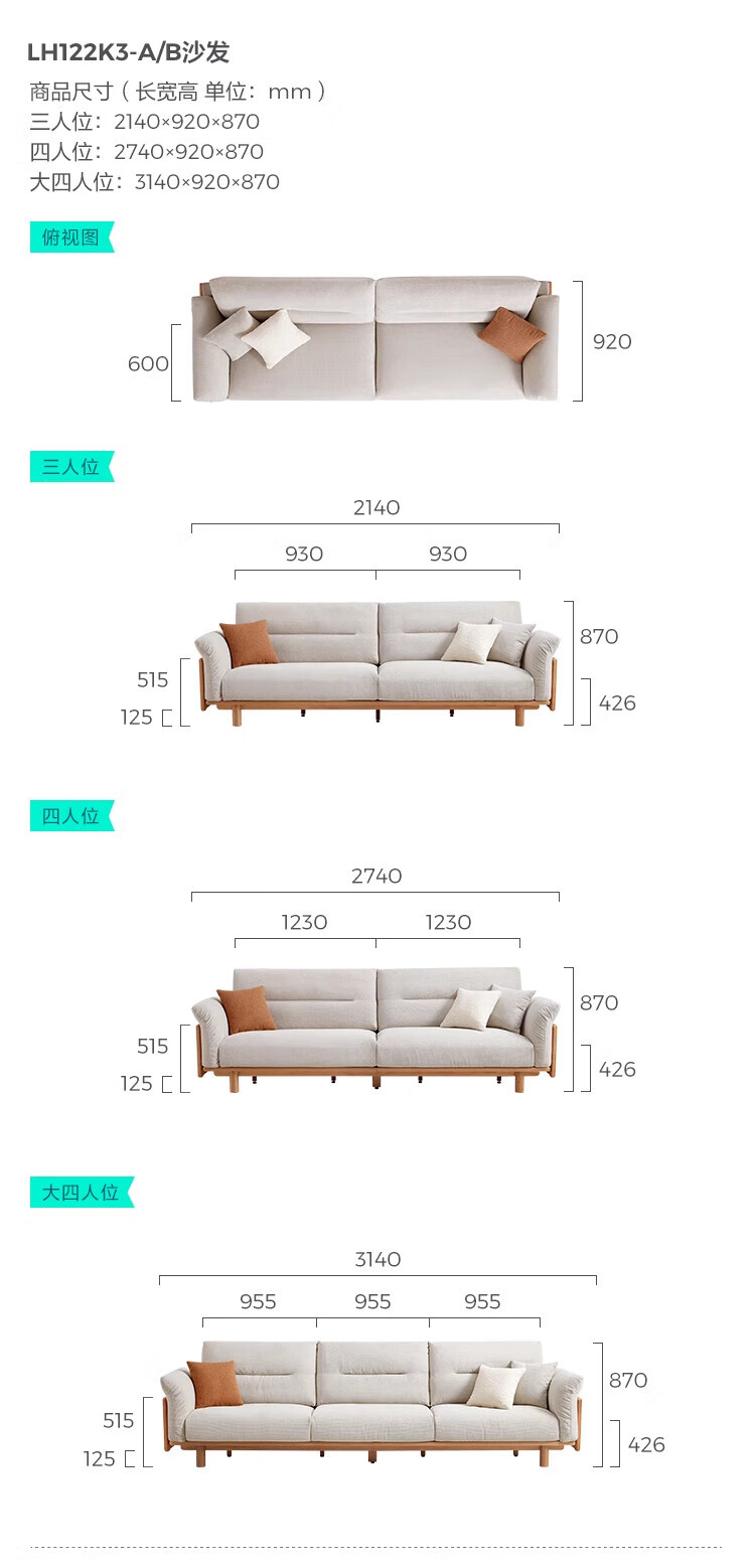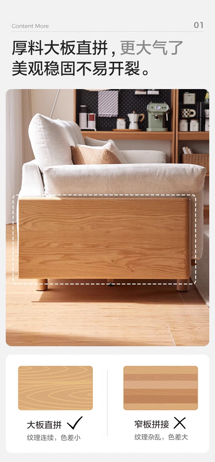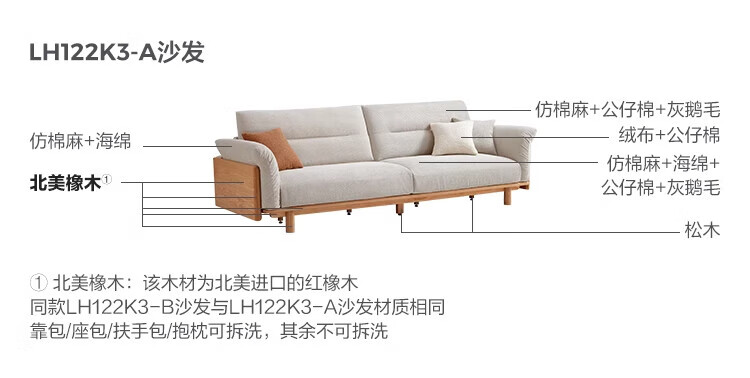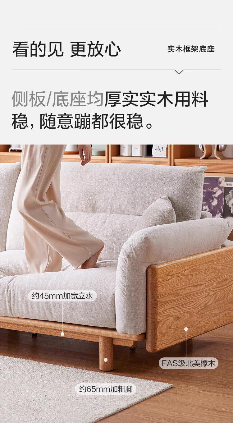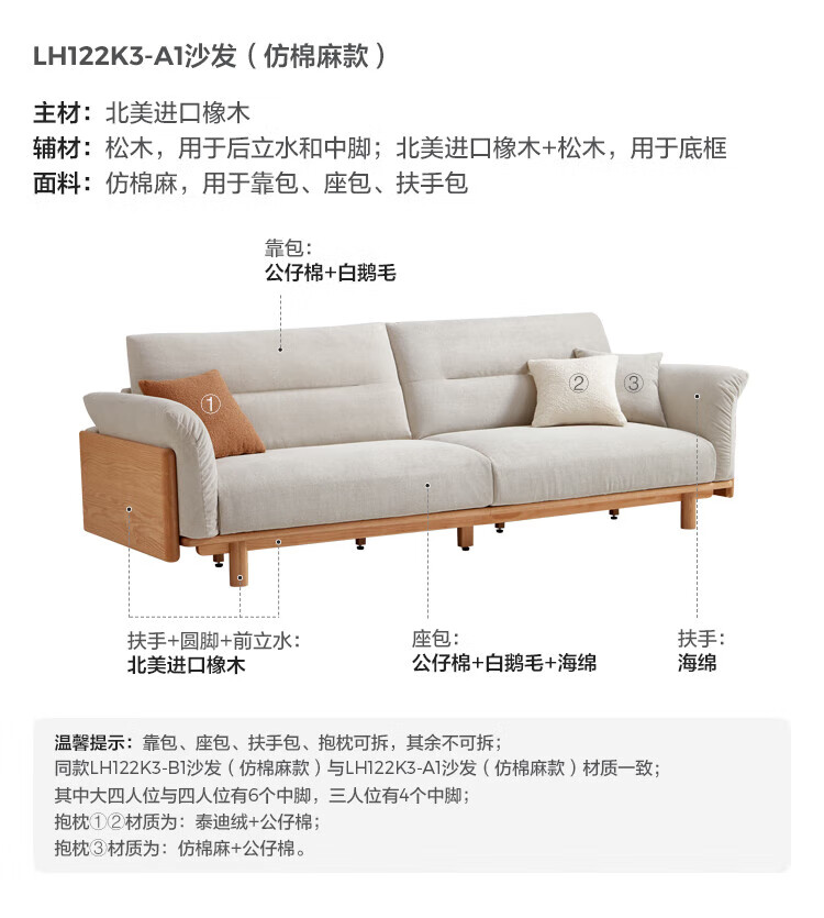 Lin's Home Nordic style log oak solid wood sofa living room small apartment LH122K3