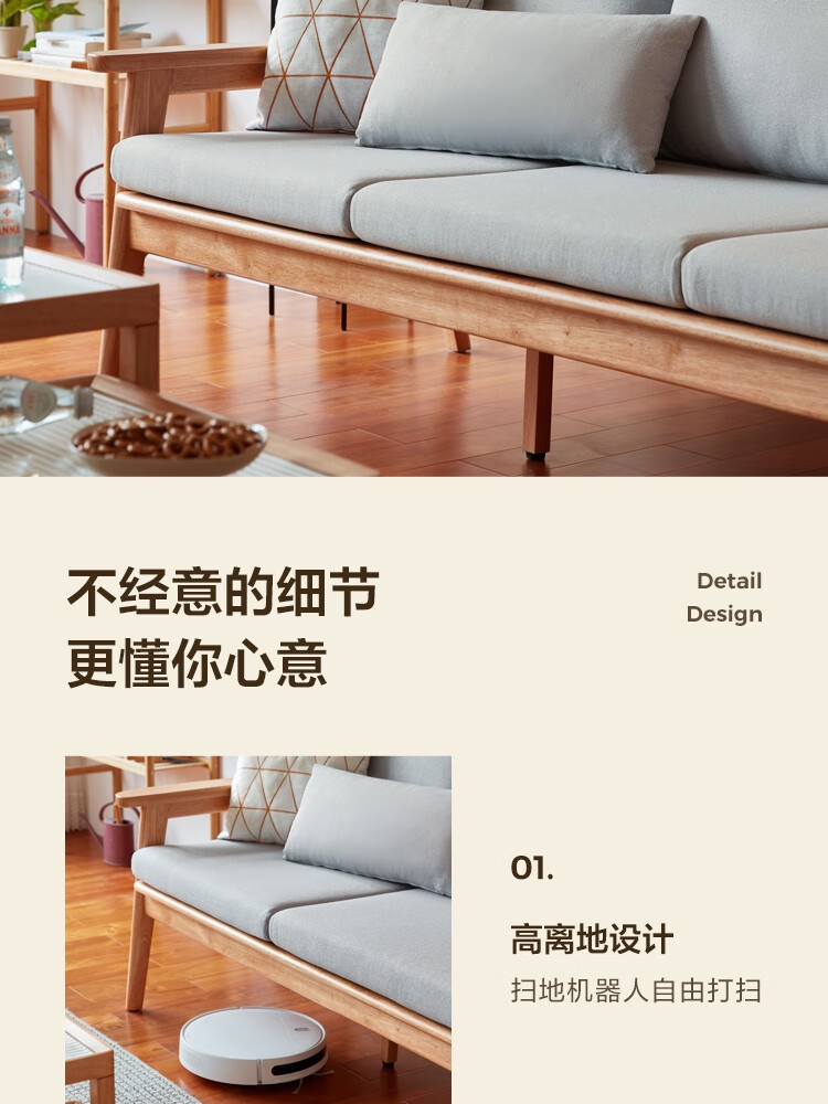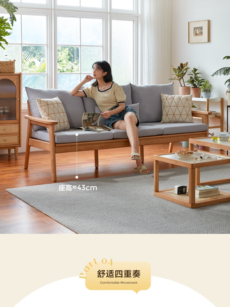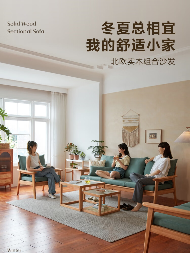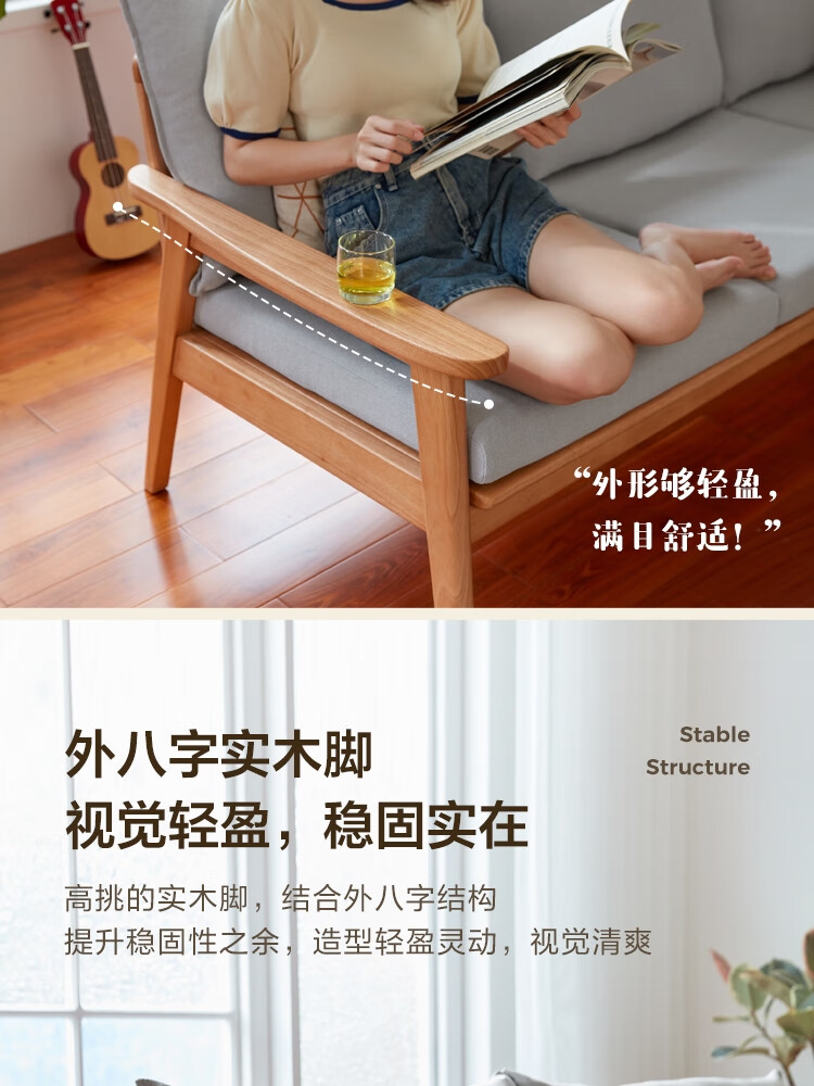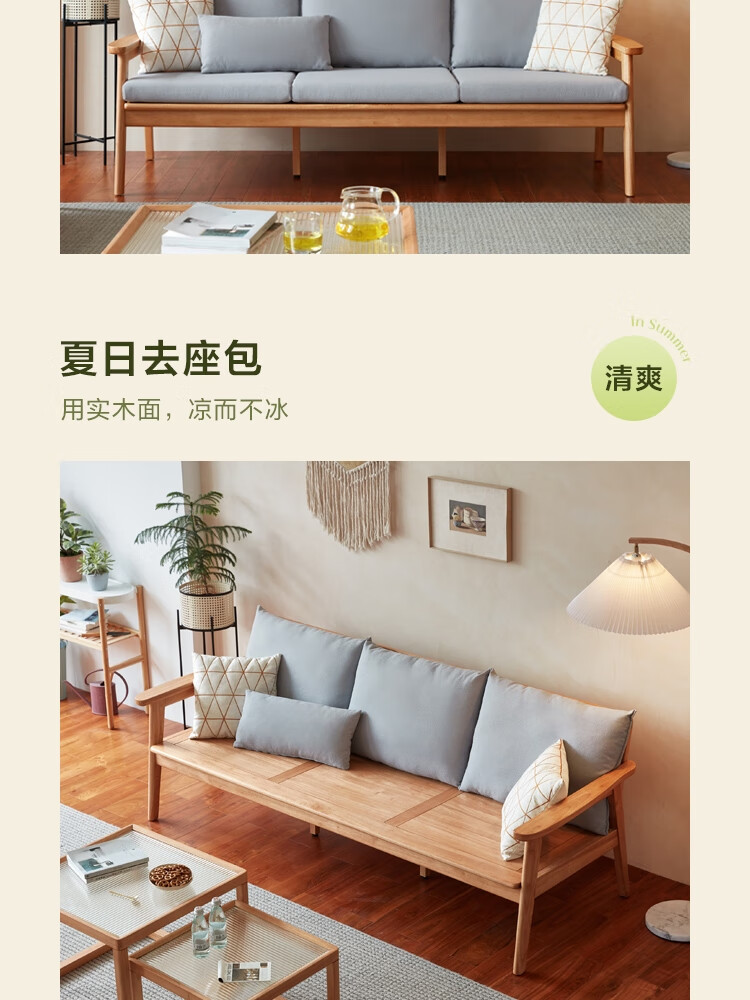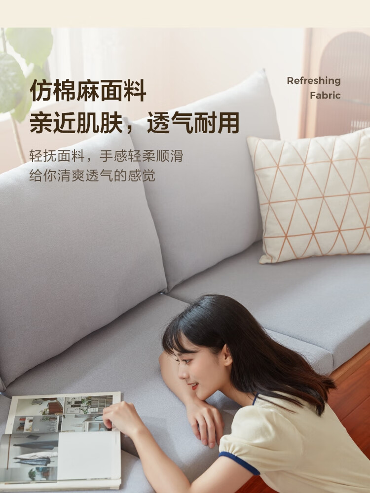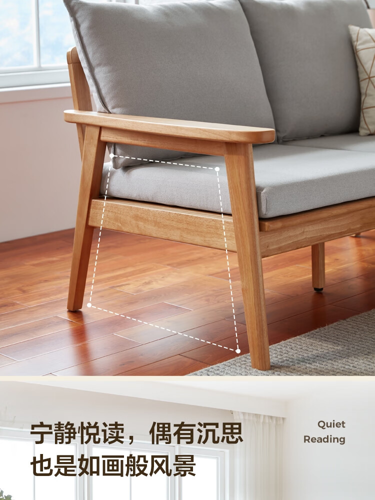 Lin's Home Nordic style solid wood fabric sofa new Chinese style living room simple three-seat straight small apartment sofa PK4K