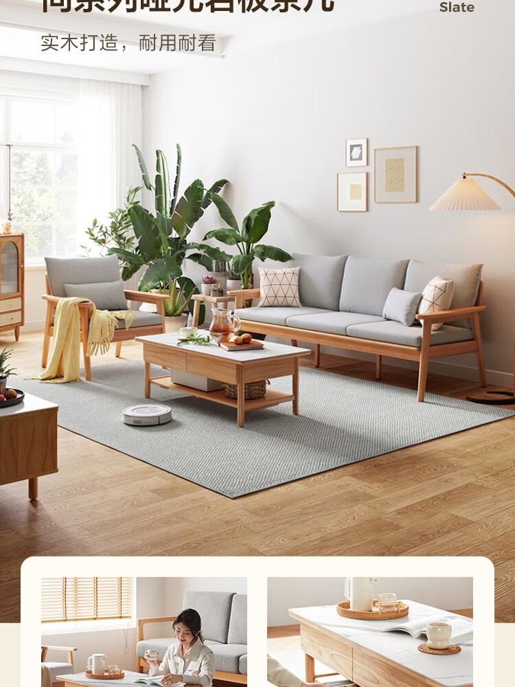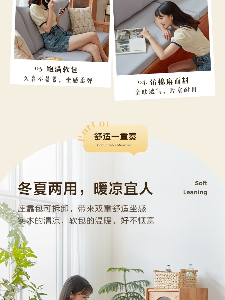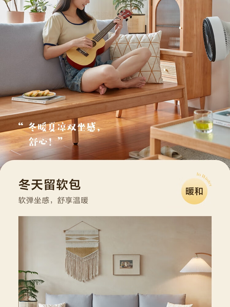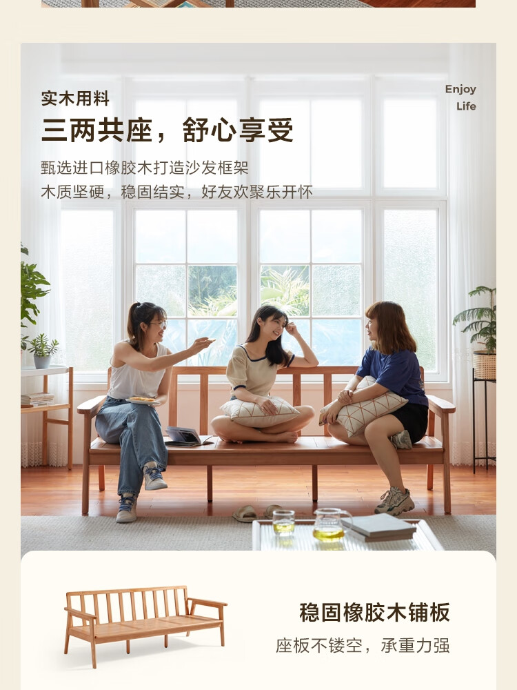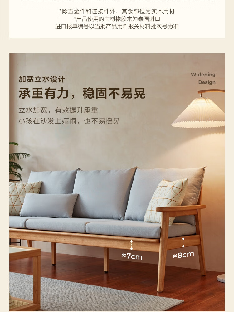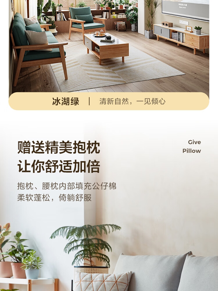Lin's Home Nordic style solid wood fabric sofa new Chinese style living room simple three-seat straight small apartment sofa PK4K