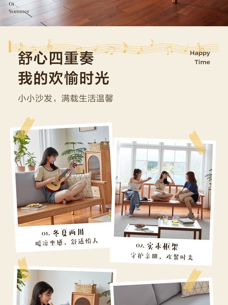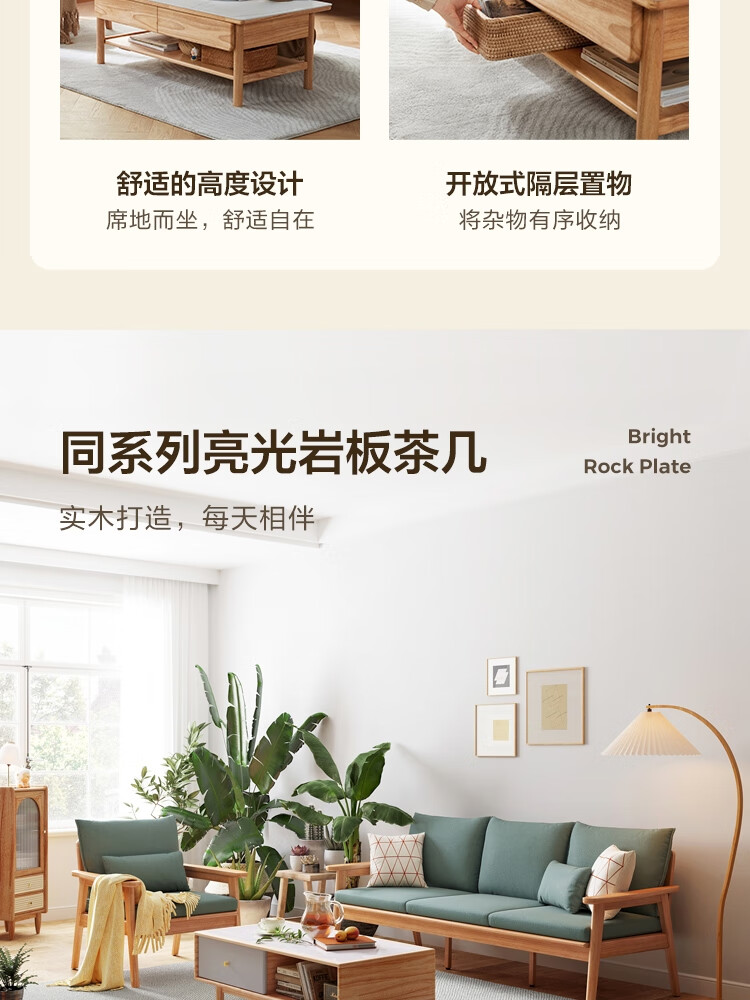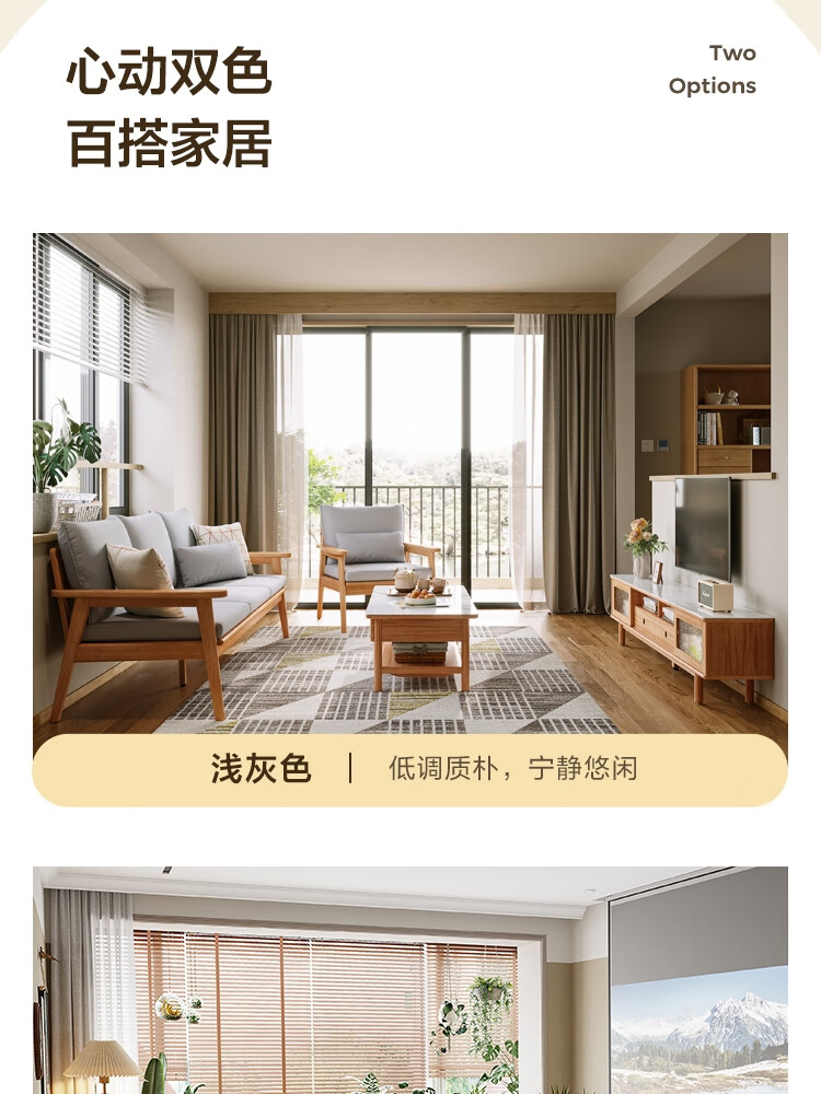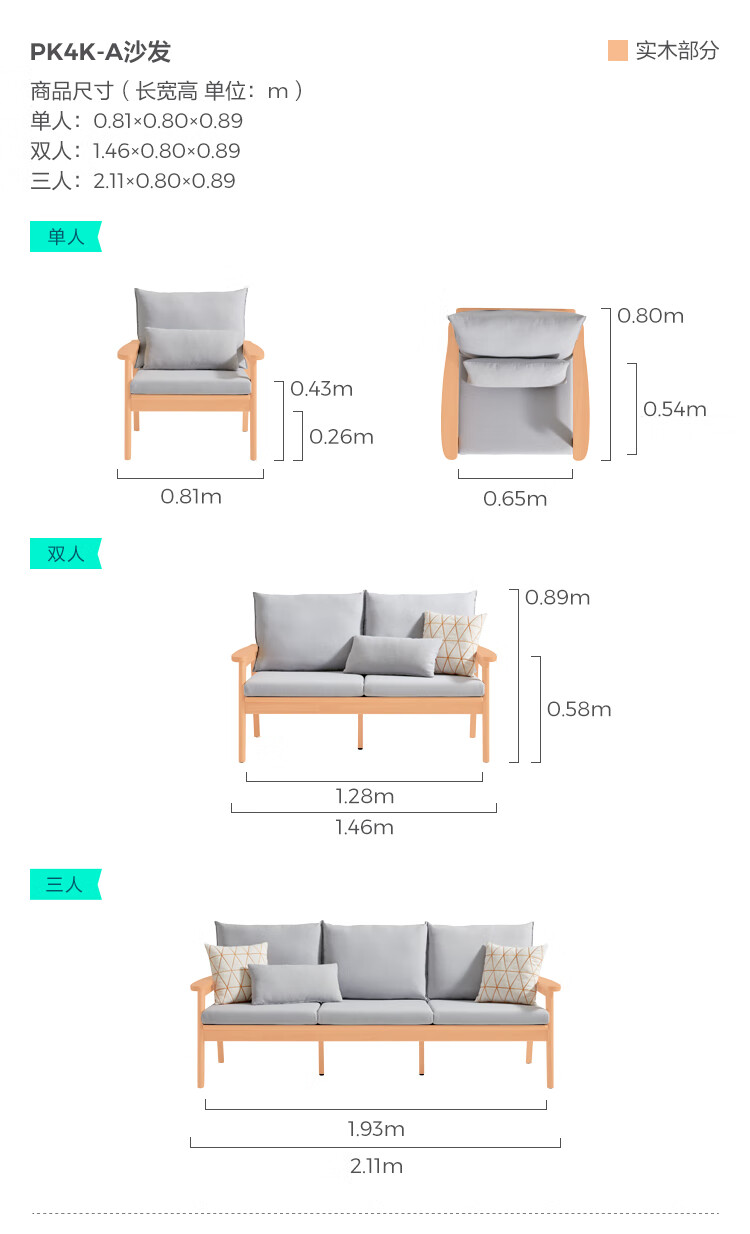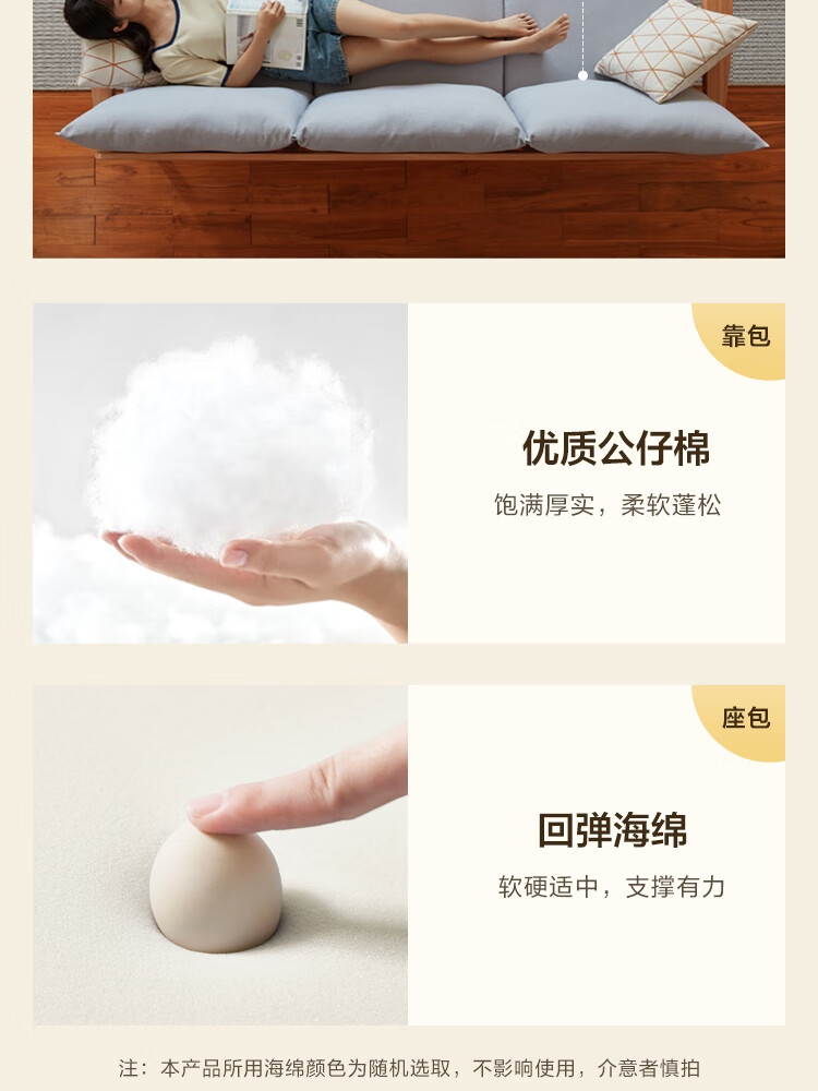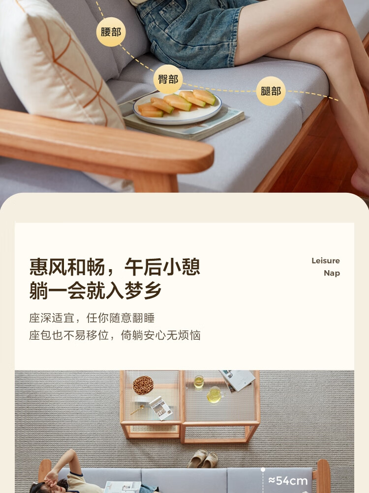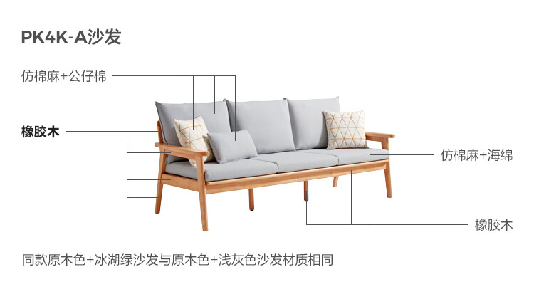 Lin's Home Nordic style solid wood fabric sofa new Chinese style living room simple three-seat straight small apartment sofa PK4K