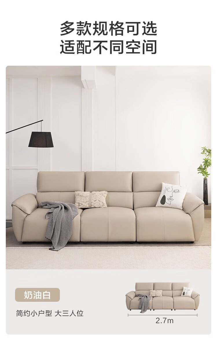 Made in Tokyo, home envelope genuine leather straight sofa living room small apartment first layer cowhide piano key 2.7m white