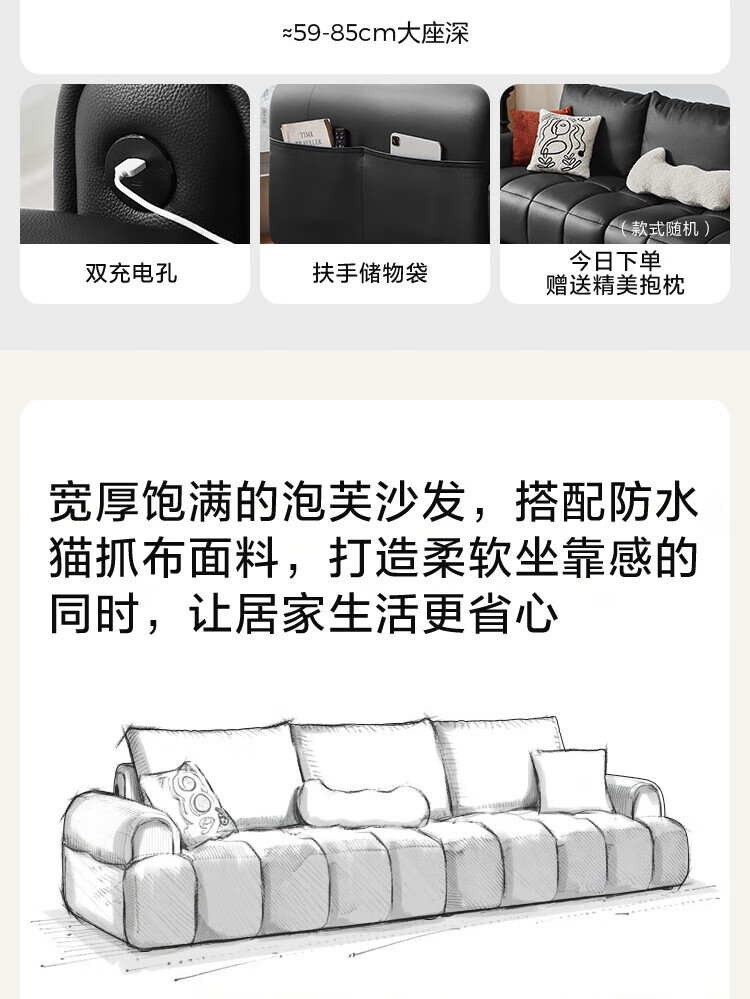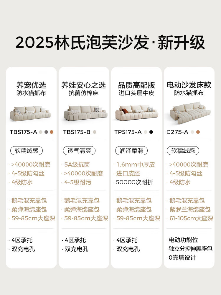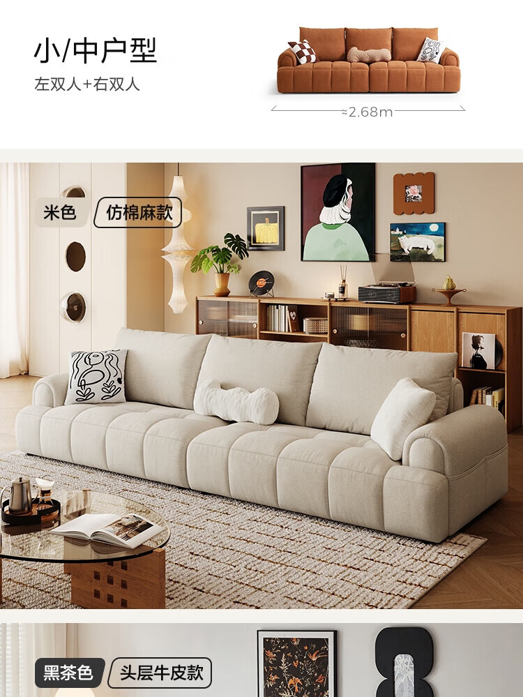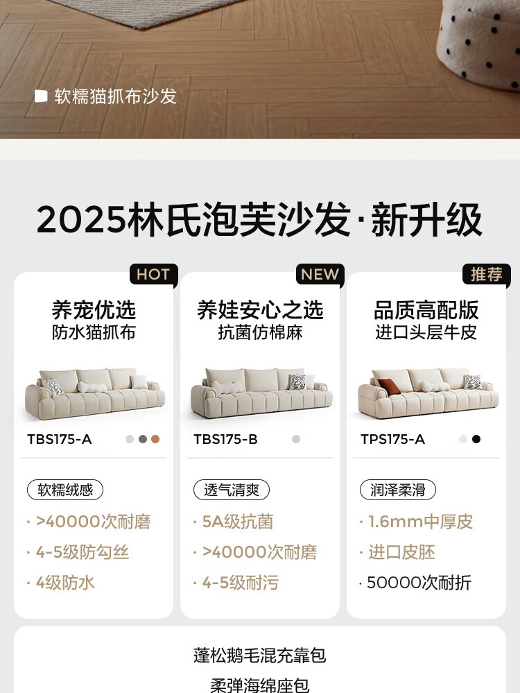Lin's Home Sofa Living Room 2025 New Modern Simple Cream Style Fabric Sofa Puff Cat Scratch Cloth Furniture TBS175
