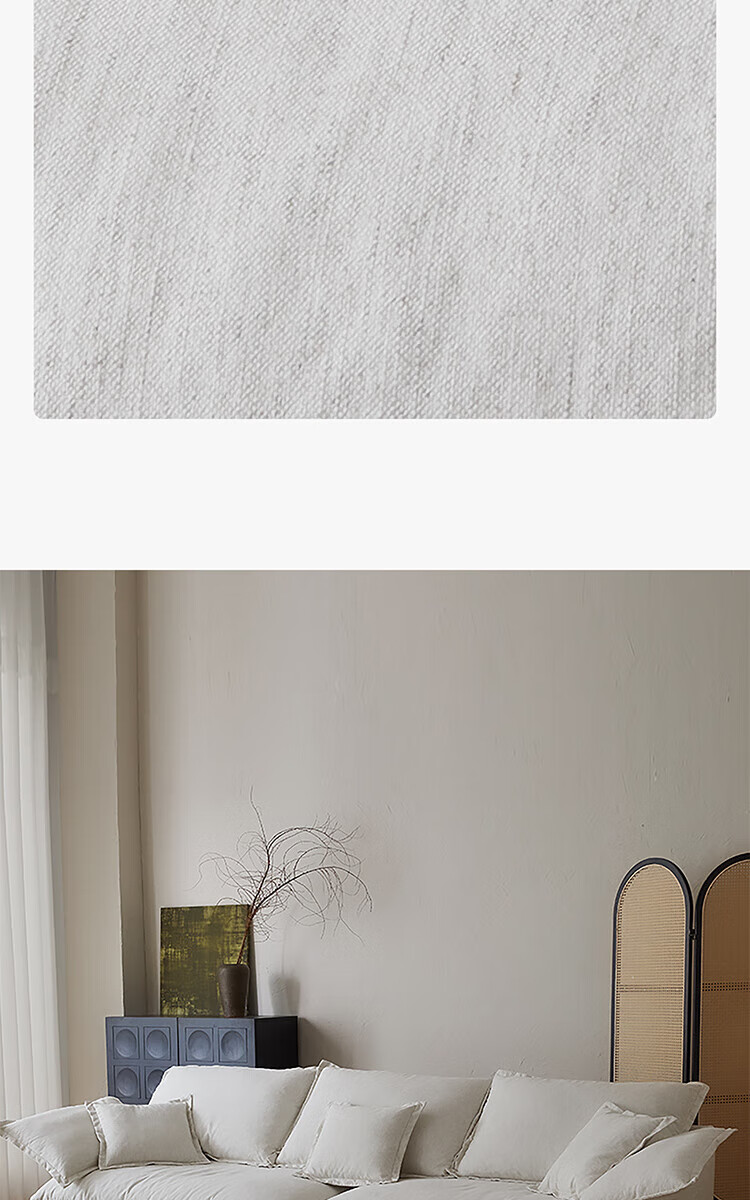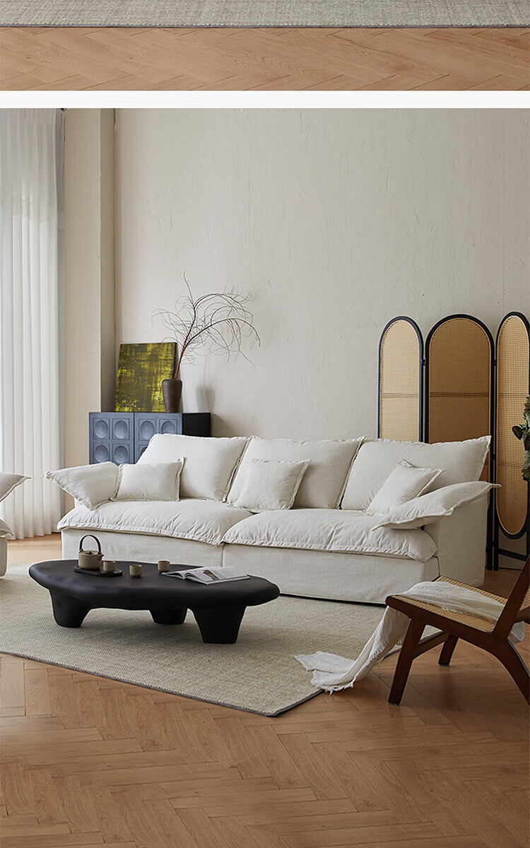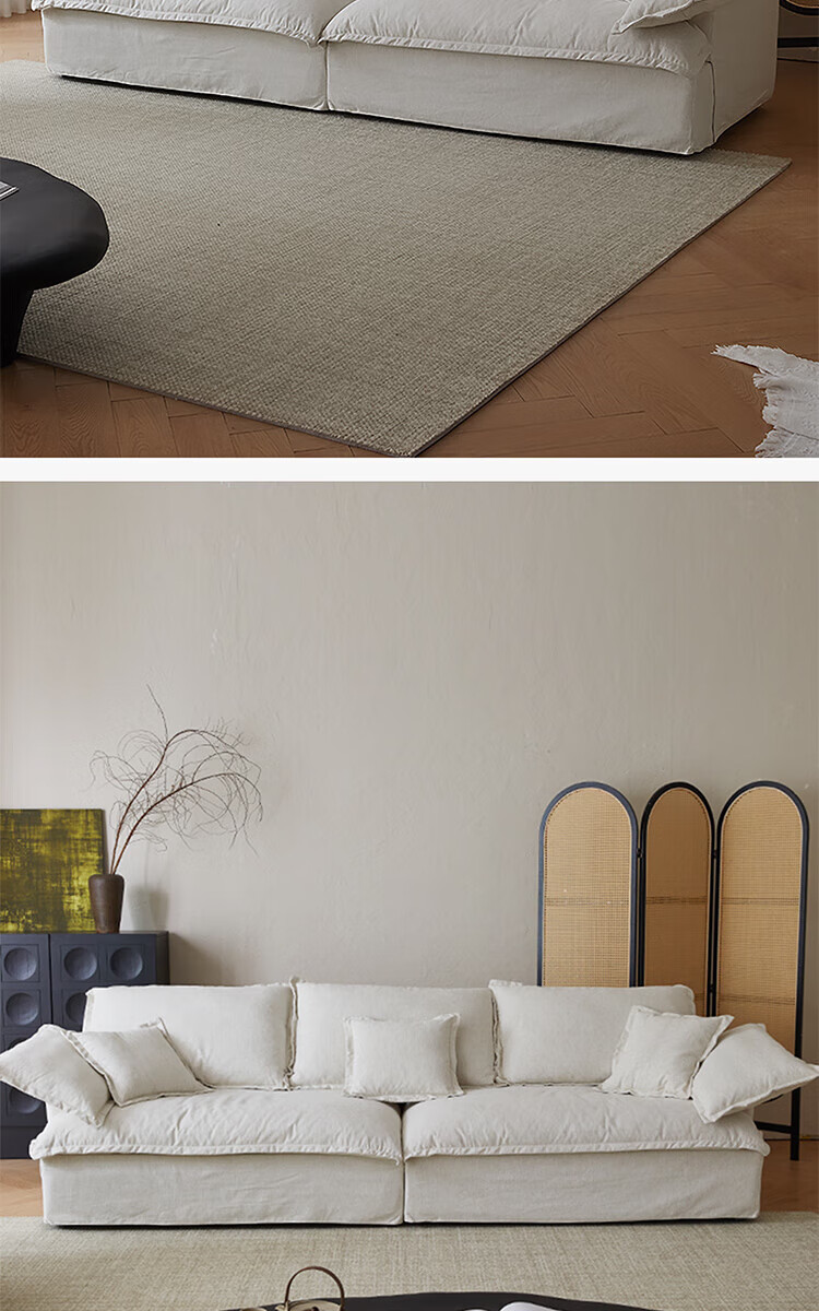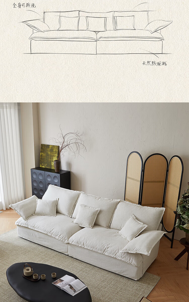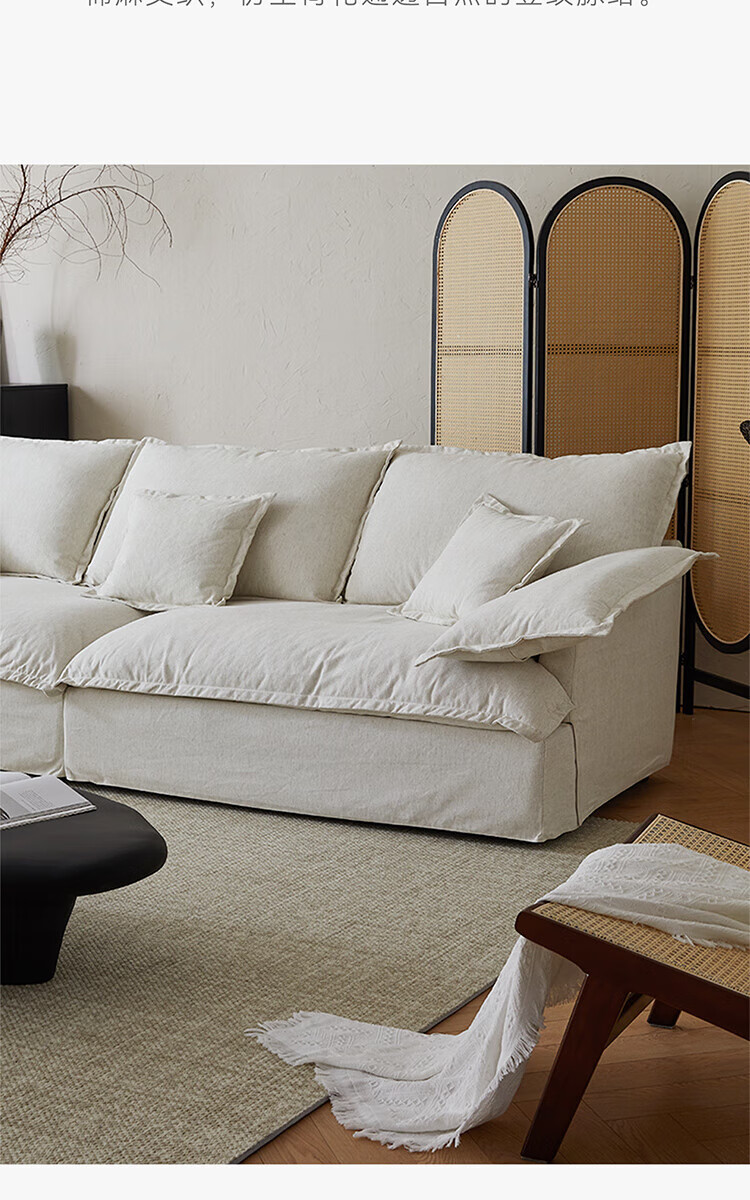 Shiwu Qiuchi fabric sofa minimalist style living room straight sofa natural cotton linen lotus root white 4-seater 2.8m