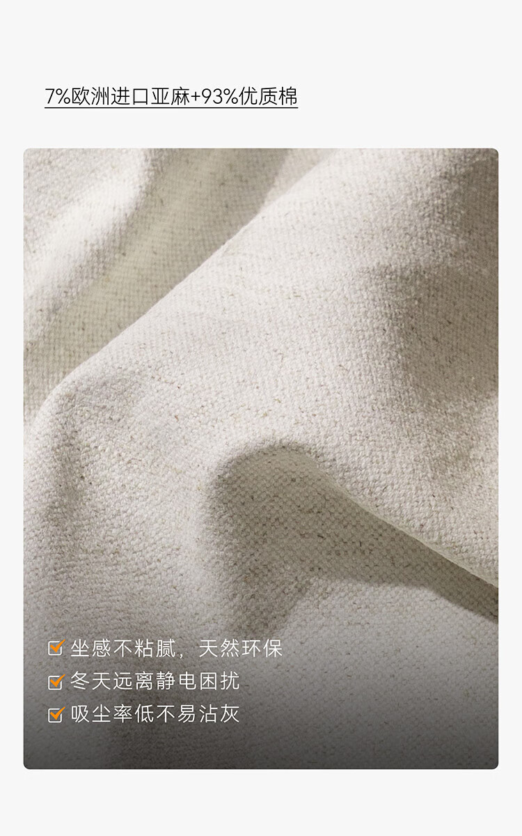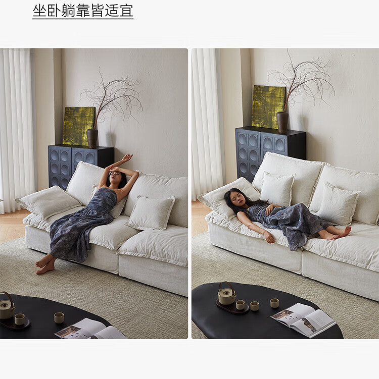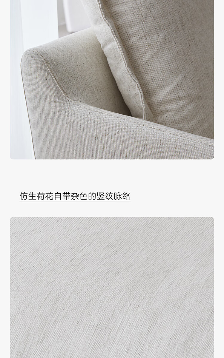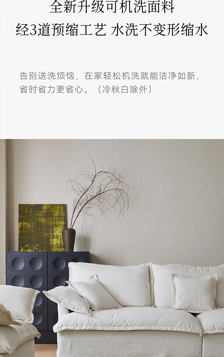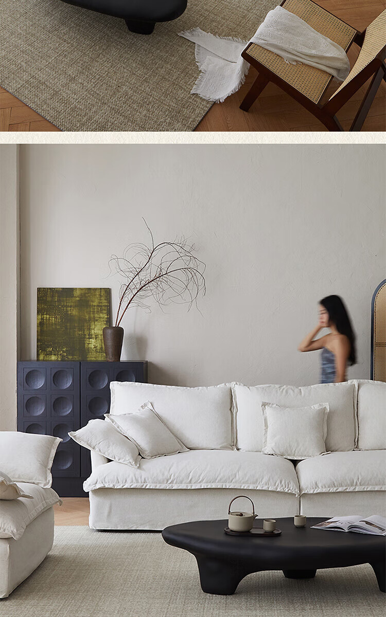 Shiwu Qiuchi fabric sofa minimalist style living room straight sofa natural cotton linen lotus root white 4-seater 2.8m