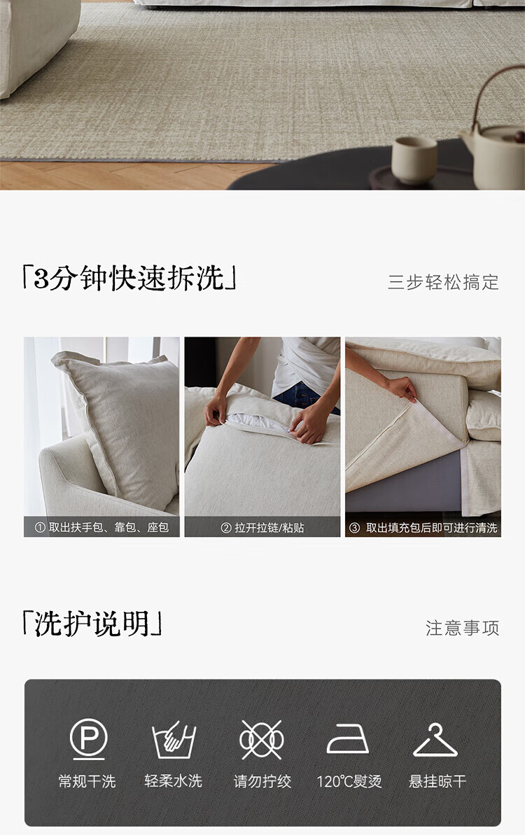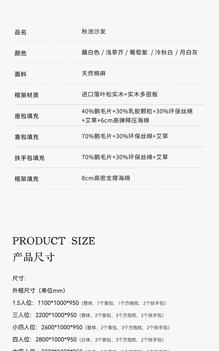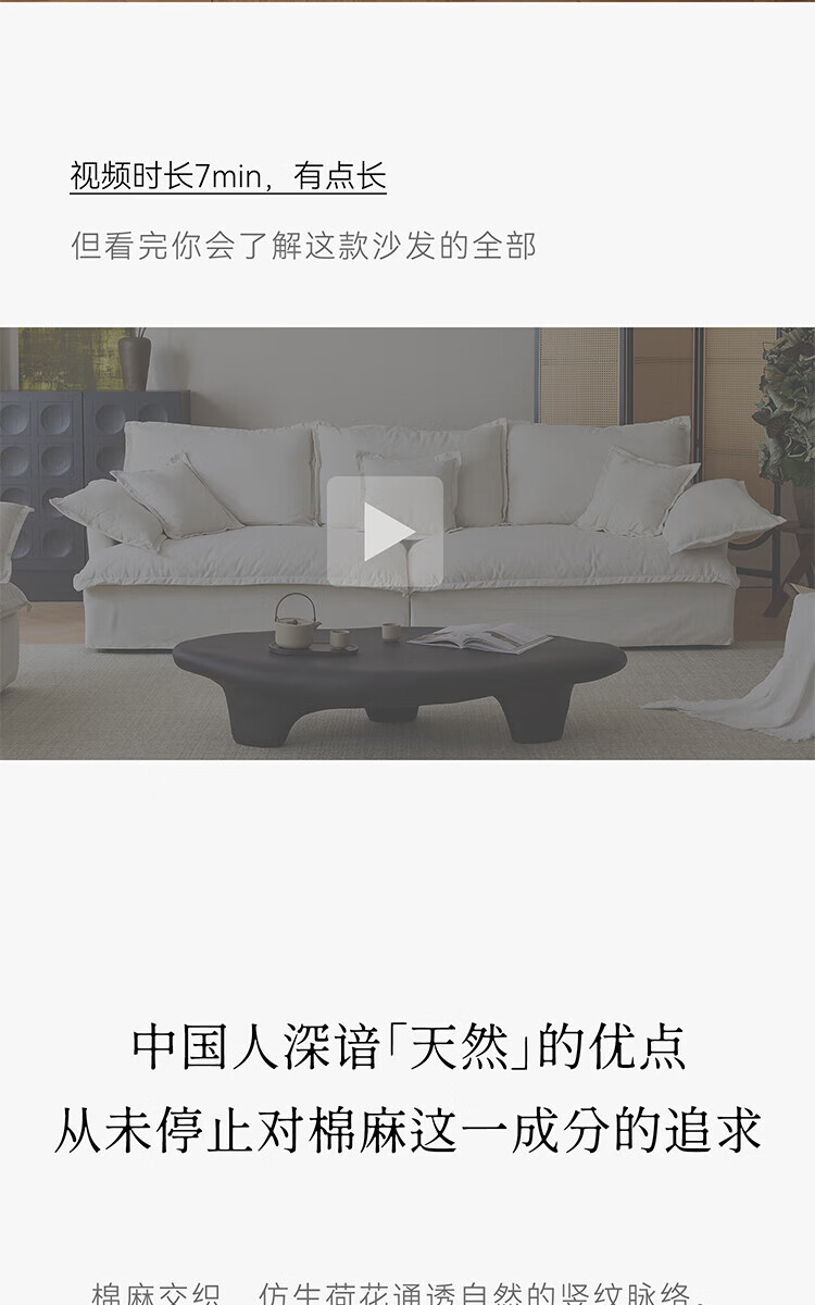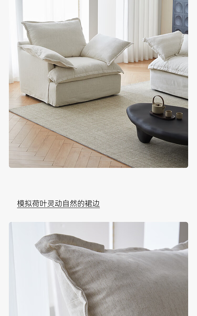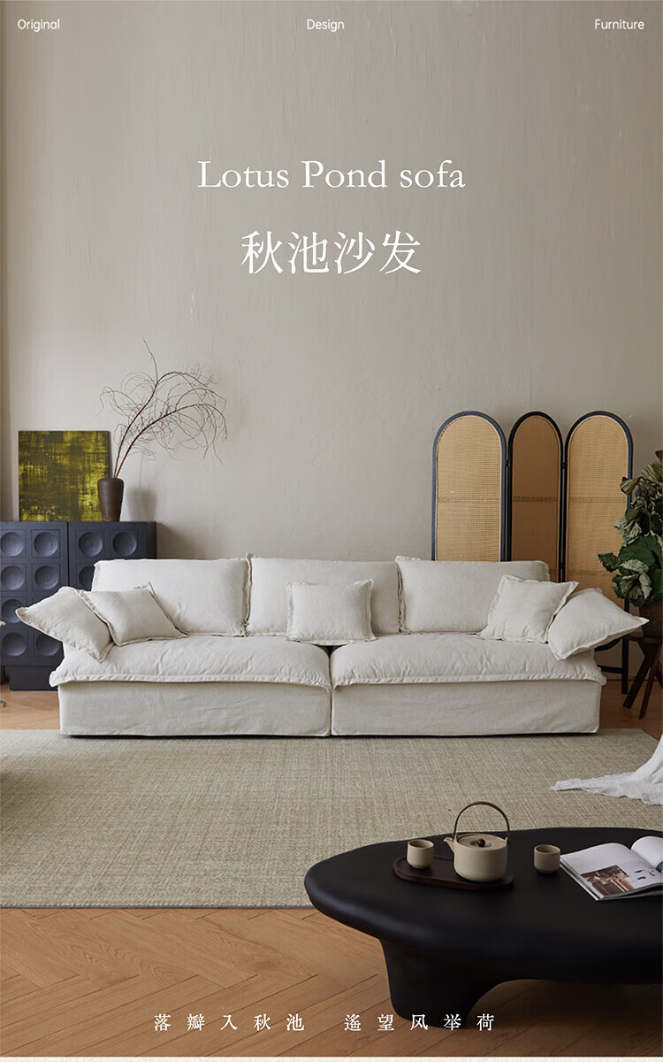 Shiwu Qiuchi fabric sofa minimalist style living room straight sofa natural cotton linen lotus root white 4-seater 2.8m