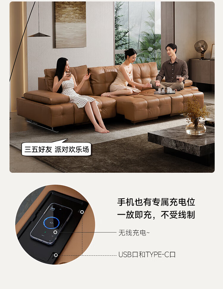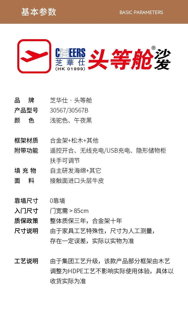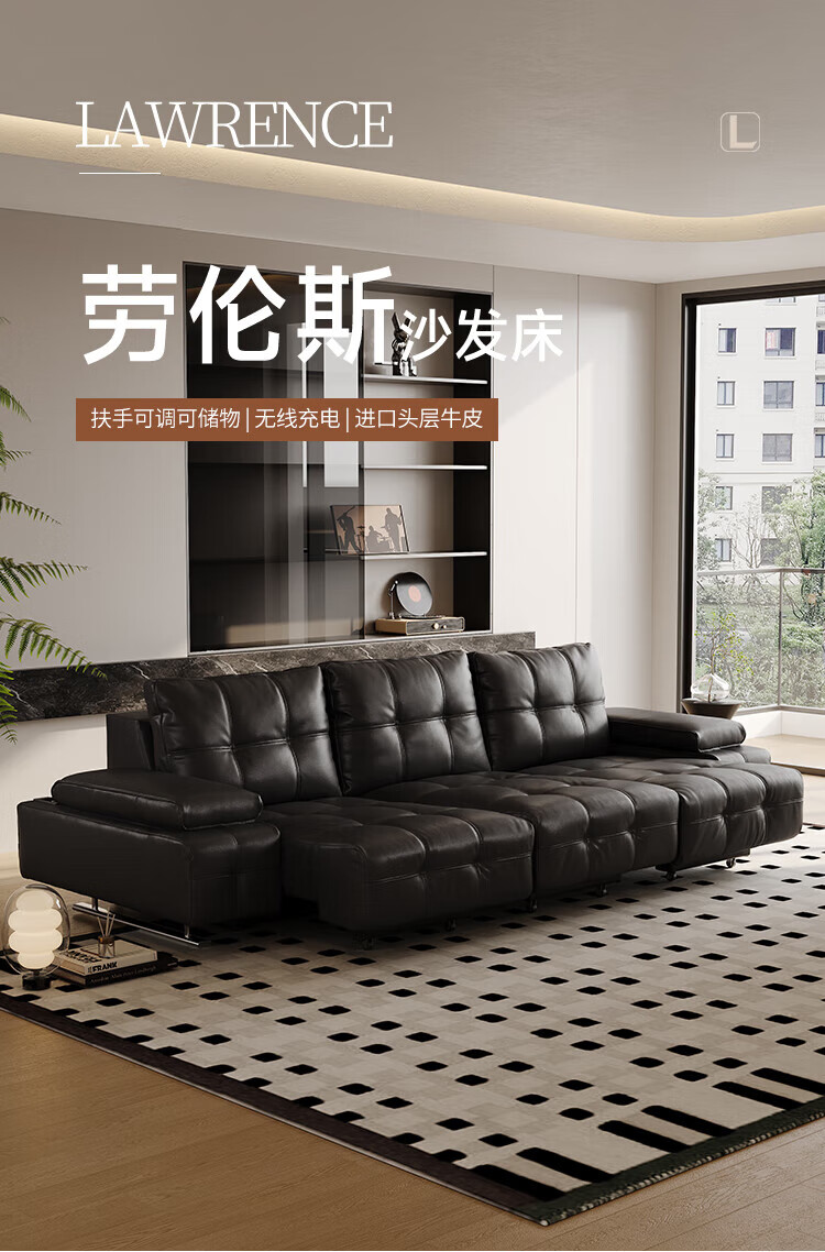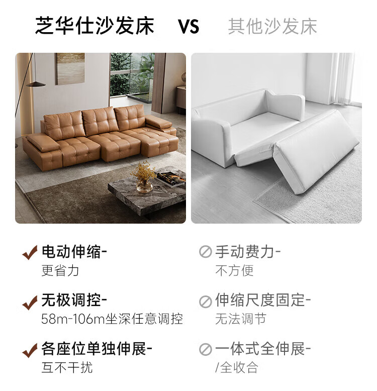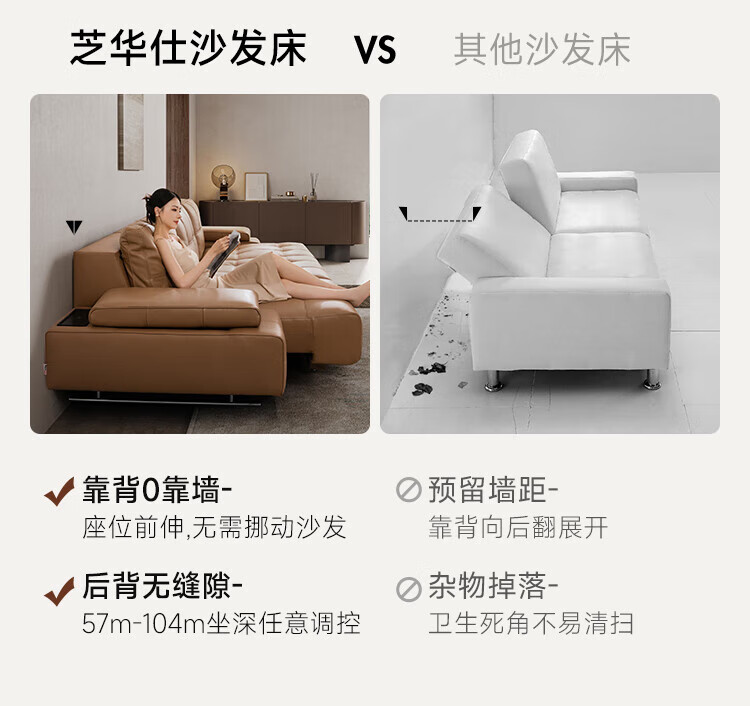 CHEERS first class Italian minimalist zero wall leather electric function Lawrence sofa bed 30567 double electric black