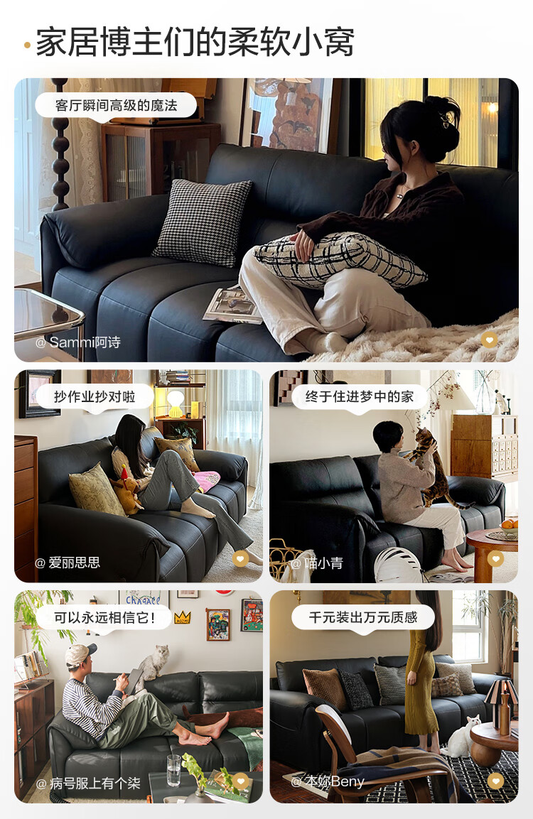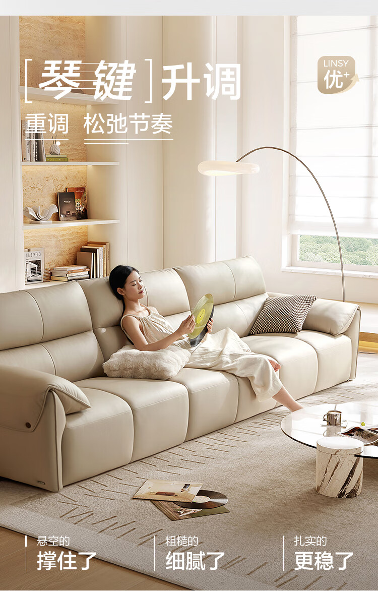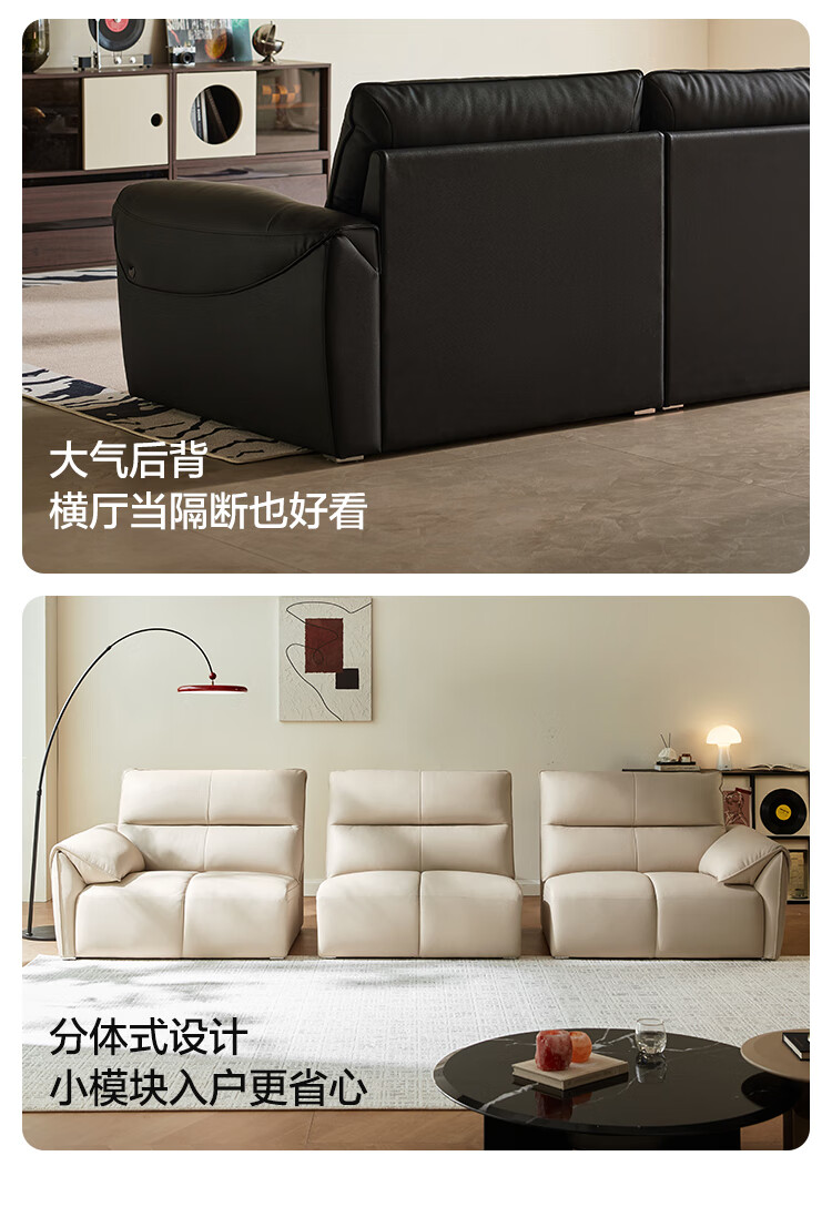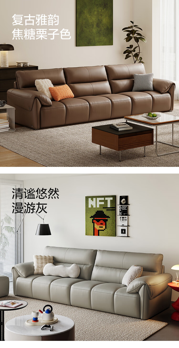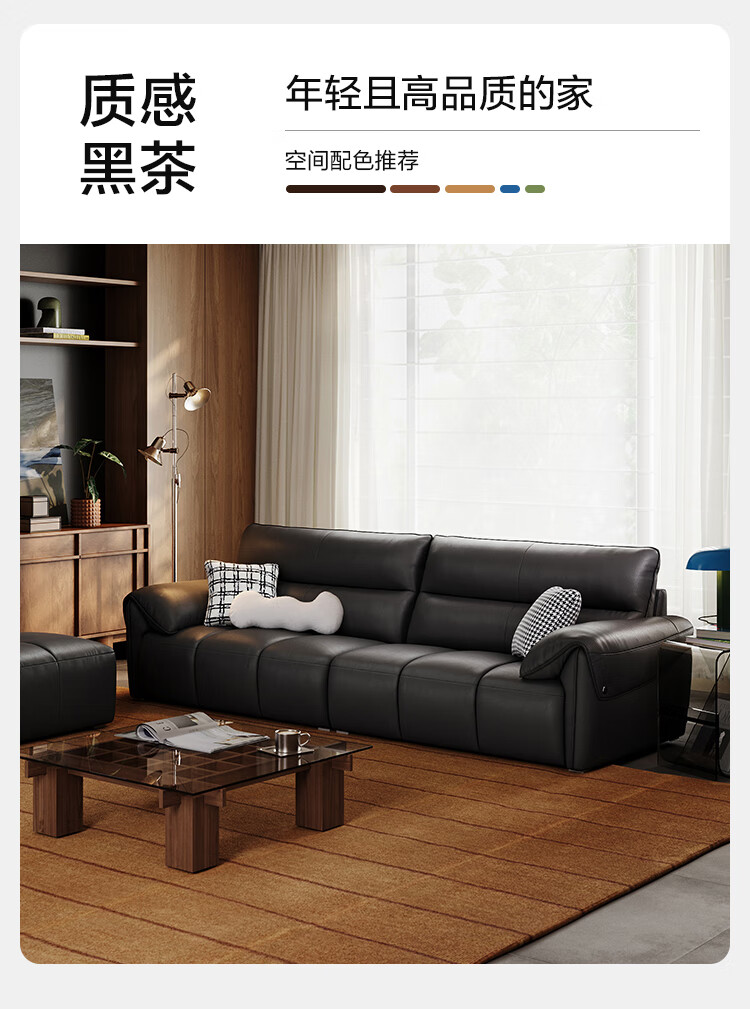 Lin's Home Leather Sofa Living Room Leather Art Sofa Piano Key Sofa 2025 Upgraded First-Layer Cowhide Furniture Lin's Wood Industry 2.5m|Black Brown|Thickened First-Layer Cowhide