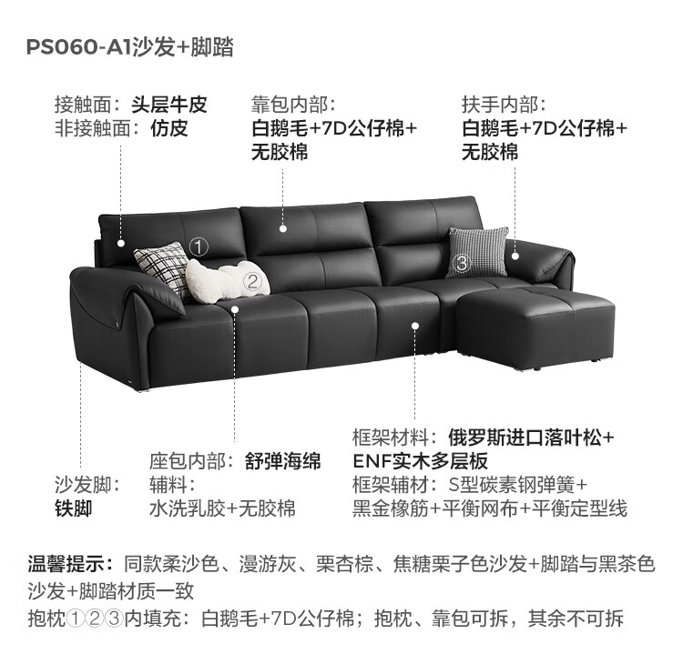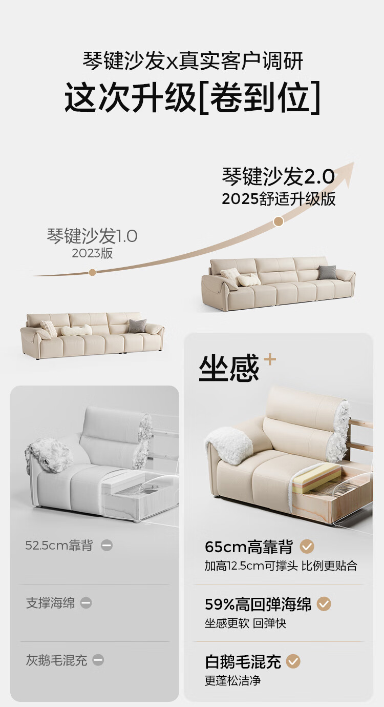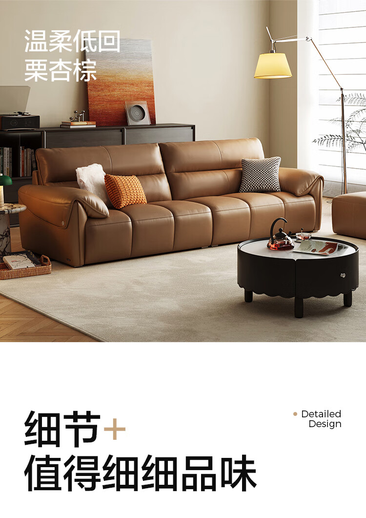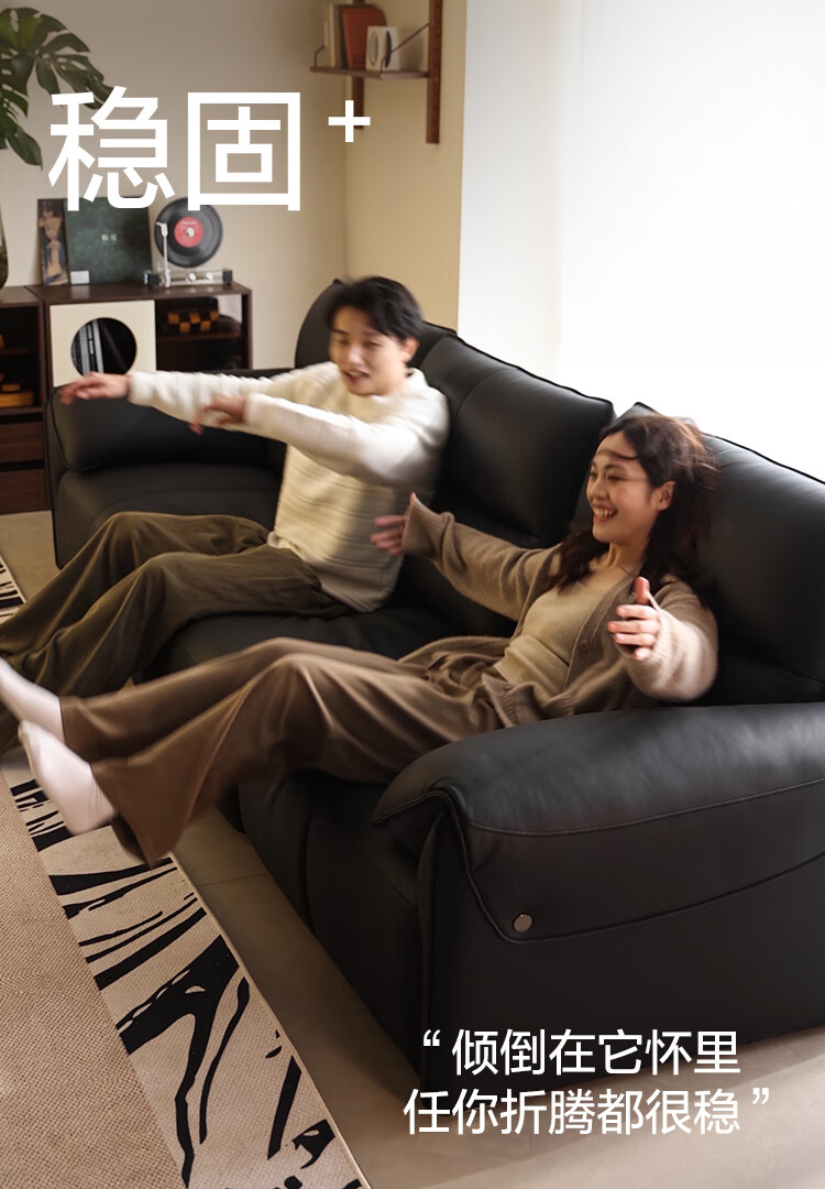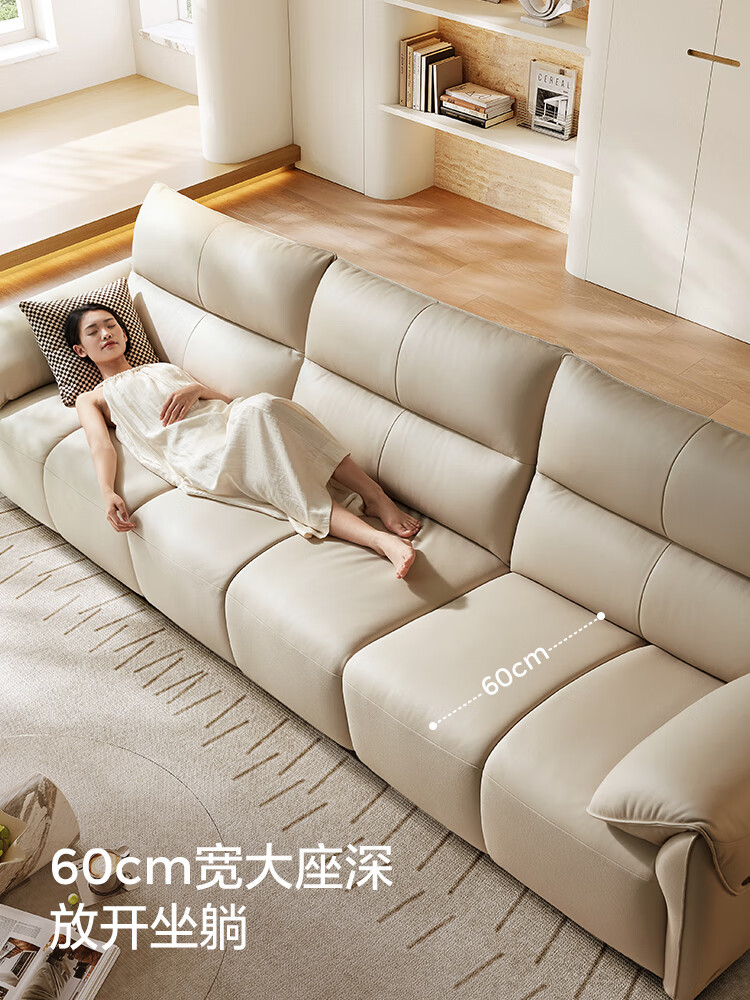 Lin's Home Leather Sofa Living Room Leather Art Sofa Piano Key Sofa 2025 Upgraded First-Layer Cowhide Furniture Lin's Wood Industry 2.5m|Black Brown|Thickened First-Layer Cowhide
