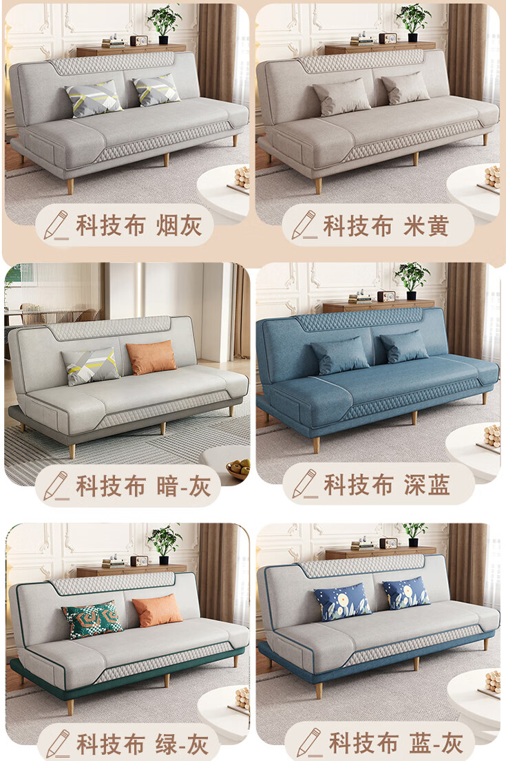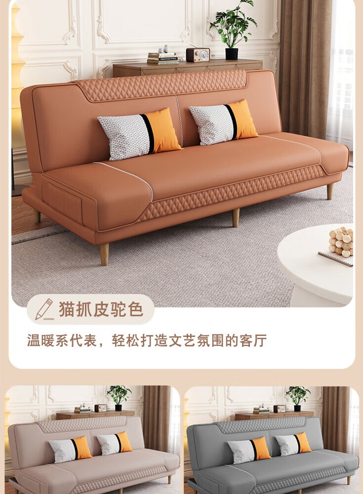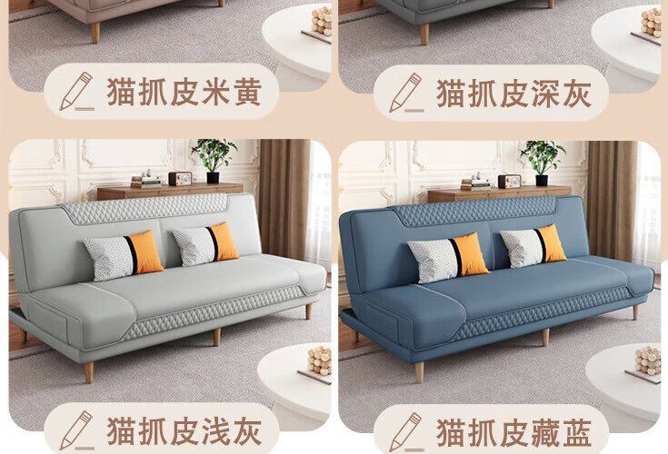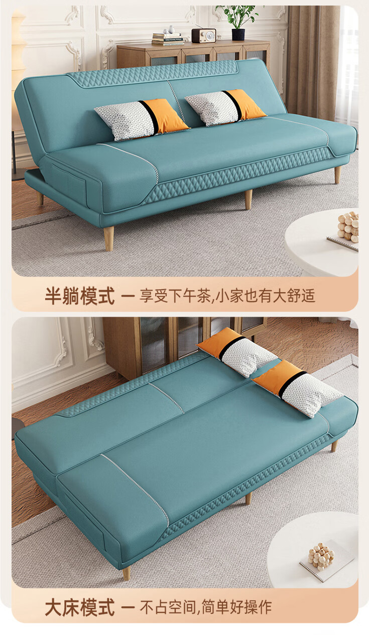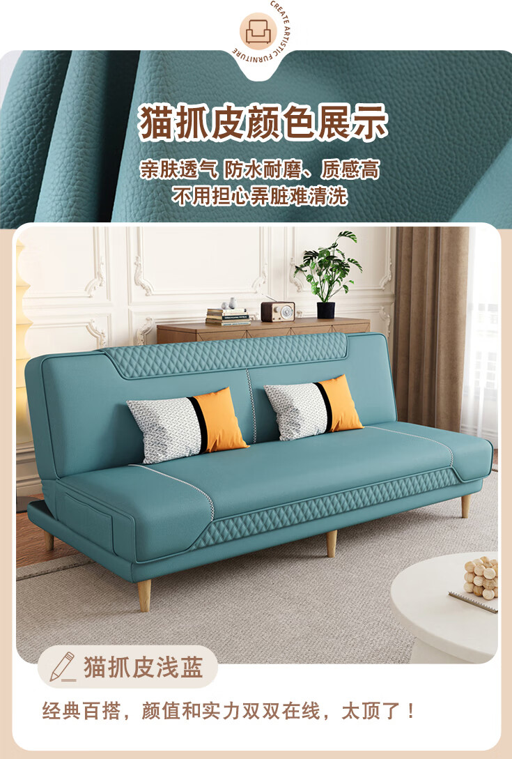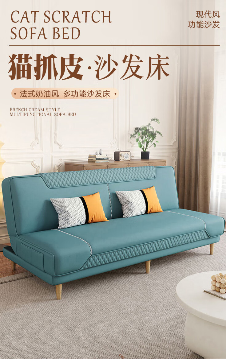 Huiyue (no) multi-functional sofa bed for sitting and sleeping, foldable single bed, double bed, simple sofa for living room, small apartment, cat scratch leather, light blue, colorful sponge style, 1.8 meters long