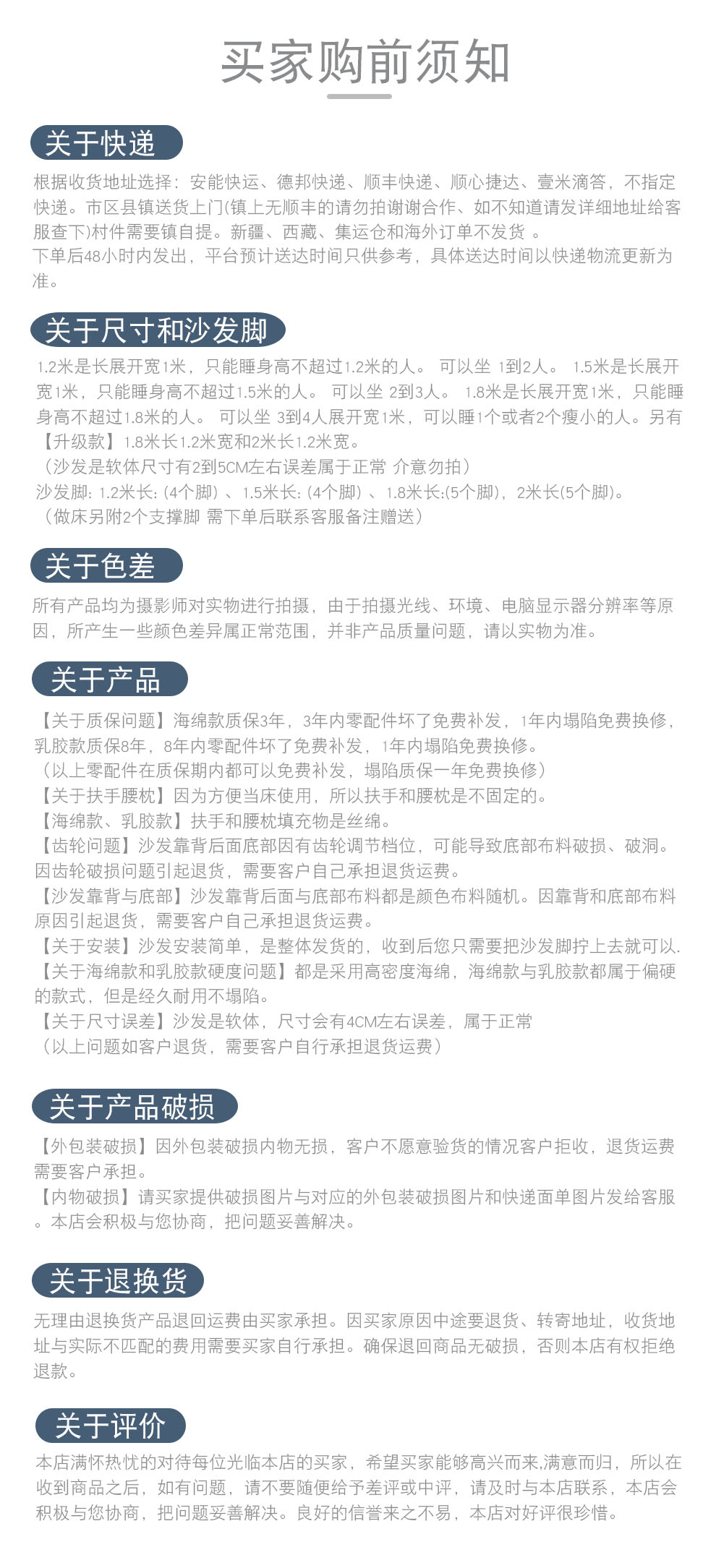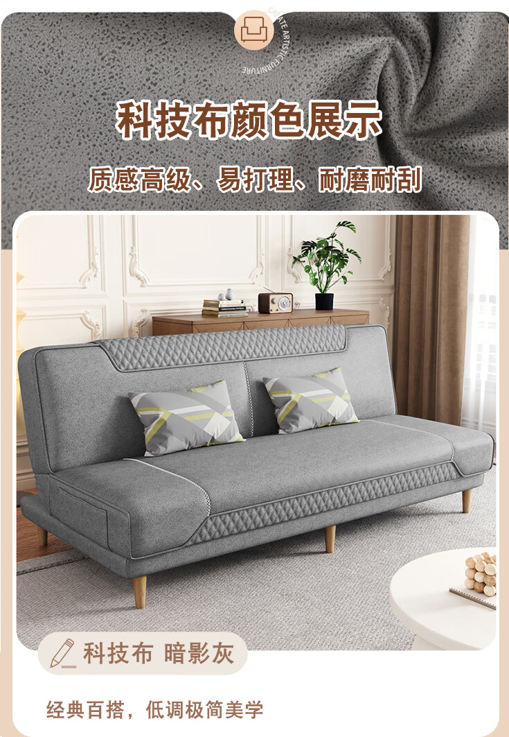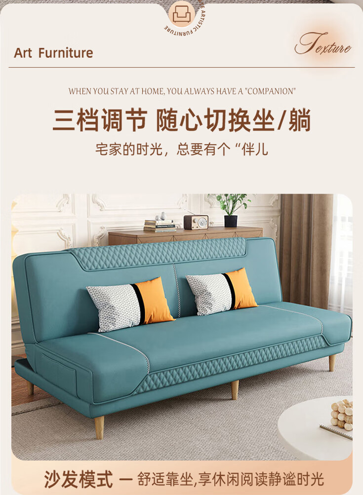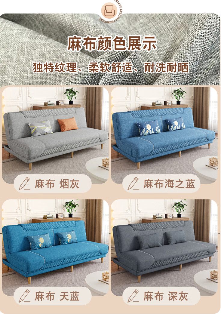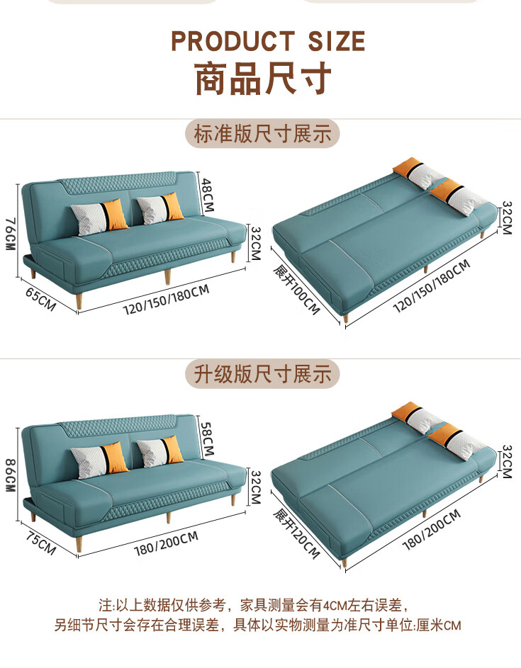Huiyue (no) multi-functional sofa bed for sitting and sleeping, foldable single bed, double bed, simple sofa for living room, small apartment, cat scratch leather, light blue, colorful sponge style, 1.8 meters long
