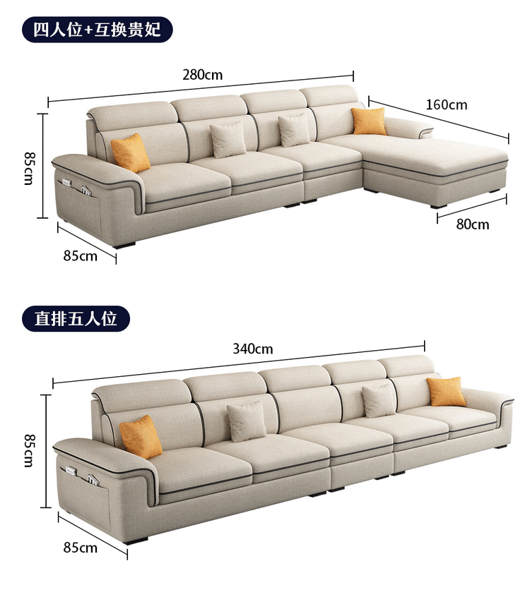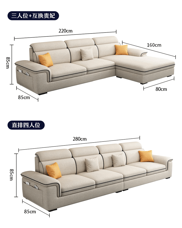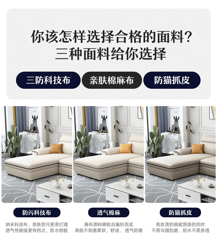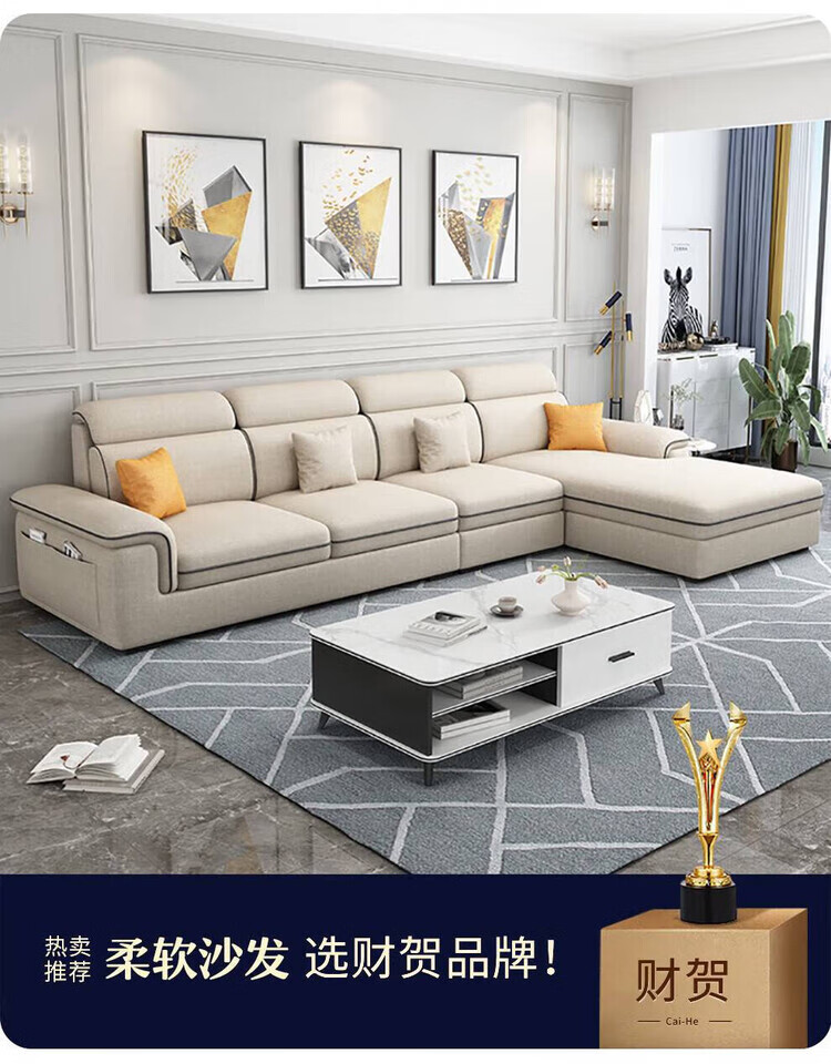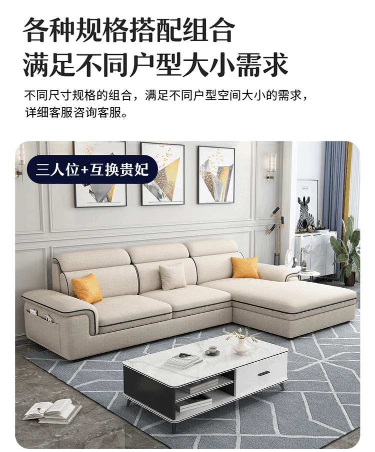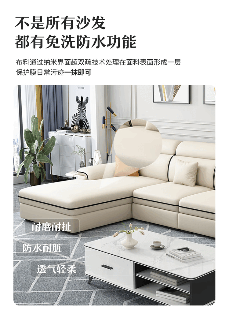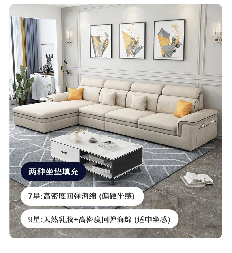 Jinlin modern removable and washable technology fabric 2025 new sofa combination simple small apartment living room cat scratch leather latex four-seater + interchangeable concubine 2.8 meters linen-sponge seat bag