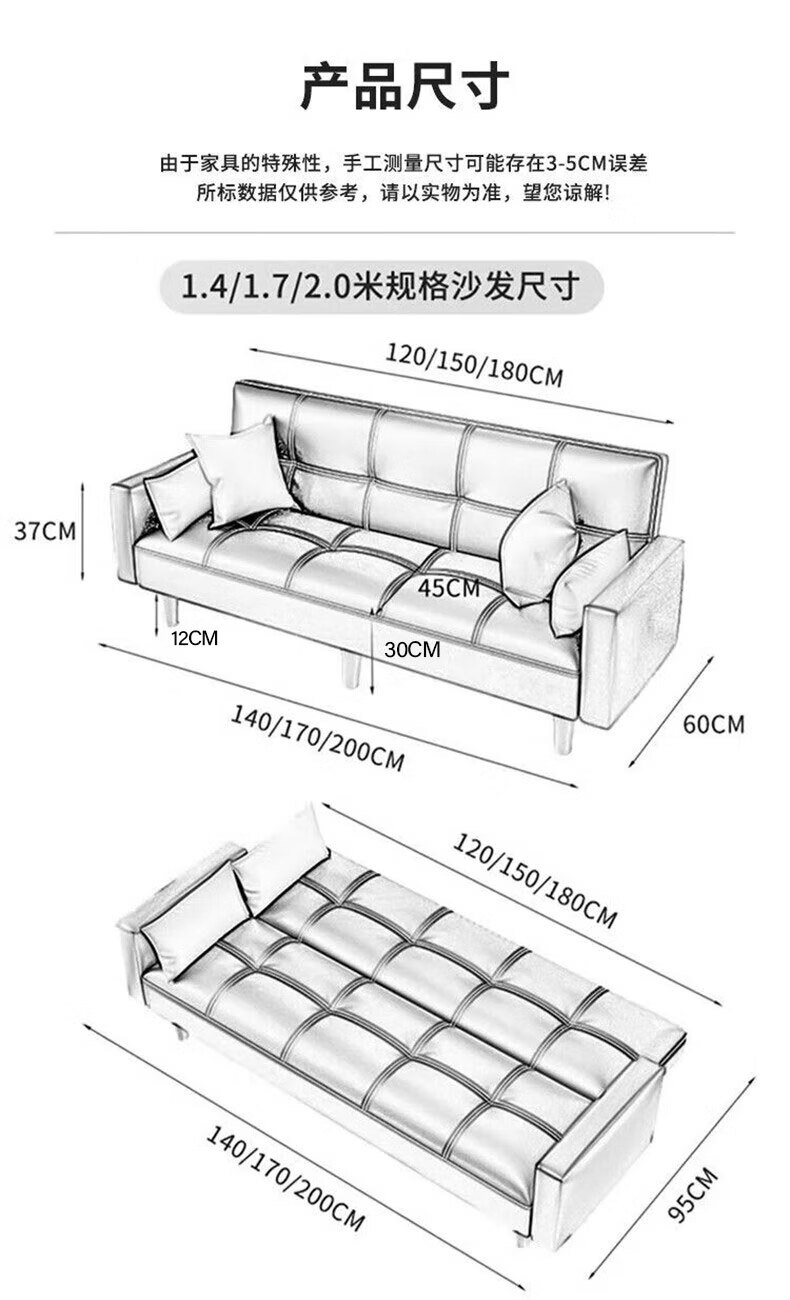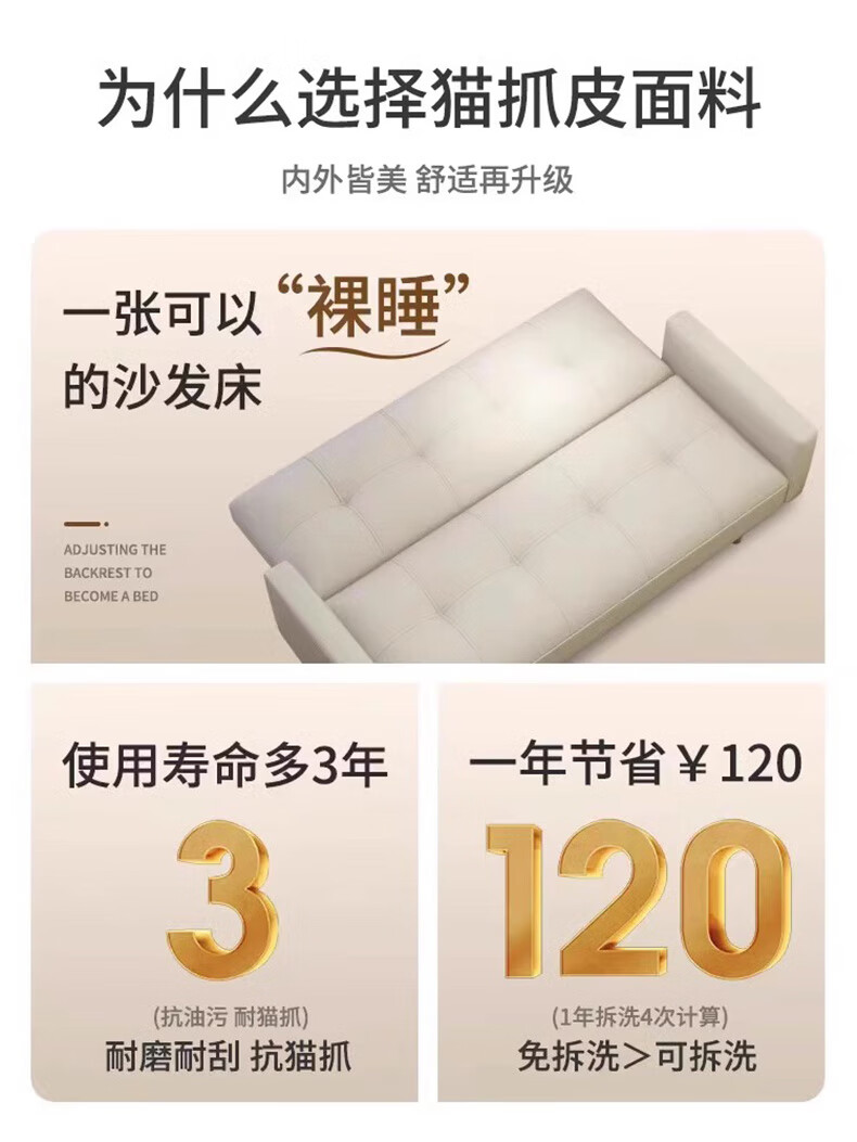 Internet celebrity cat claw leather foldable sofa bed for small apartment multifunctional double lunch break lazy small sofa rental house off-white cat claw leather model 140cm including armrests two pillows 4 sofa legs