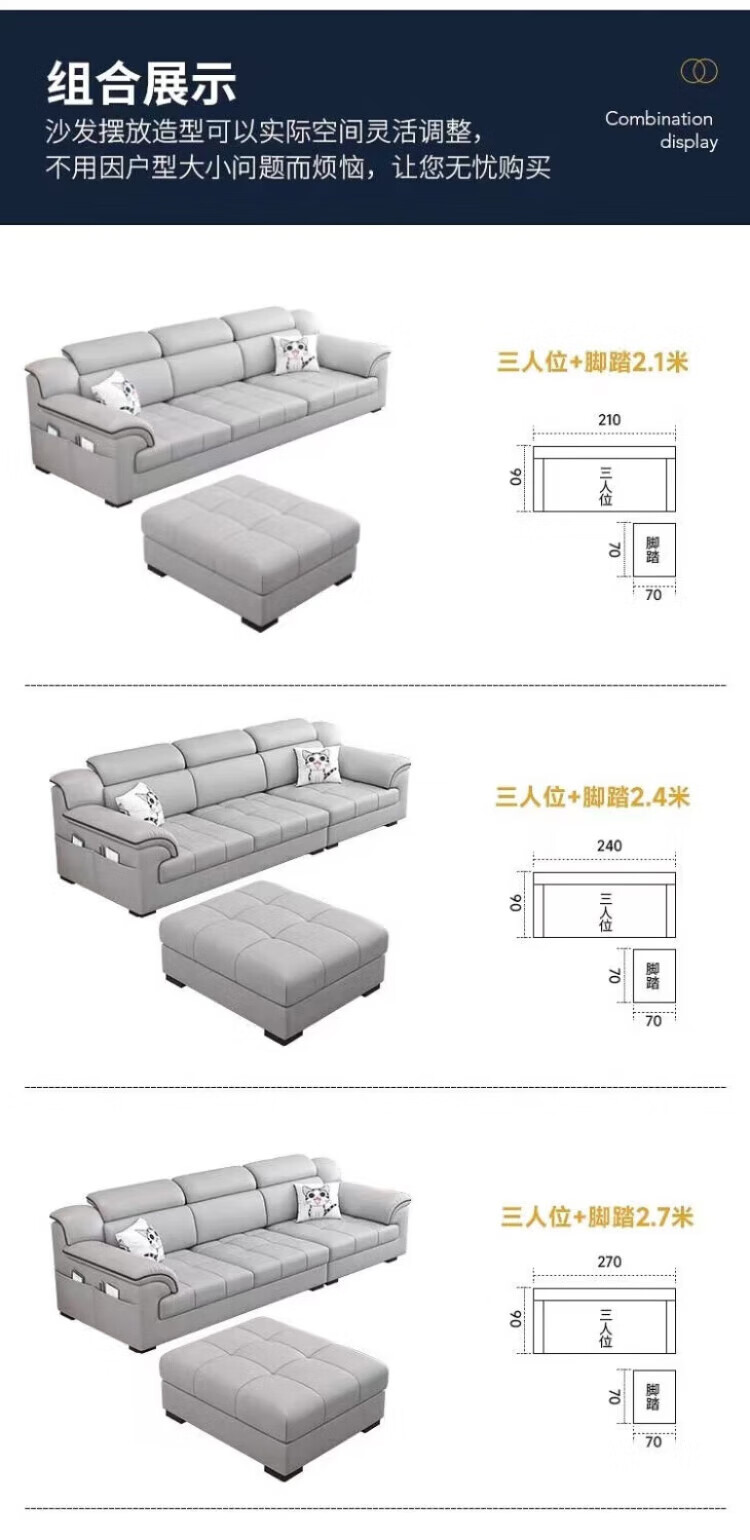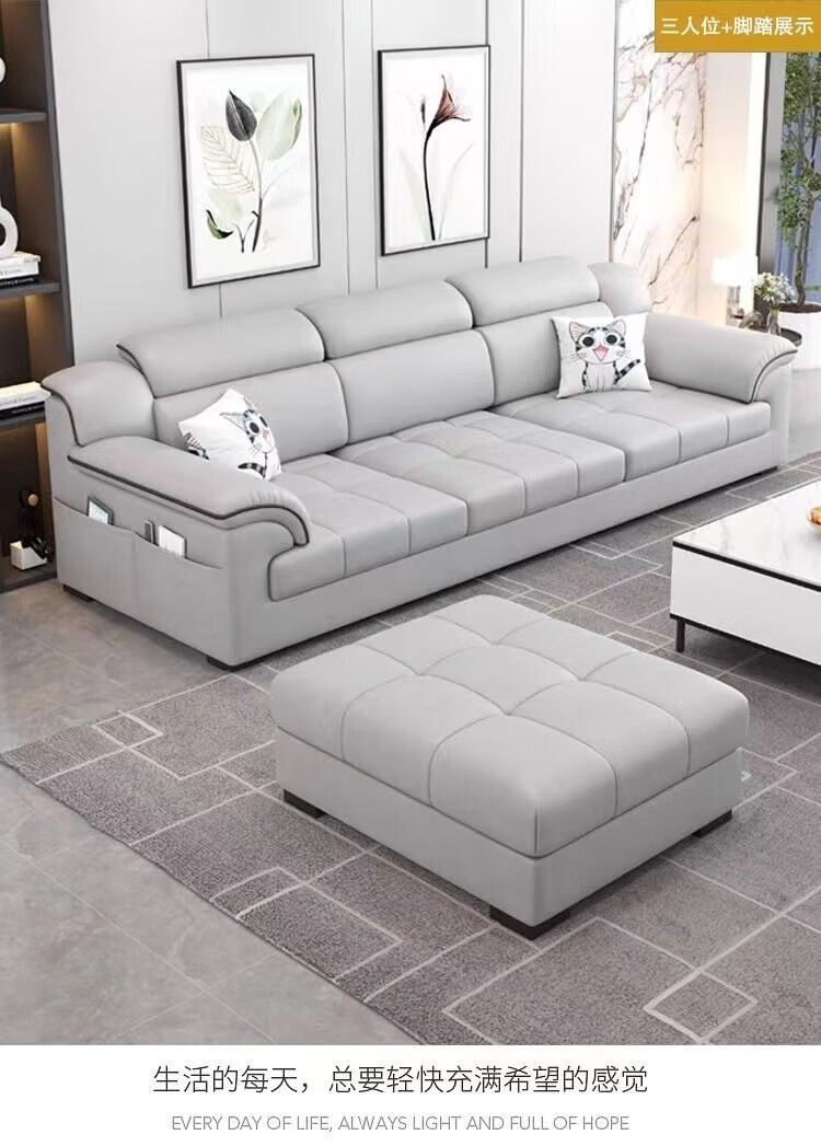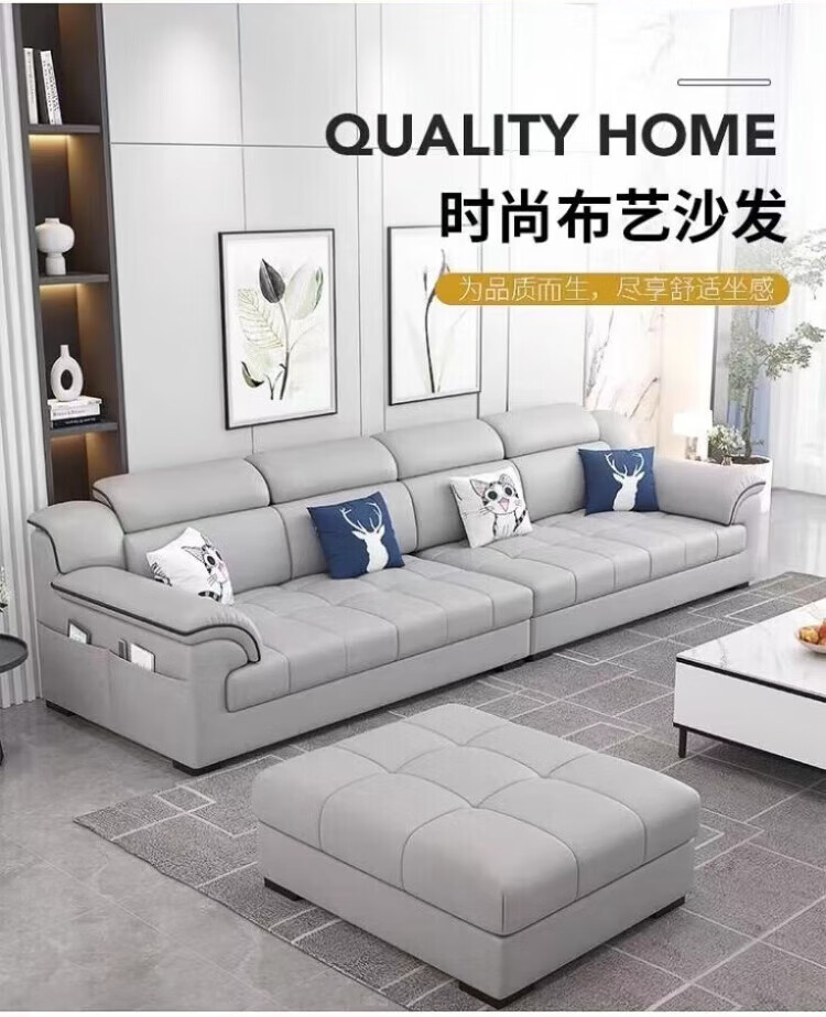 2025 new cotton and linen fabric sofa living room simple modern large and small apartment three-seat straight row cat claw leather sofa soft and comfortable cotton and linen sponge style 2.1m small apartment three-seat straight row
