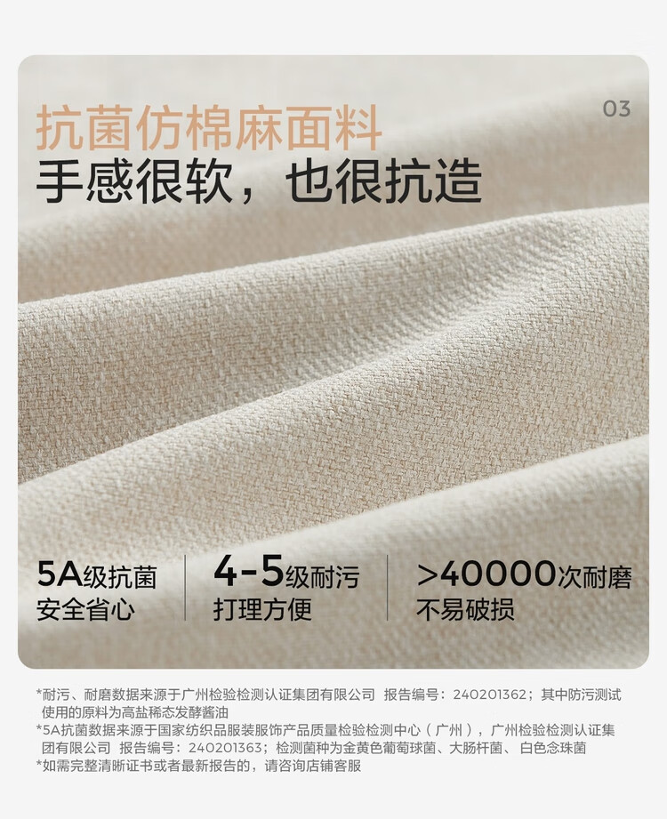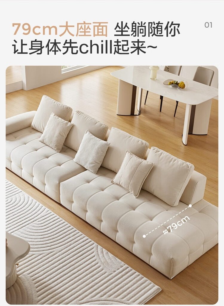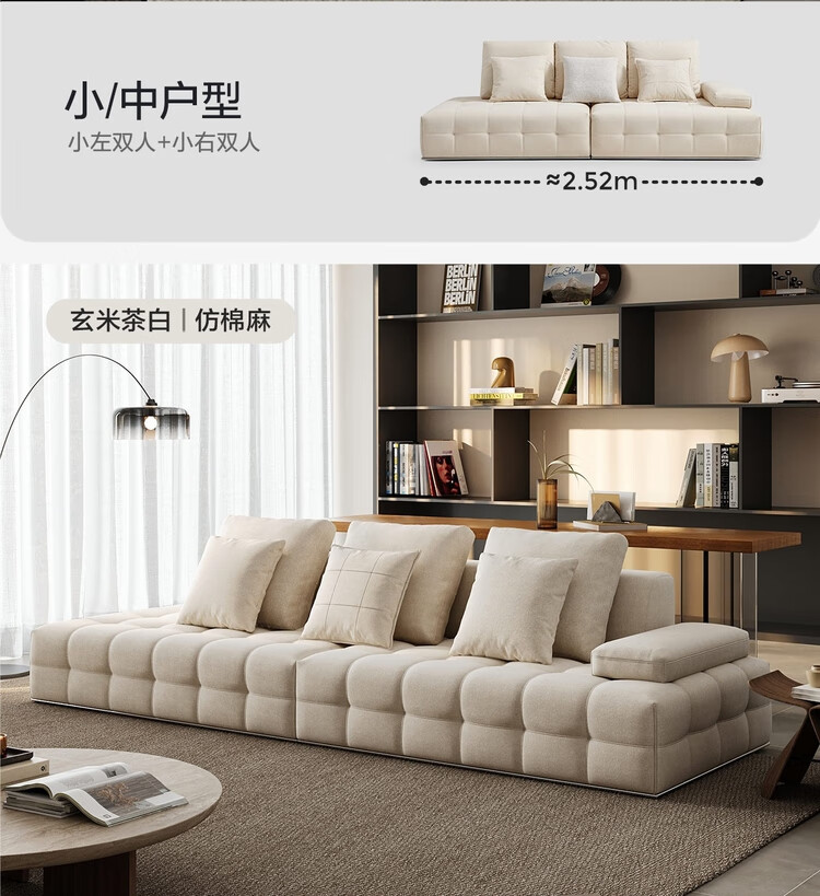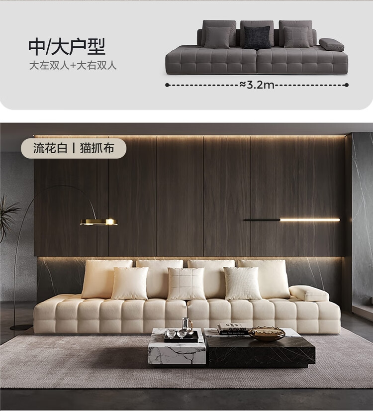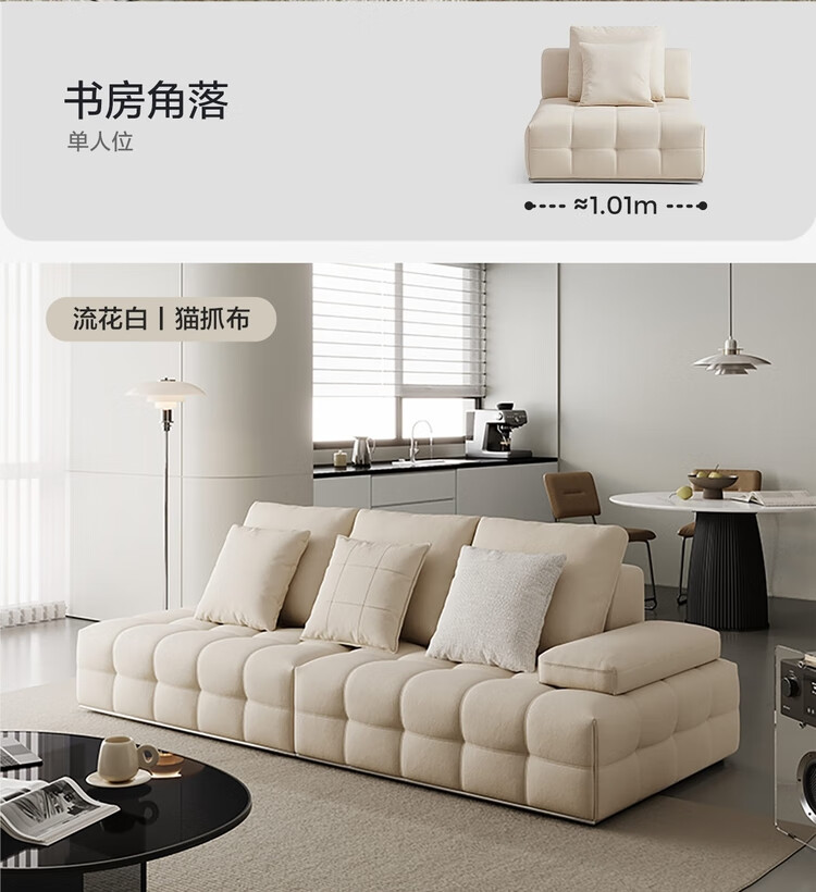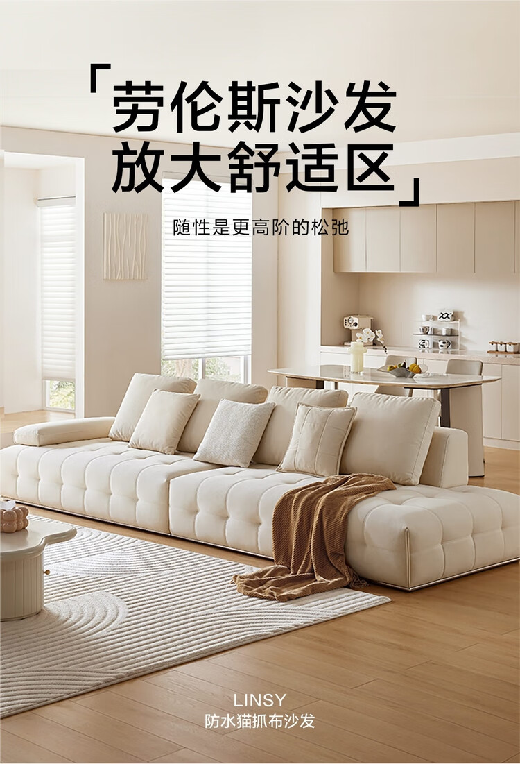 Lin's Home Lawrence Fabric Sofa Living Room New Cat Scratch Cloth Cream Style Sofa Straight Row Lin's Wood Industry BS514 Waterproof and Wear-Resistant Cat Scratch Cloth 3.6 Meters | Liuhua White