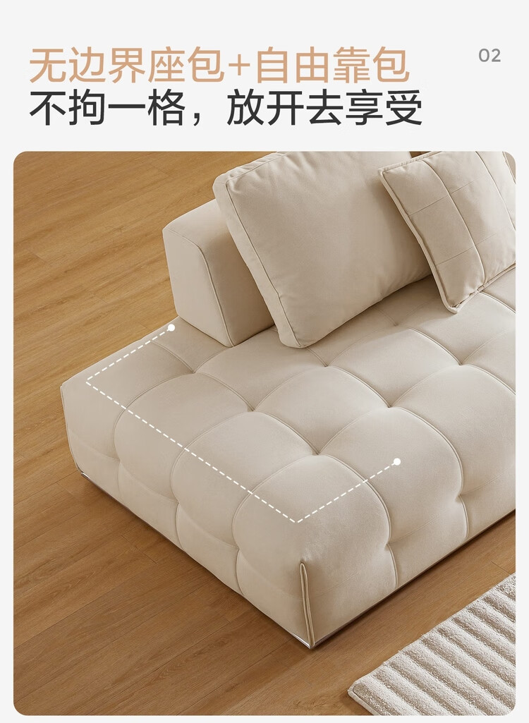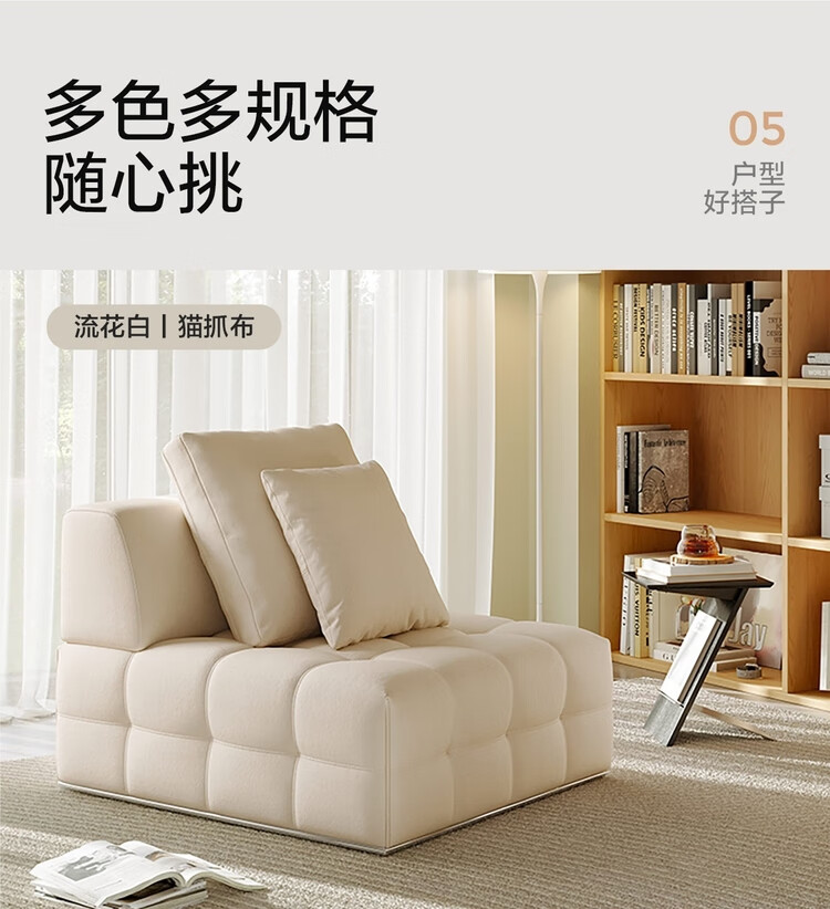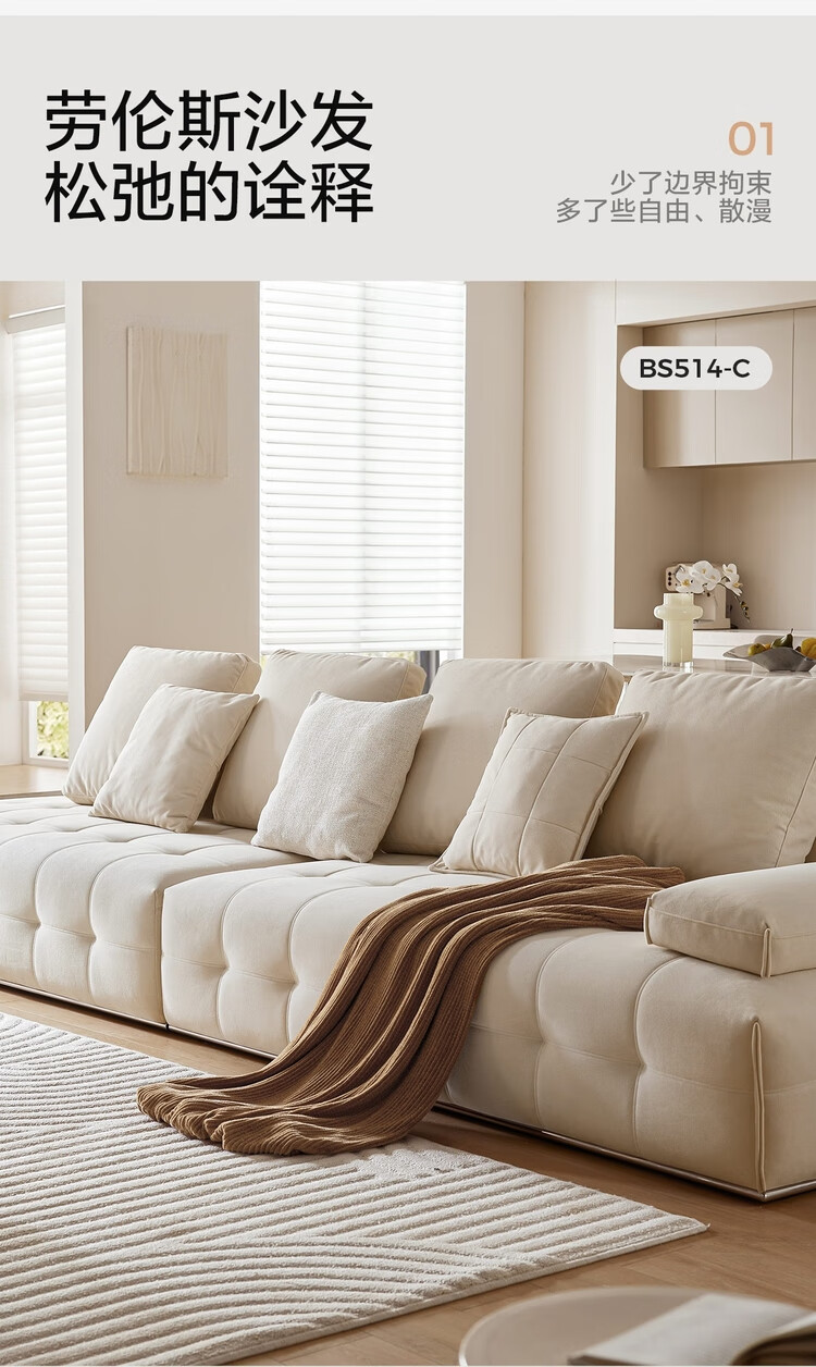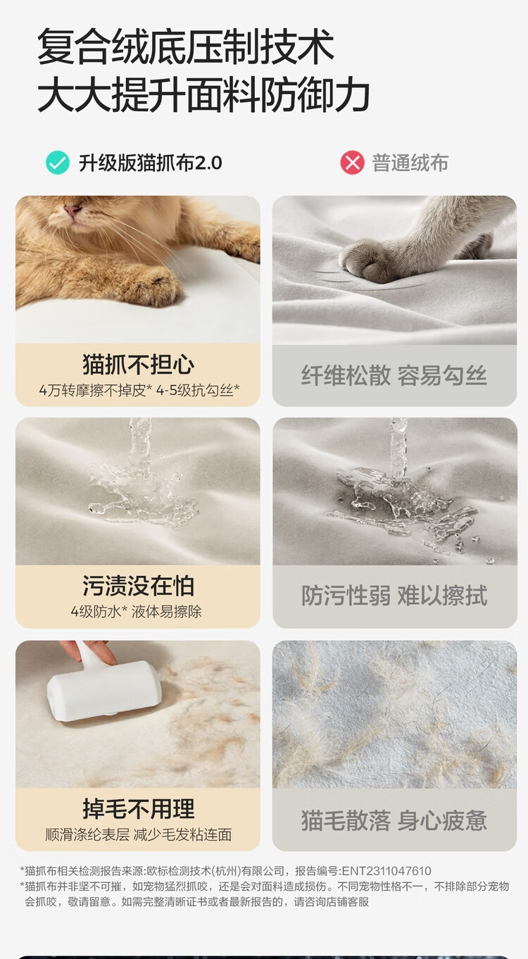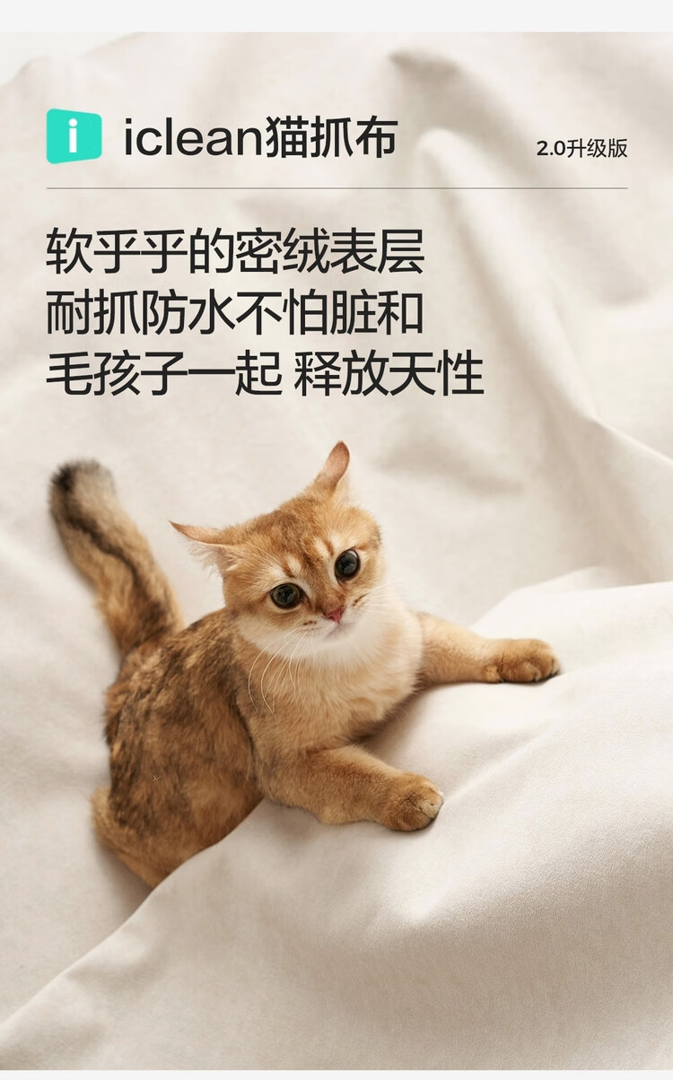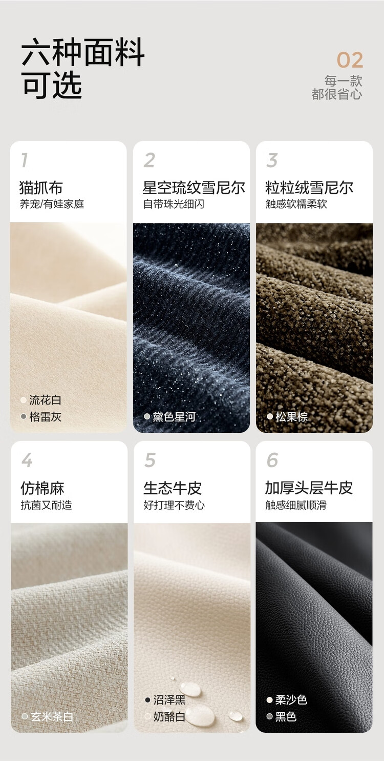 Lin's Home Lawrence Fabric Sofa Living Room New Cat Scratch Cloth Cream Style Sofa Straight Row Lin's Wood Industry BS514 Waterproof and Wear-Resistant Cat Scratch Cloth 3.6 Meters | Liuhua White