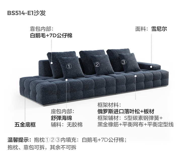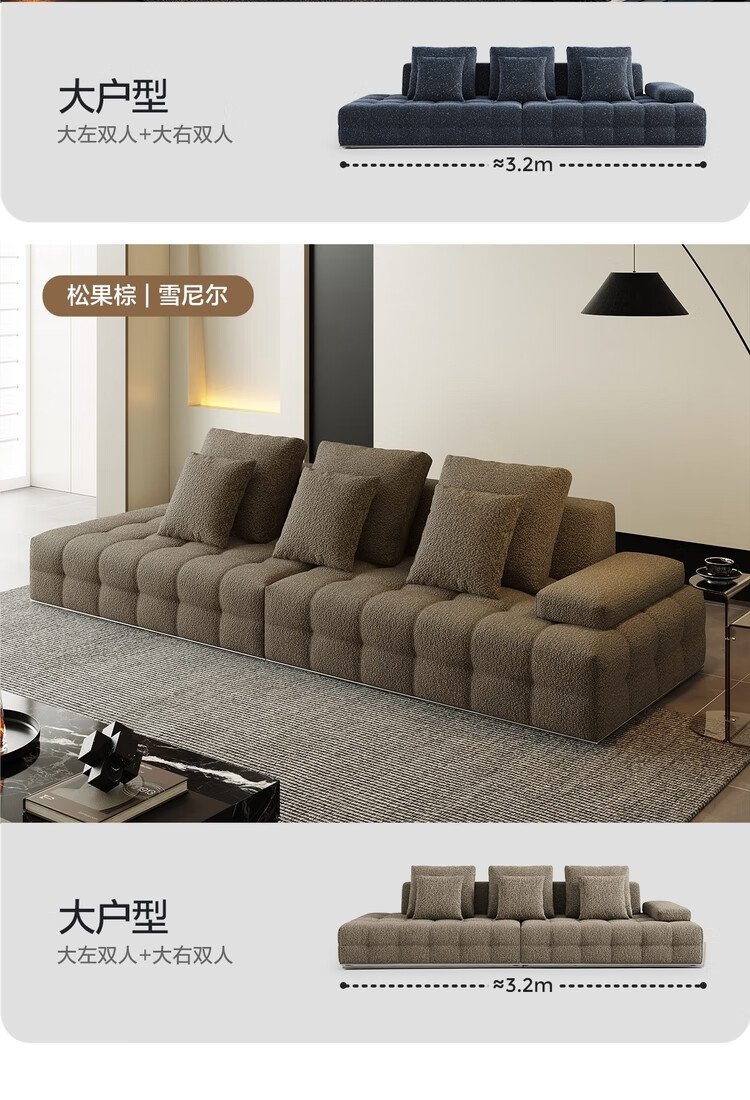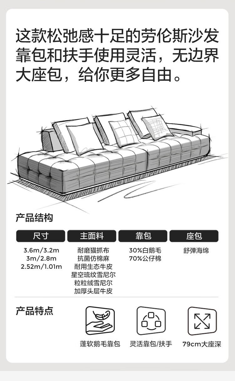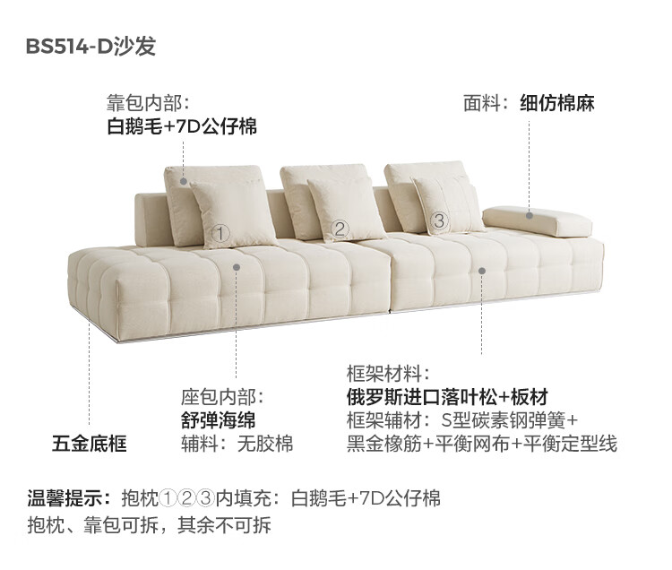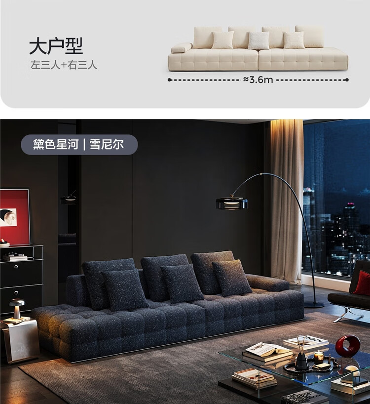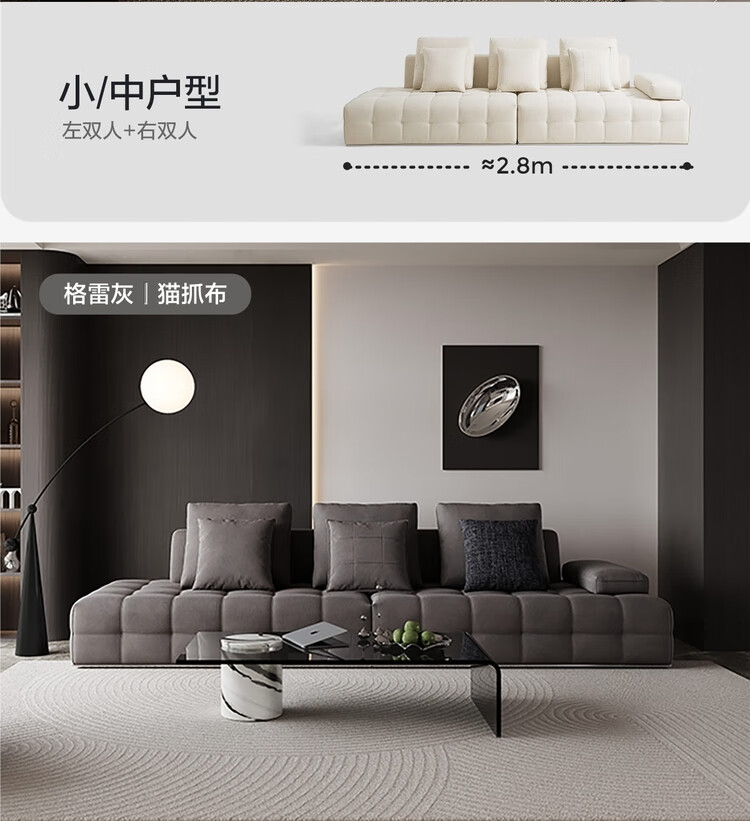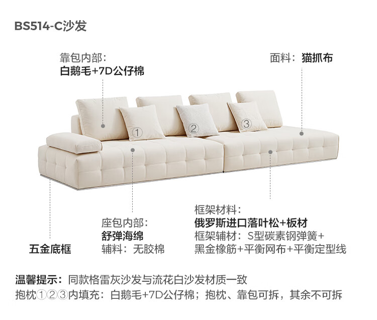 Lin's Home Lawrence Fabric Sofa Living Room New Cat Scratch Cloth Cream Style Sofa Straight Row Lin's Wood Industry BS514 Waterproof and Wear-Resistant Cat Scratch Cloth 3.6 Meters | Liuhua White
