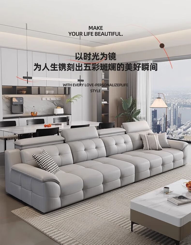 2025 new Italian minimalist high back Lawrence leather sofa living room modern light luxury Internet celebrity leather art sofa six-proof cat claw leather 1.2m double armrest single seat