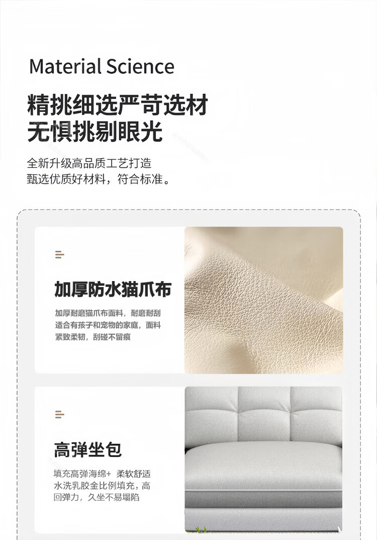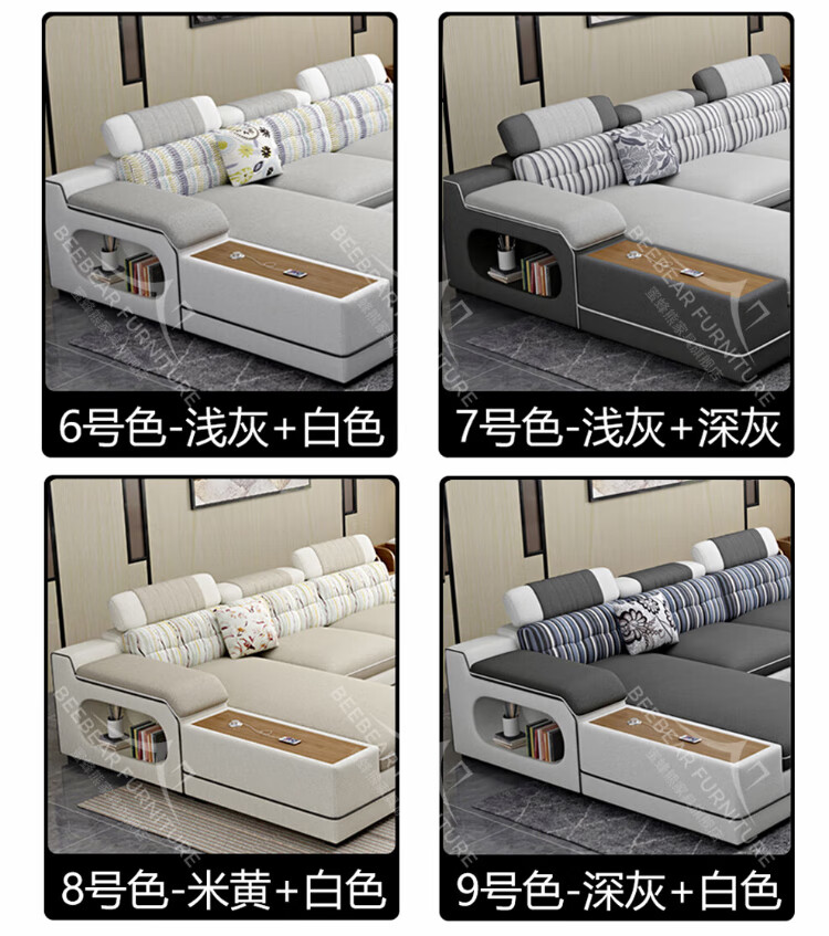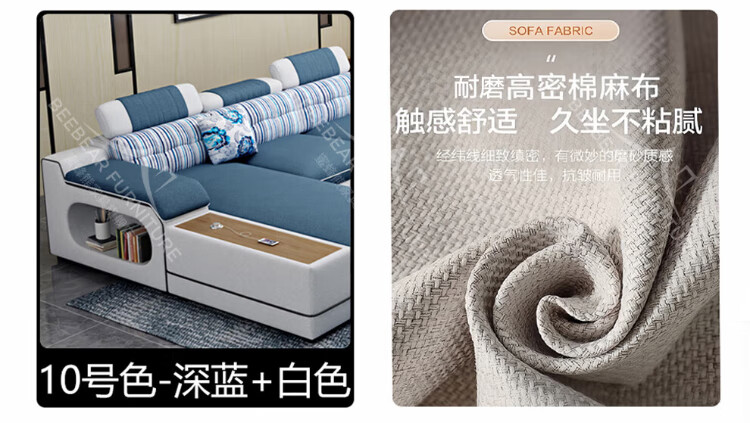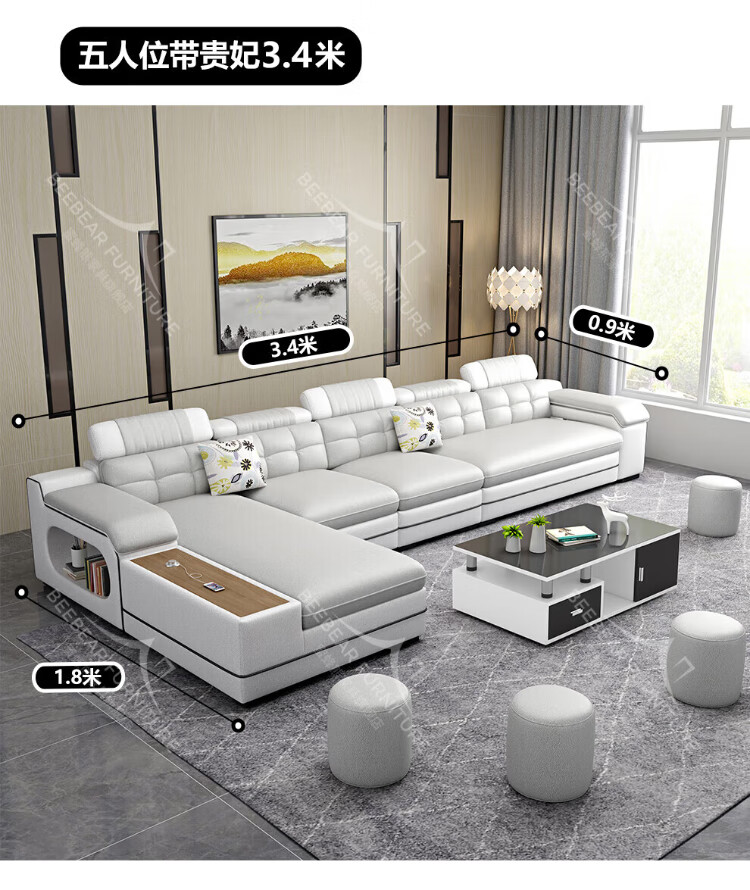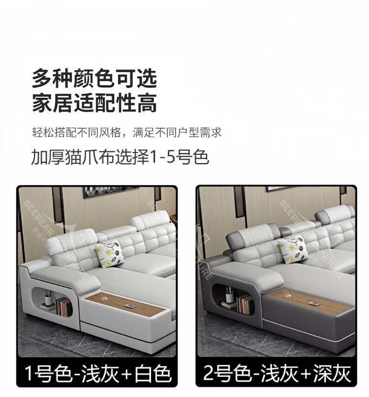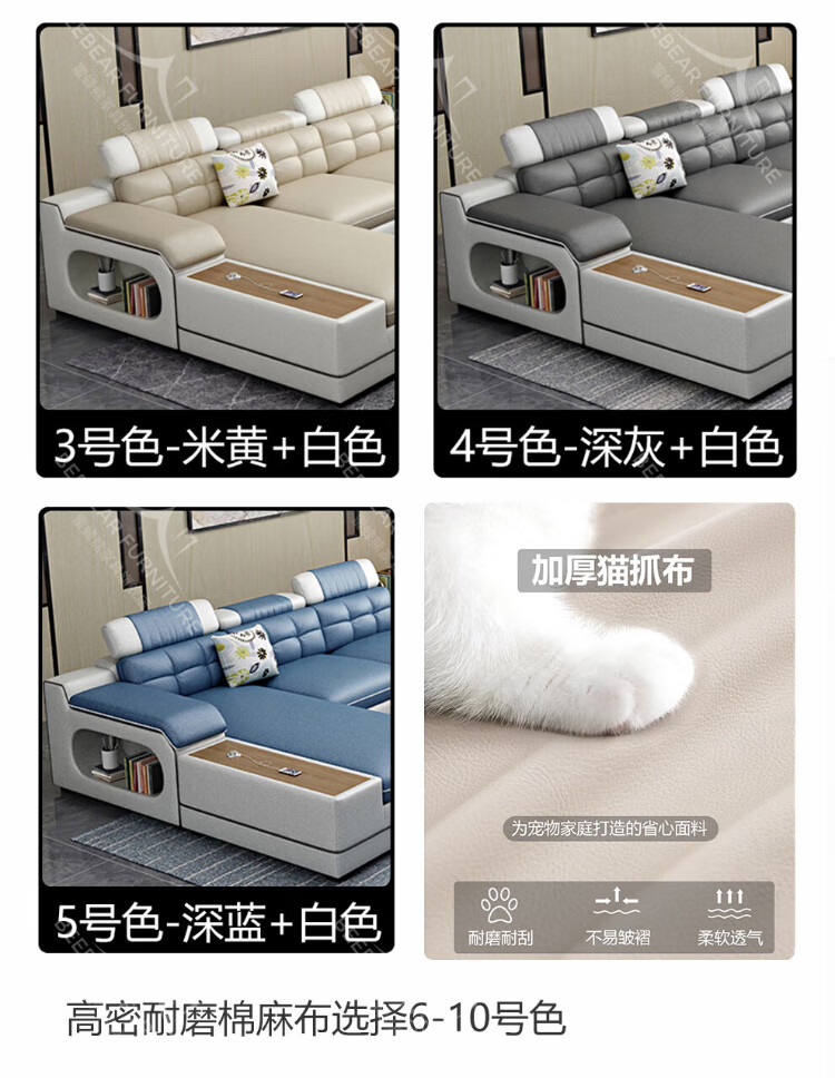 Bee Bear fabric sofa living room small apartment simple modern new cotton and linen no-wash technology cloth cat scratch cloth solid wood sofa (five people + imperial concubine seat) 3.4 meters thick cat claw cloth latex sponge-solid wood frame