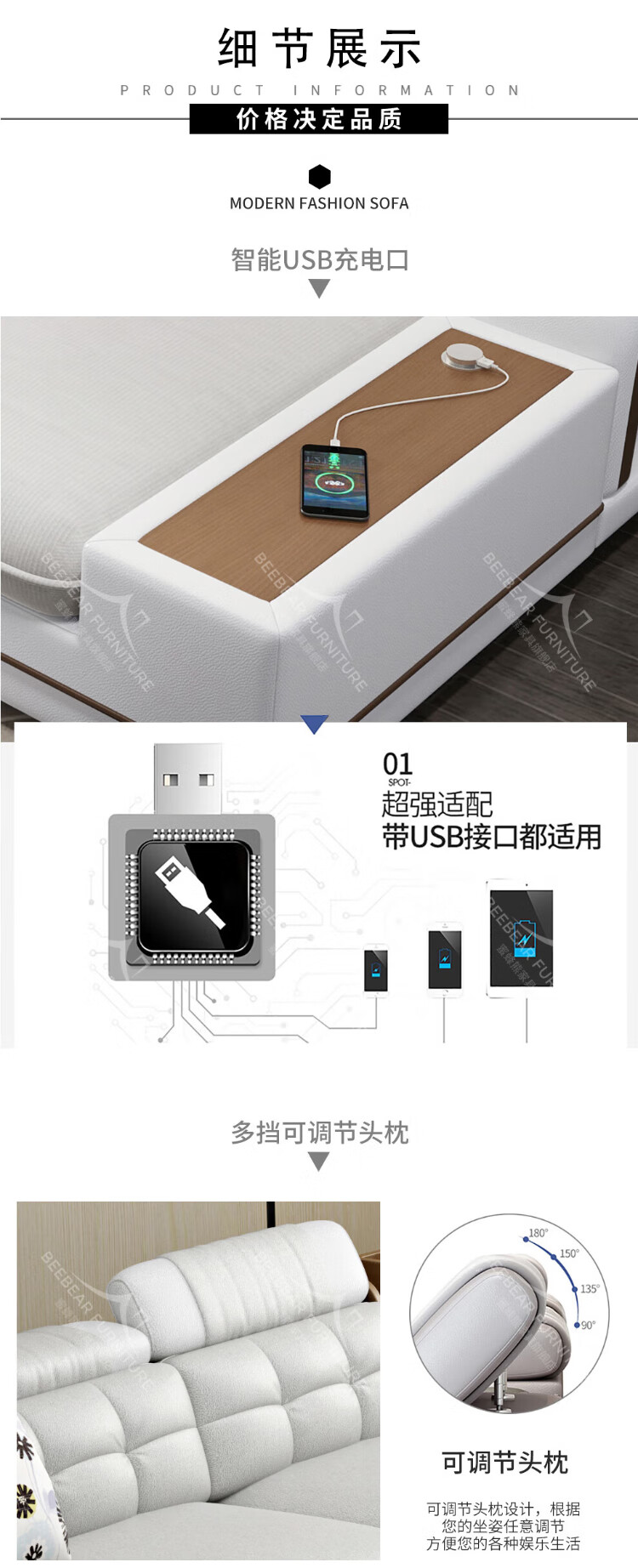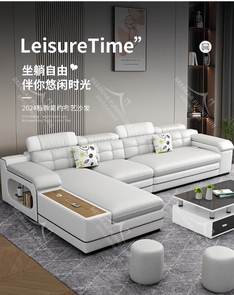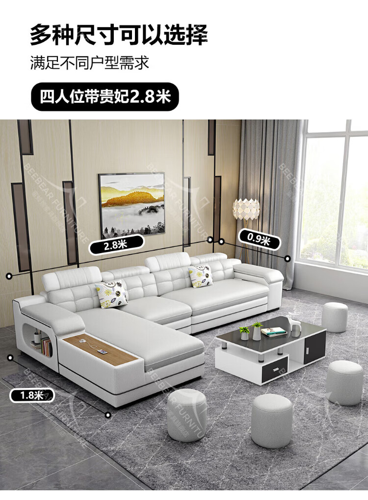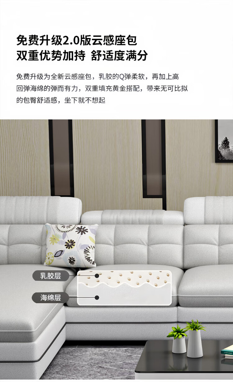 Bee Bear fabric sofa living room small apartment simple modern new cotton and linen no-wash technology cloth cat scratch cloth solid wood sofa (five people + imperial concubine seat) 3.4 meters thick cat claw cloth latex sponge-solid wood frame
