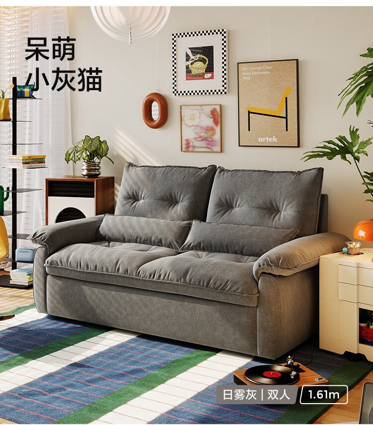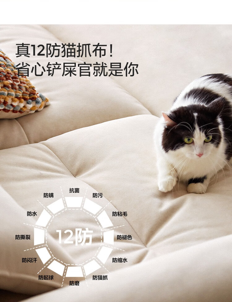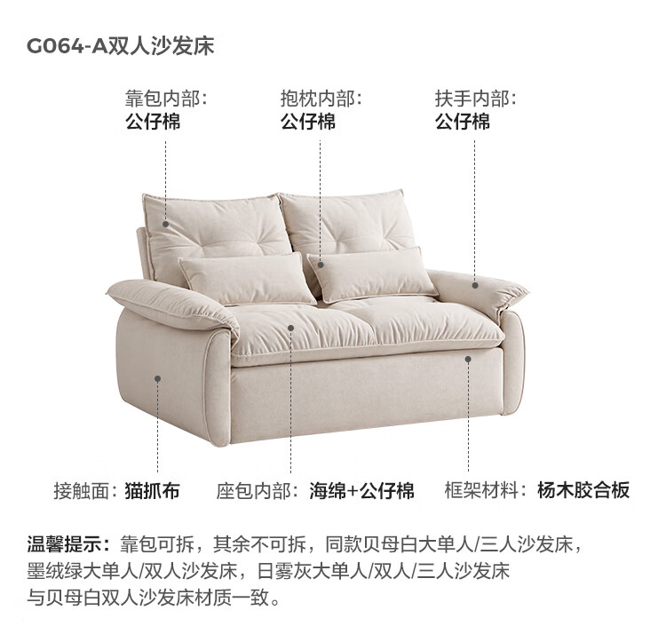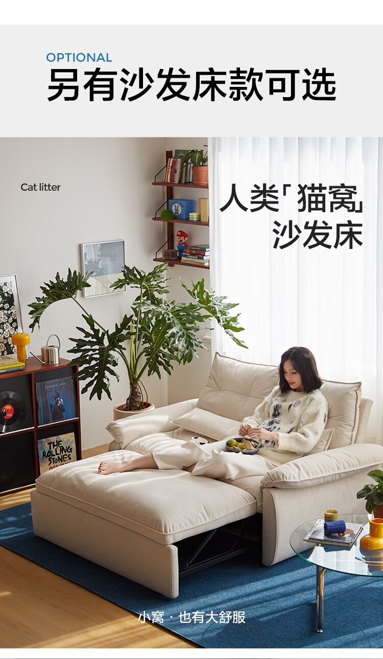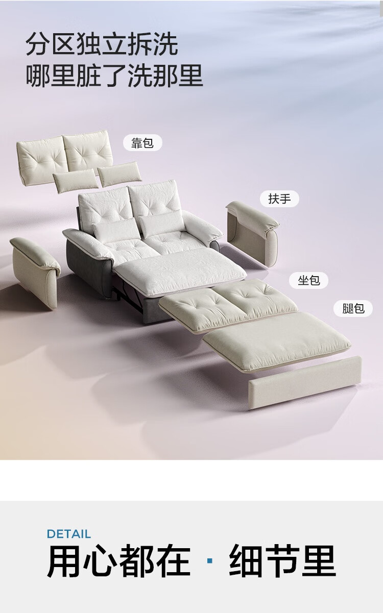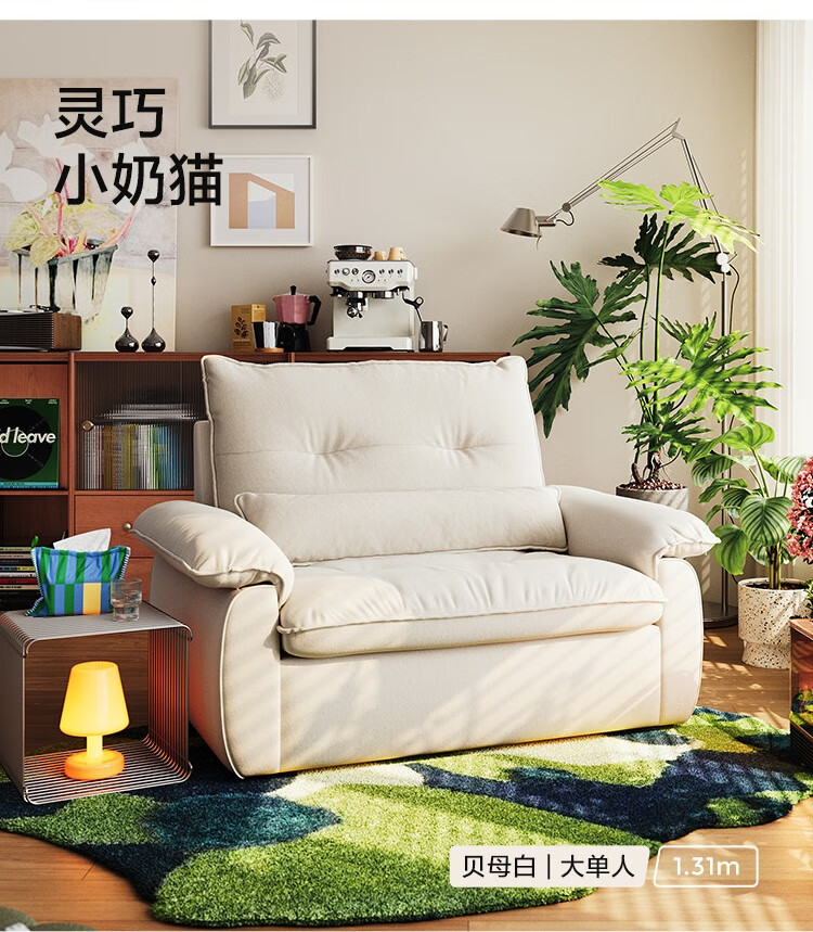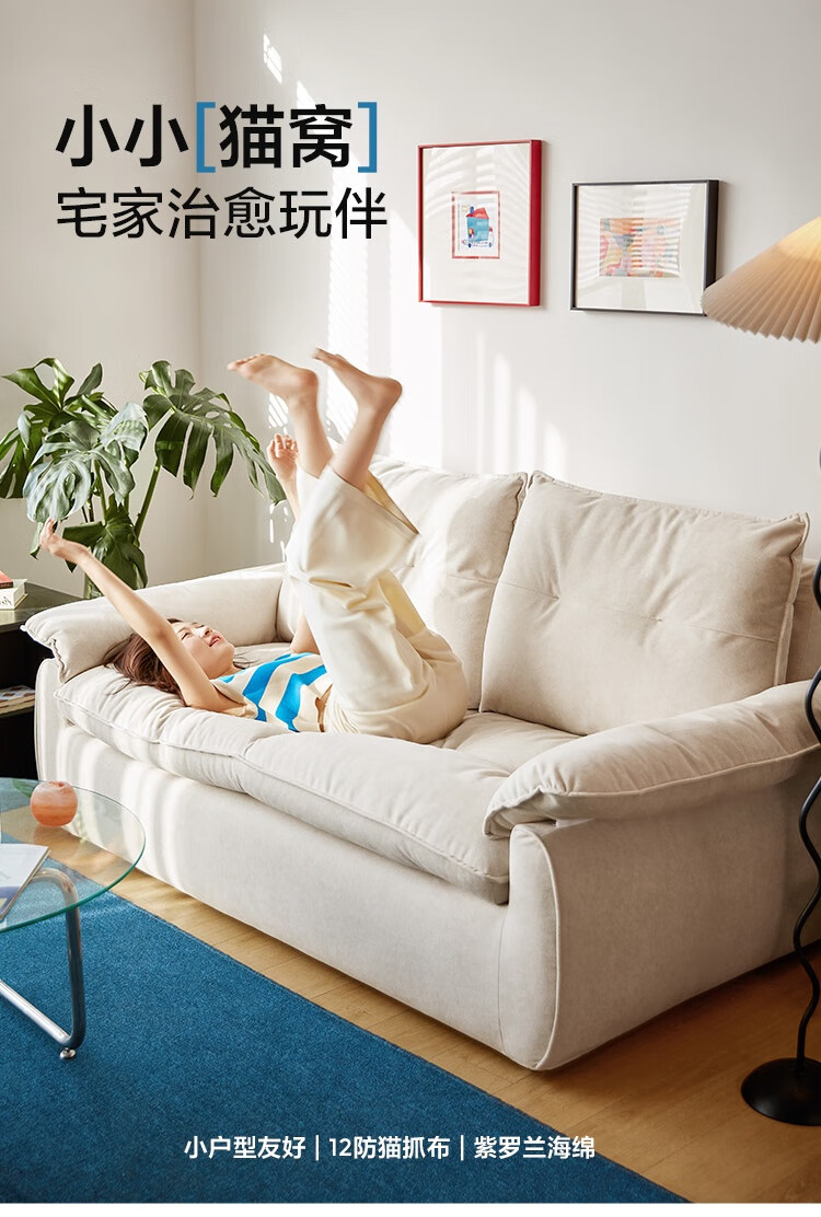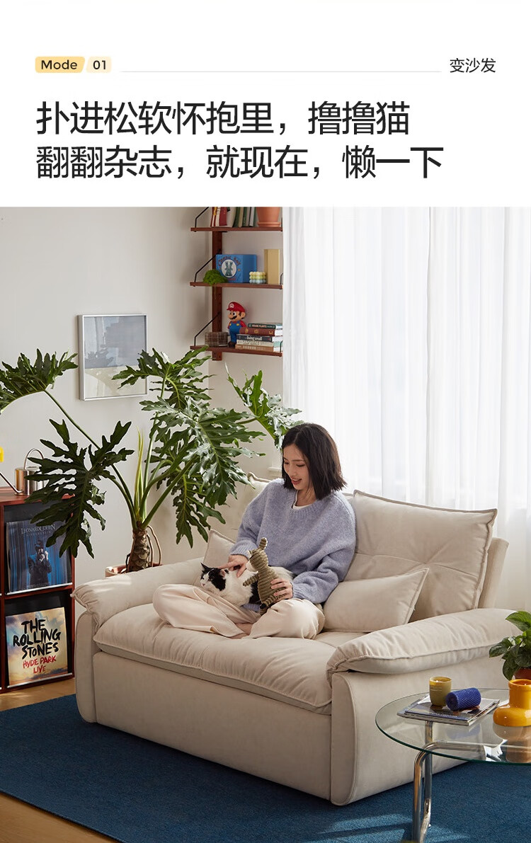 Lin's Home Furnishing Cat Scratch Fabric Sofa Living Room 2025 New Small Apartment Removable and Washable Cloud Sofa Bed All-in-One Dual-Purpose G064 12 Anti-Cat Scratch Cloth Fritillary White | 1.25m Sofa Bed