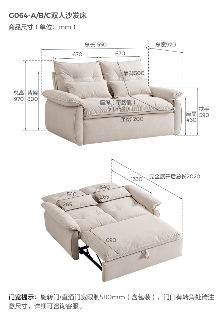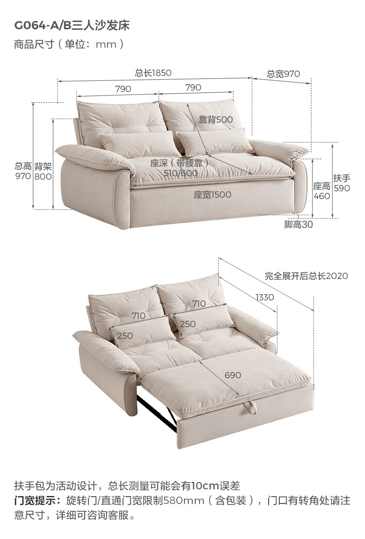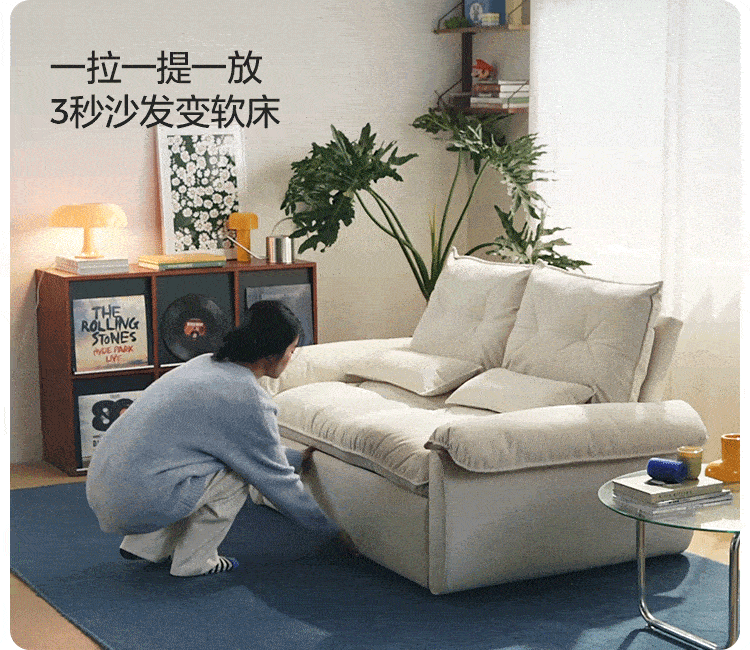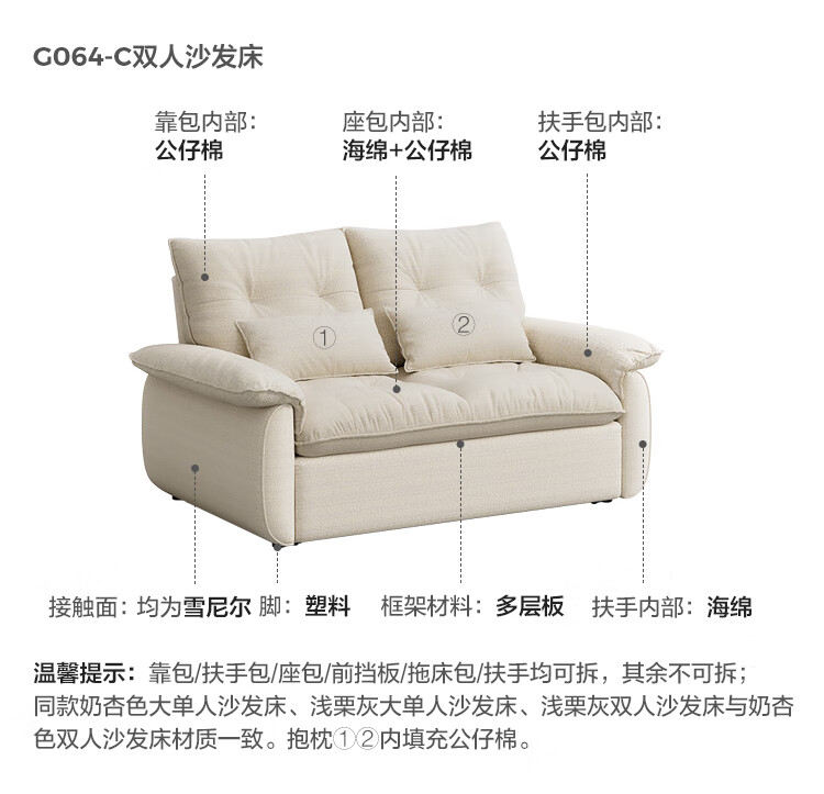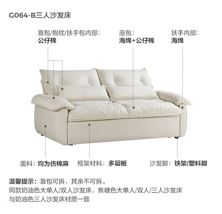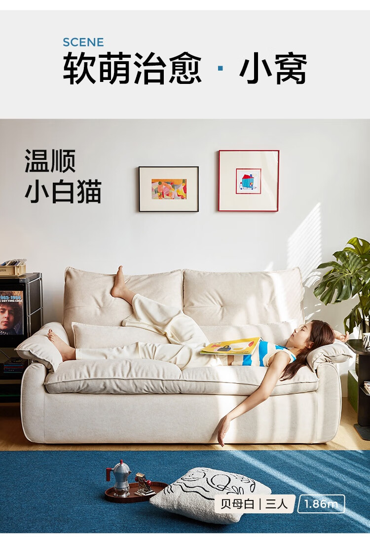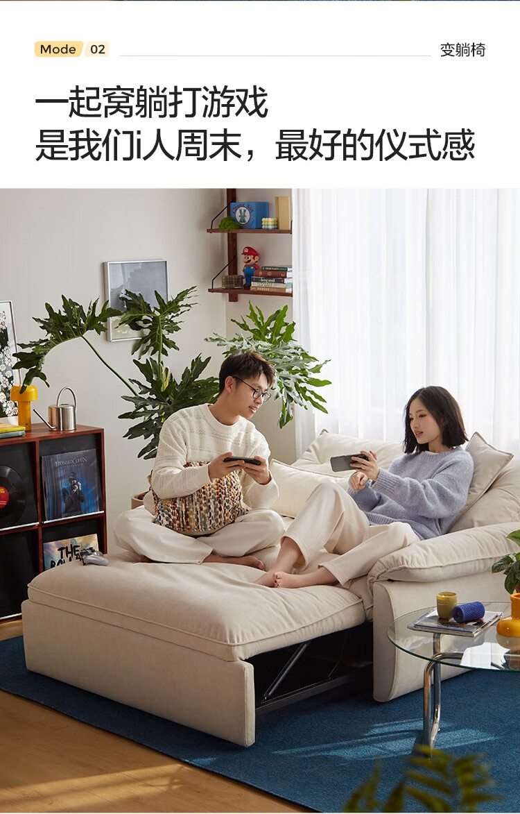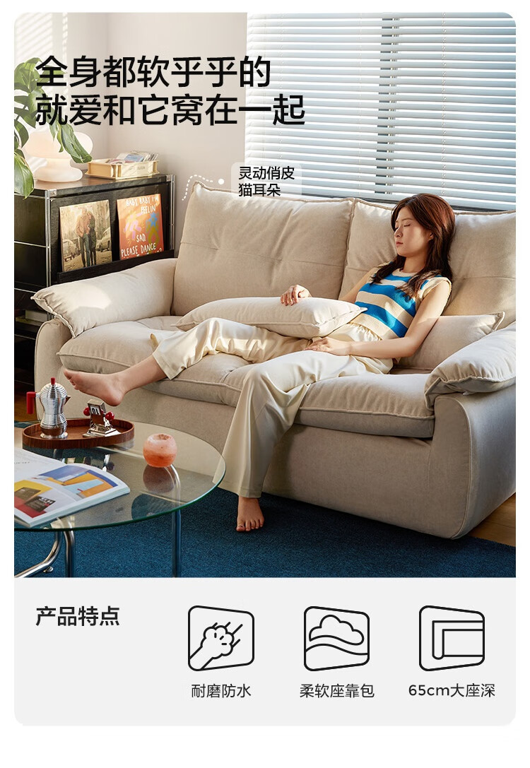 Lin's Home Furnishing Cat Scratch Fabric Sofa Living Room 2025 New Small Apartment Removable and Washable Cloud Sofa Bed All-in-One Dual-Purpose G064 12 Anti-Cat Scratch Cloth Fritillary White | 1.25m Sofa Bed