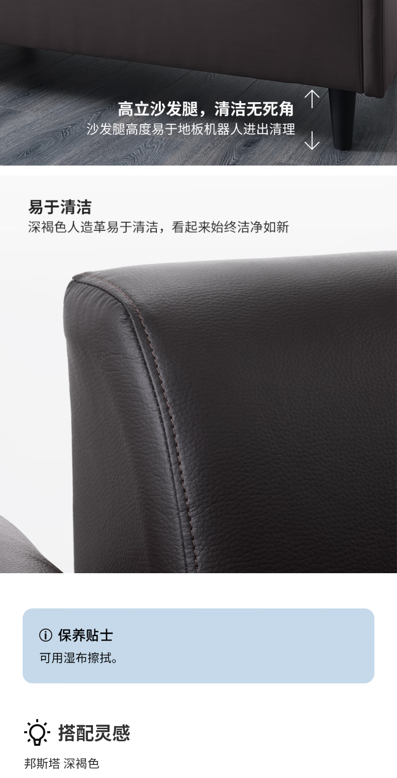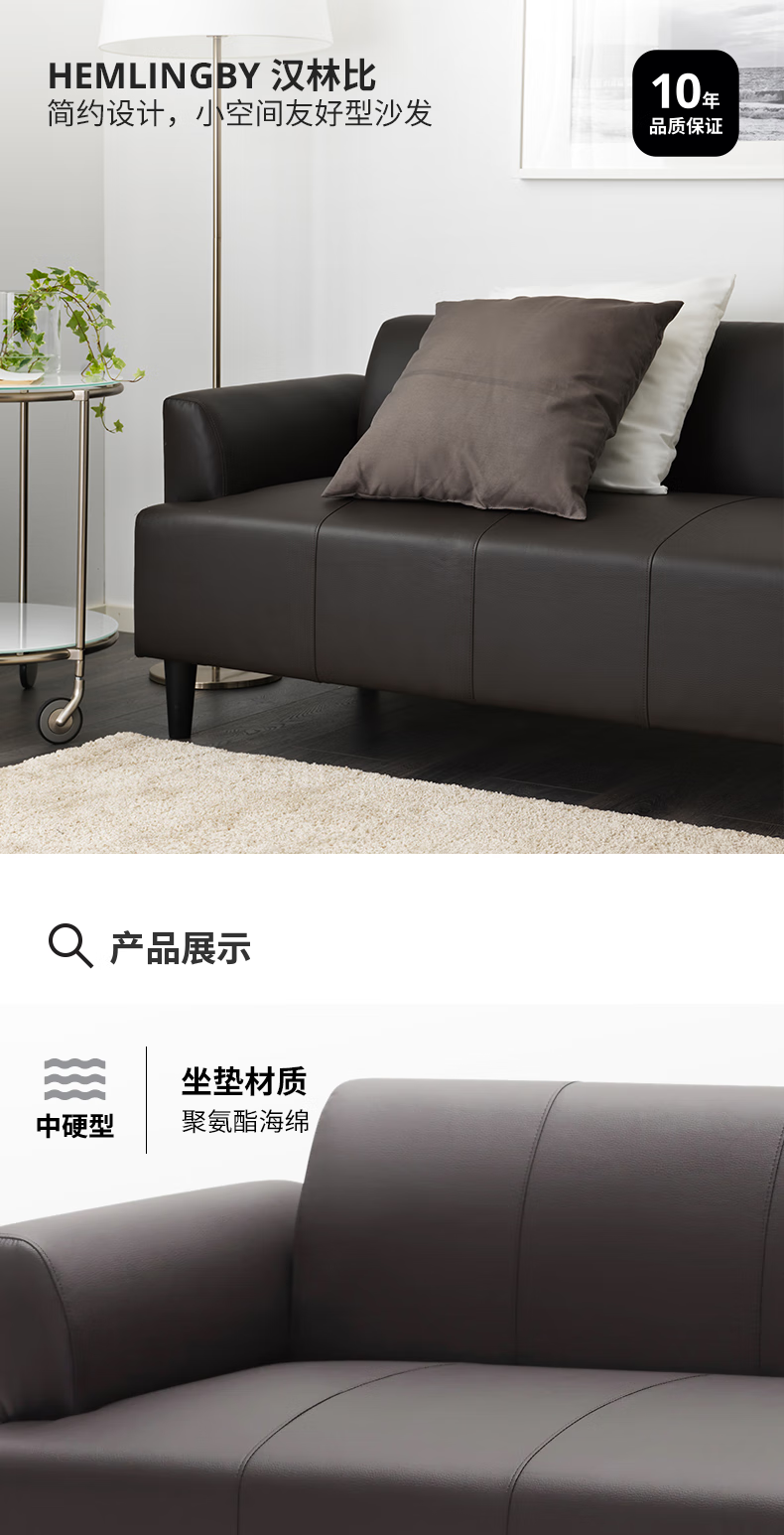 IKEA Hanlin Bi Leather Sofa Double Sofa Bunce Dark Brown Modern Simple Dark Brown Sofa