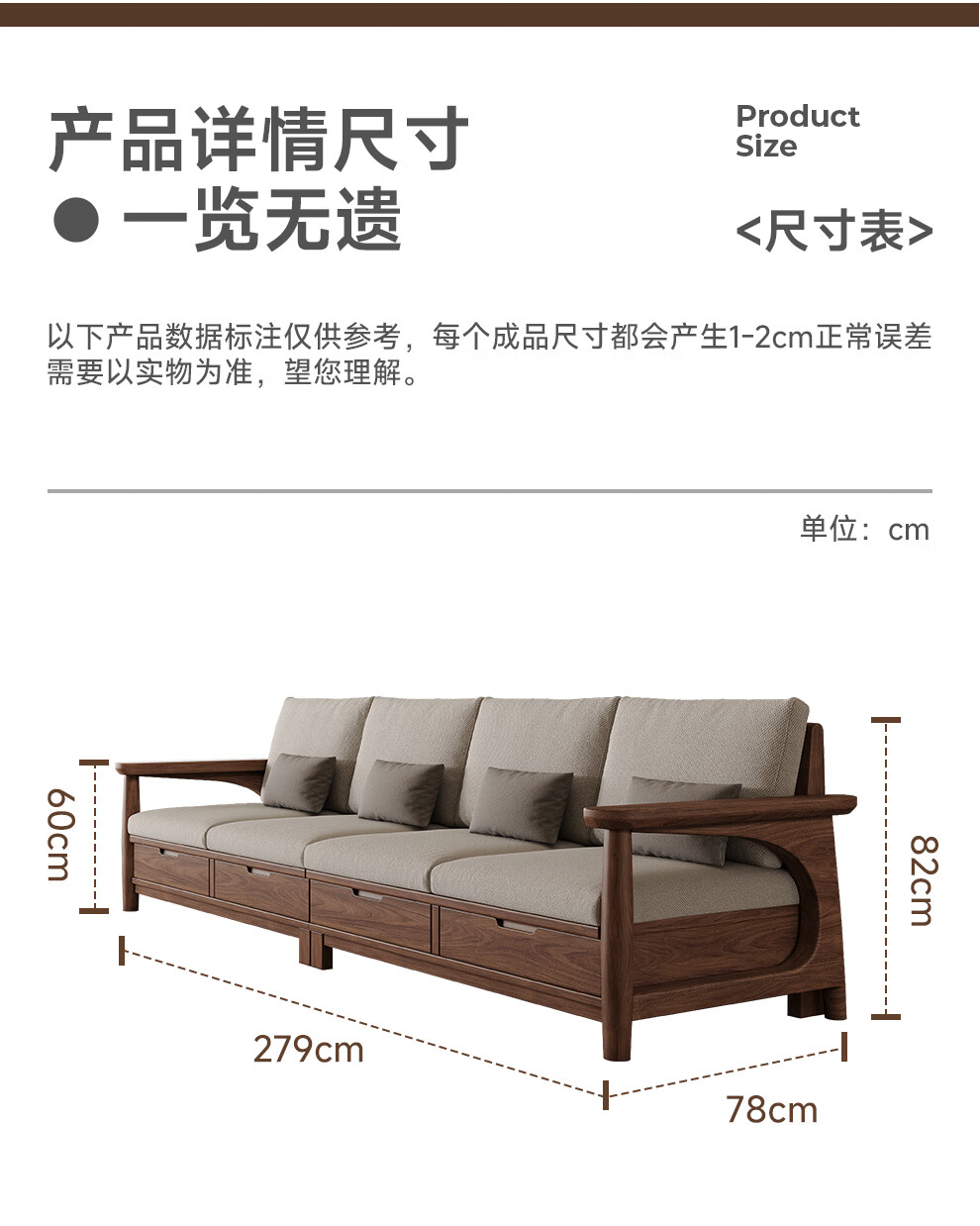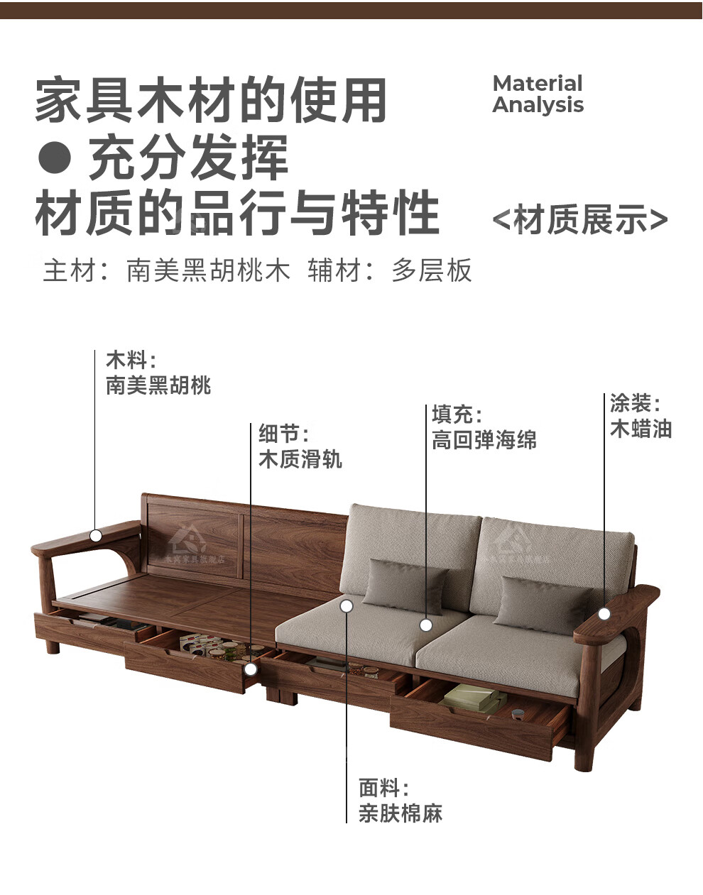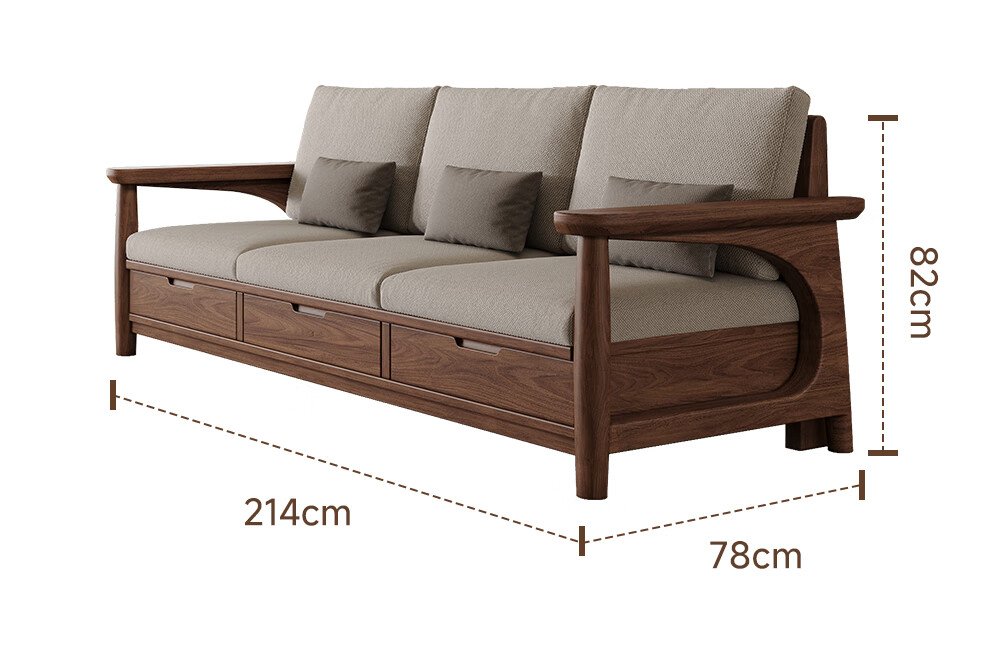 Small wooden nest sofa Song's aesthetic all solid wood sofa living room 2025 new small apartment sofa combination black walnut straight three-seat combination