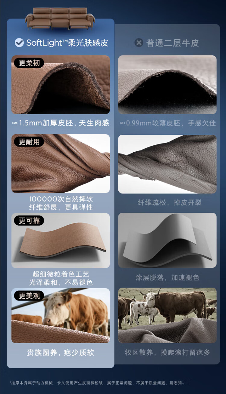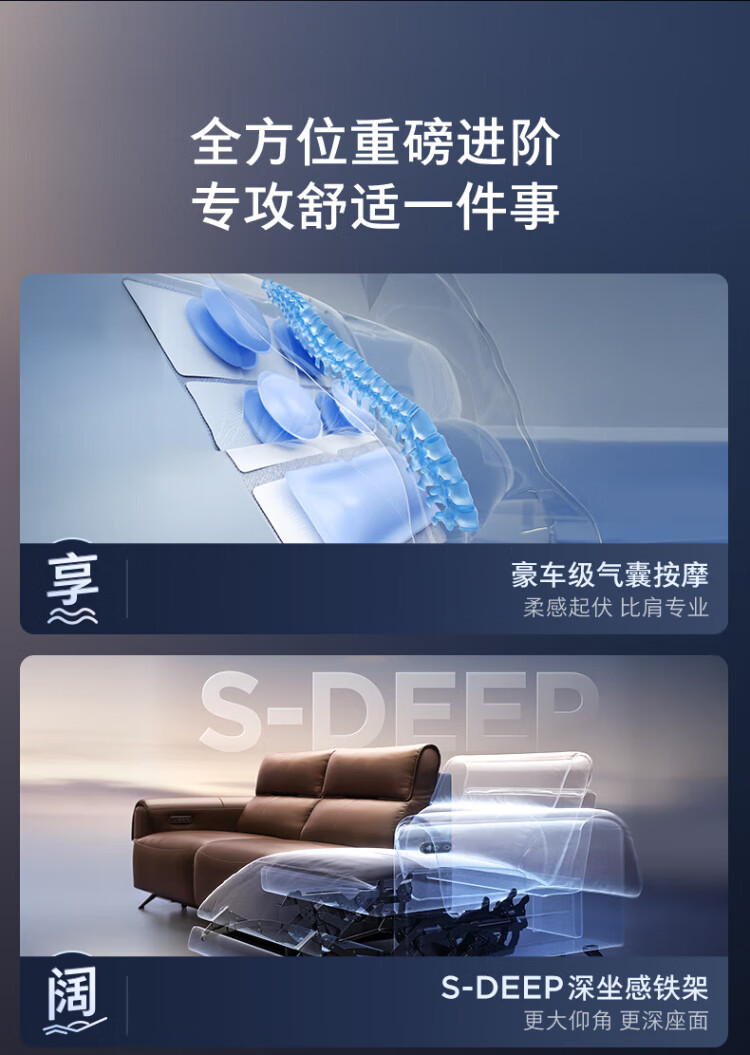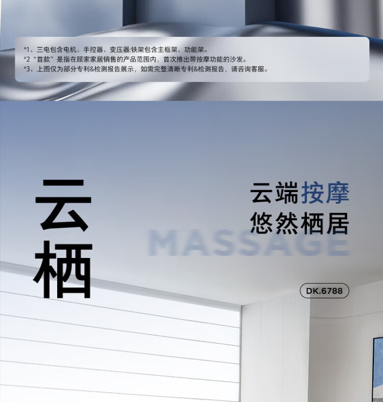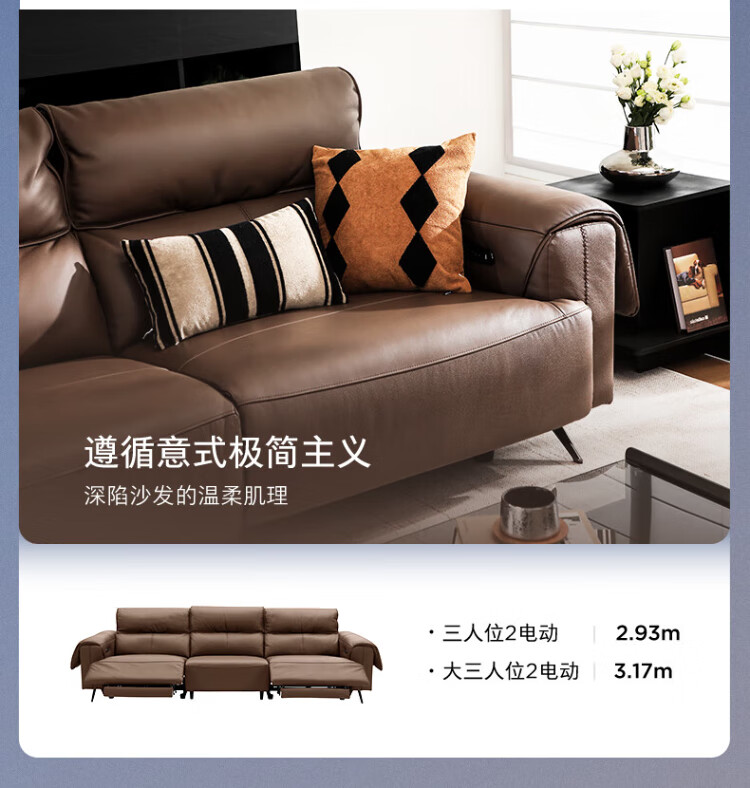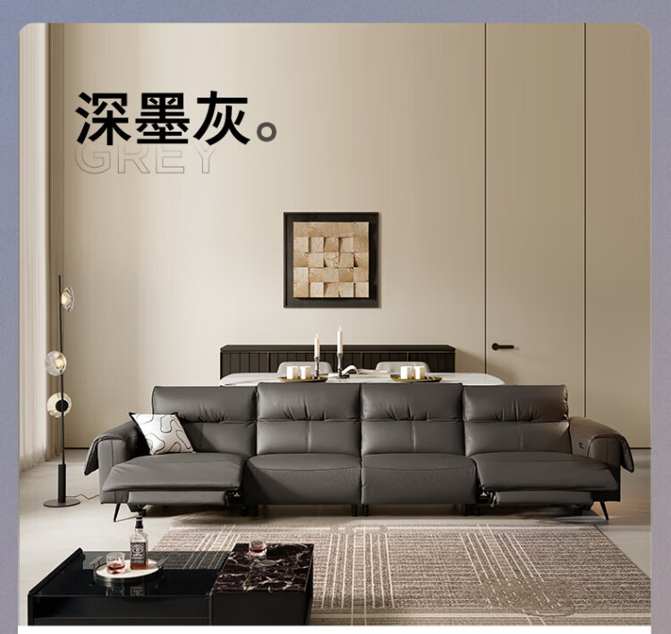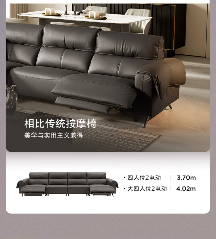 KUKA Italian electric airbag massage 0 wall-mounted thick leather feather smart functional sofa living room new Yunqi 6788 massage hot coffee three-seater double electric 2.93M comes with lift table