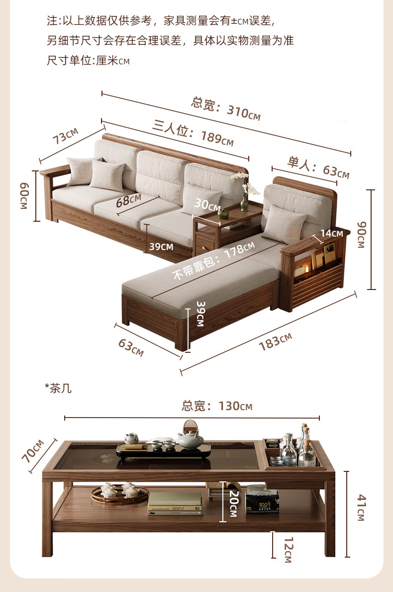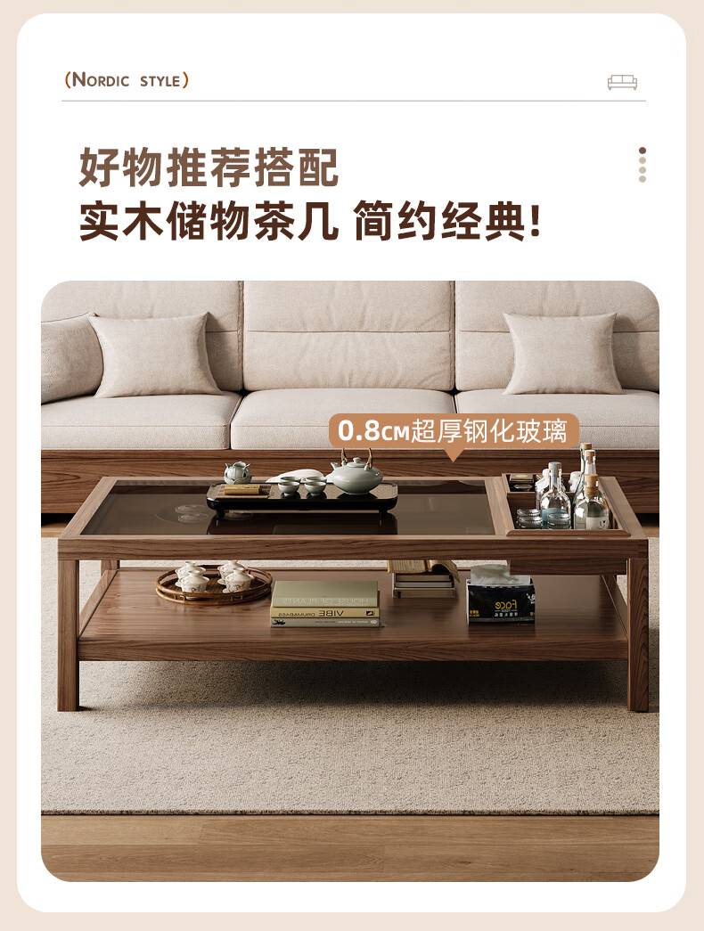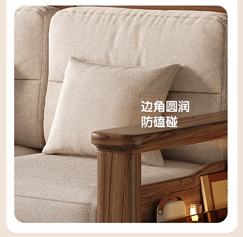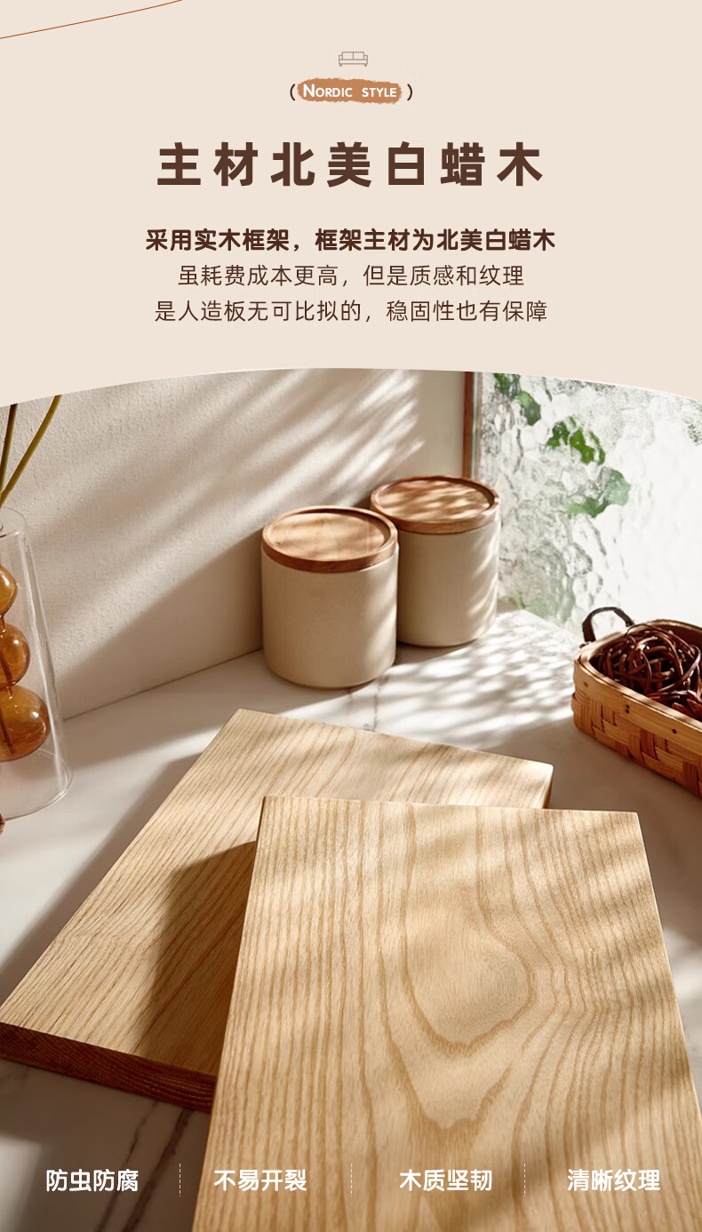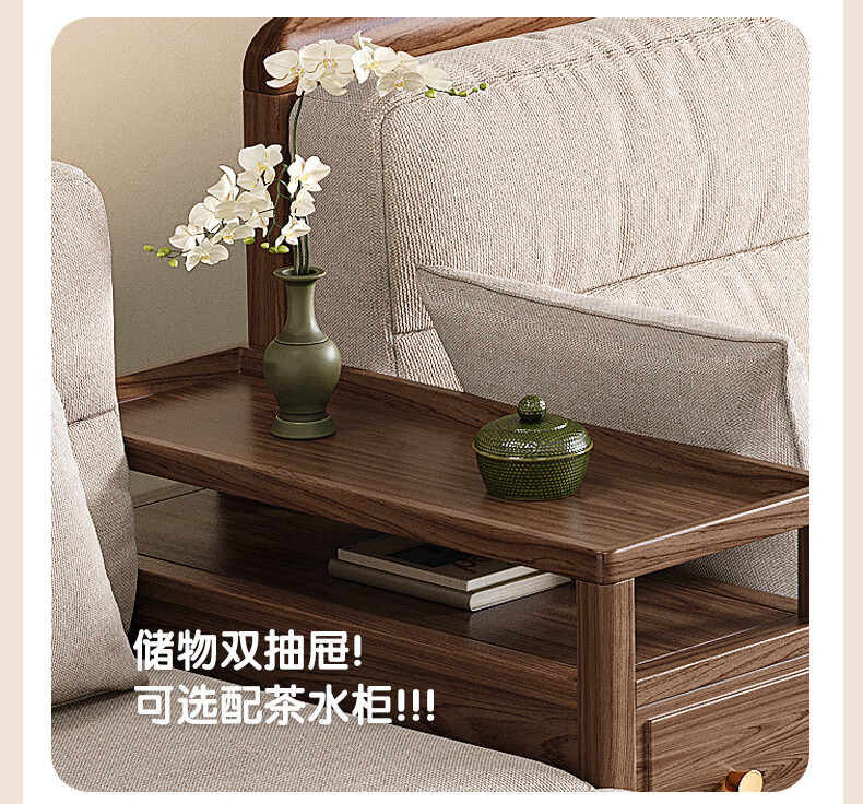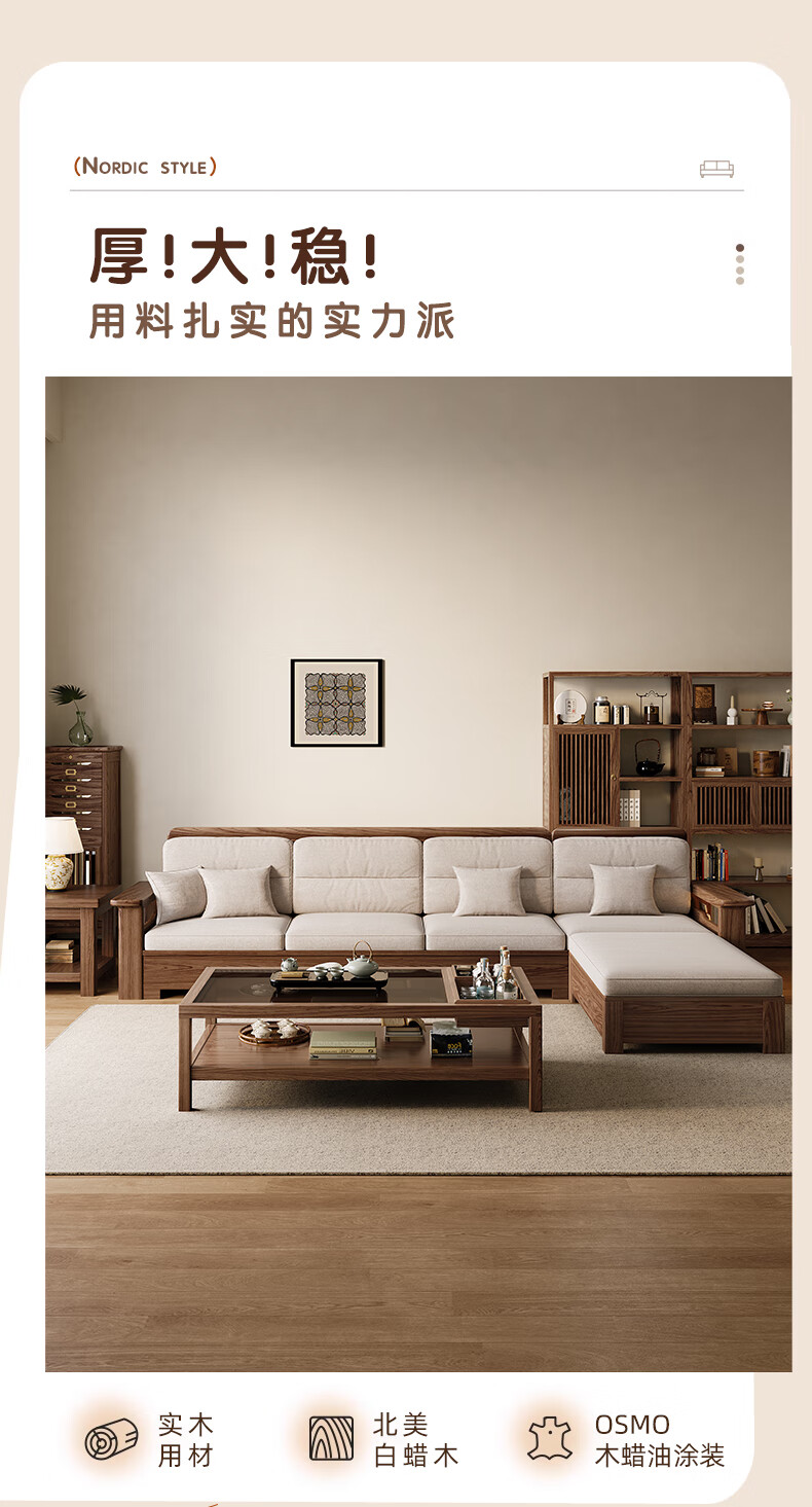 Small wooden nest sofa, mid-century style ash solid wood sofa, simple home living room combination, winter and summer dual-use small apartment furniture, straight row of four people (2+2), high box storage