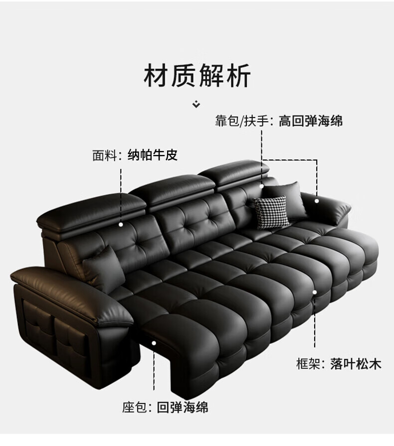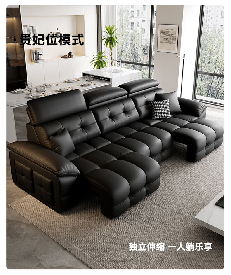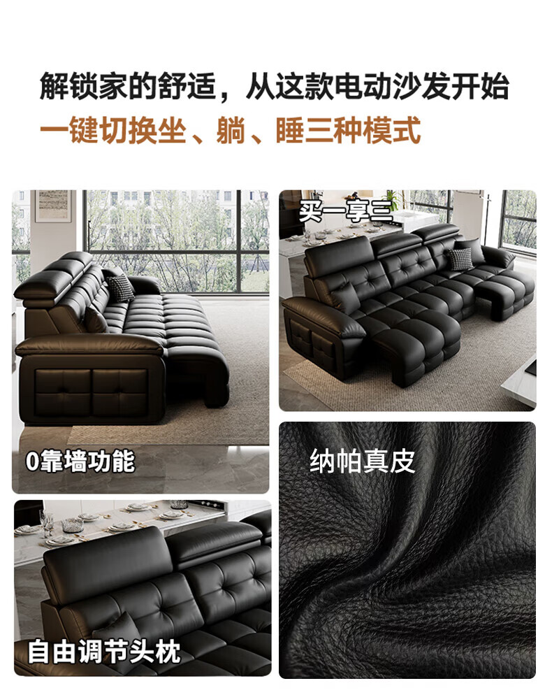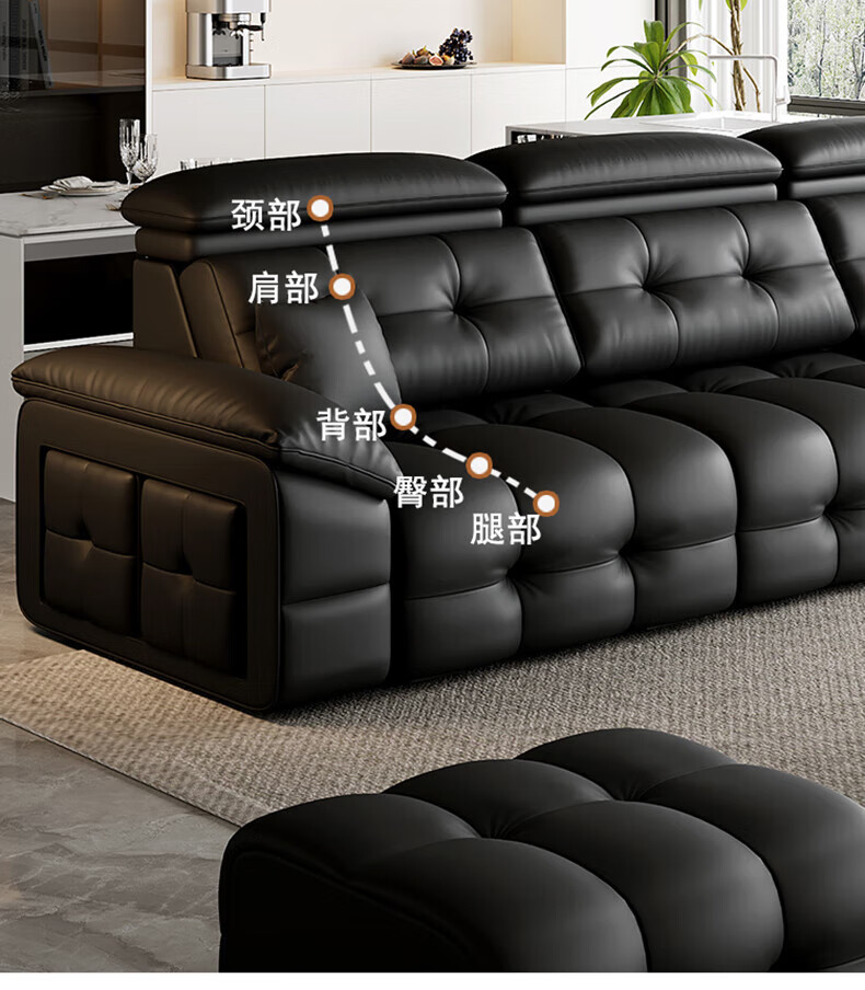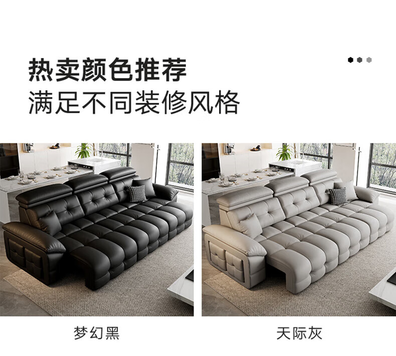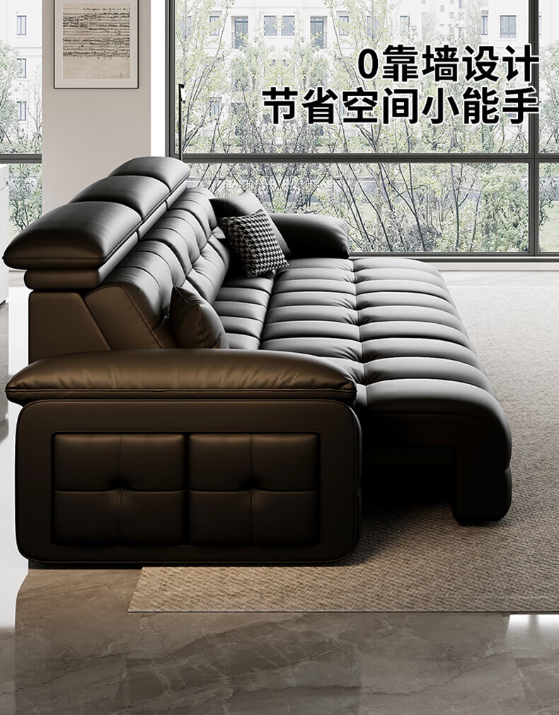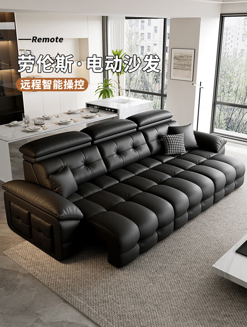 Nanshi Home Italian Minimalist Lawrence Electric Functional Sofa Living Room Zero Wall Adjustable Headrest Electric Sofa 2.55m Double Position Fully Electric Position Leather Contact Surface Wireless Remote Control Version