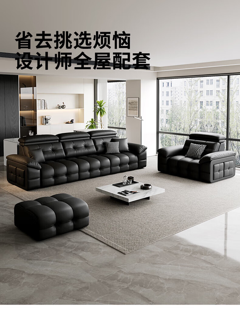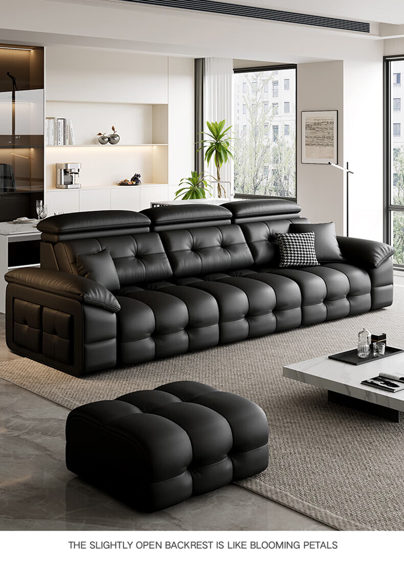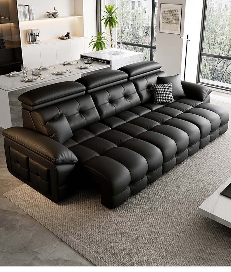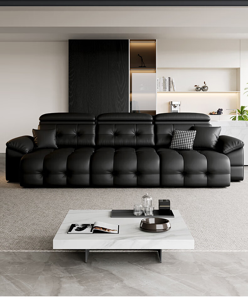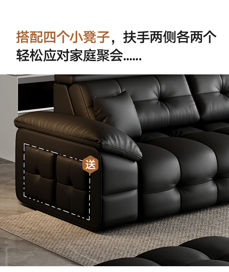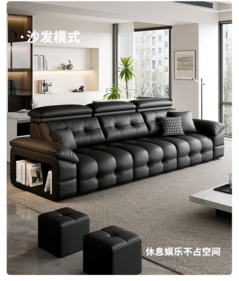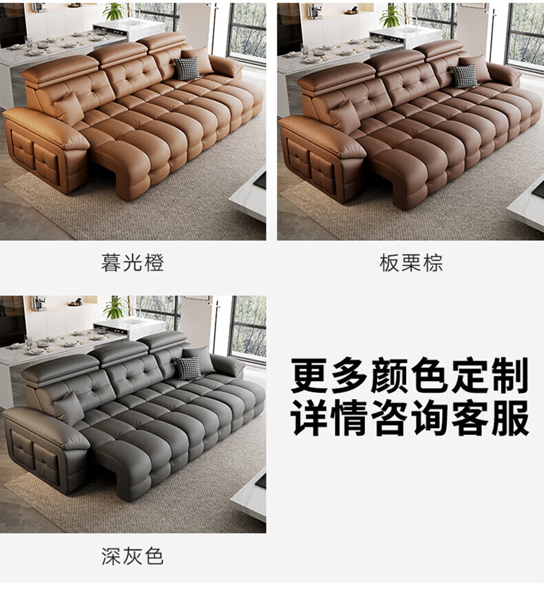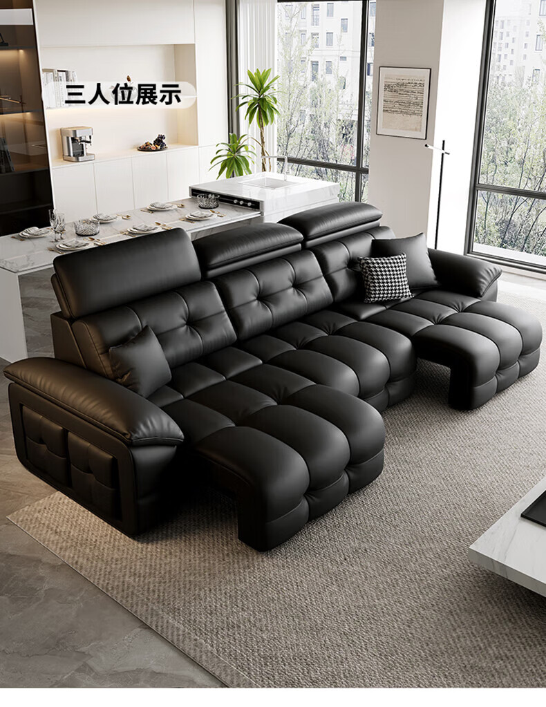 Nanshi Home Italian Minimalist Lawrence Electric Functional Sofa Living Room Zero Wall Adjustable Headrest Electric Sofa 2.55m Double Position Fully Electric Position Leather Contact Surface Wireless Remote Control Version