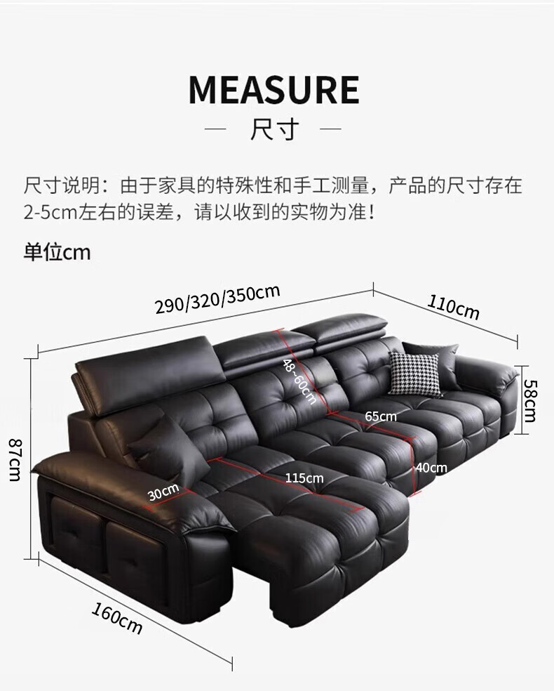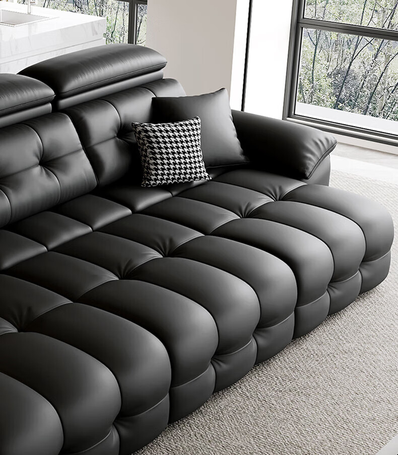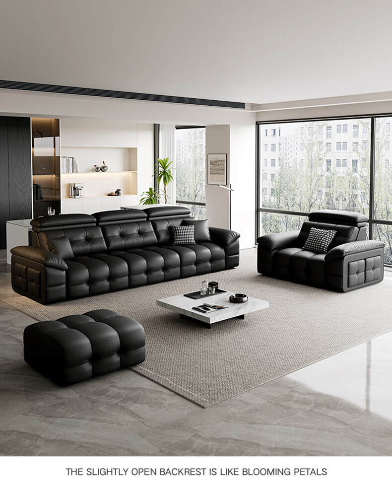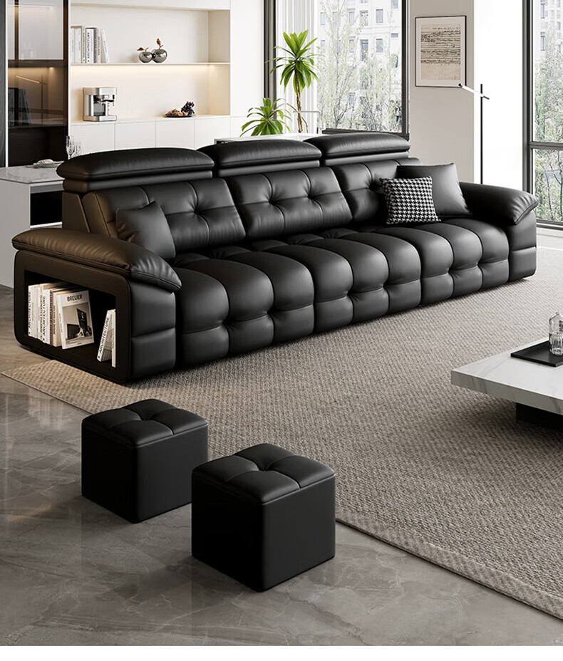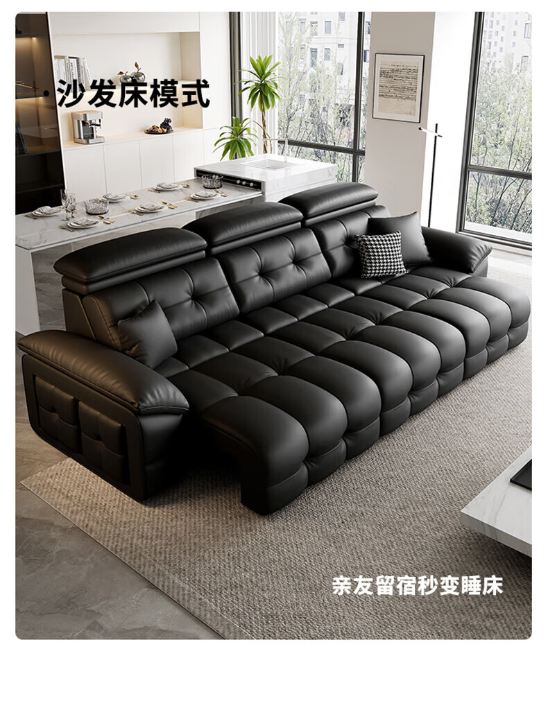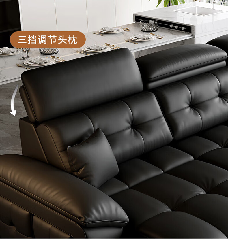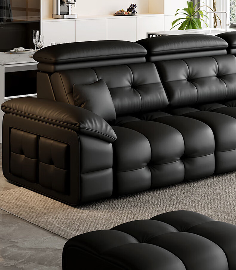 Nanshi Home Italian Minimalist Lawrence Electric Functional Sofa Living Room Zero Wall Adjustable Headrest Electric Sofa 2.55m Double Position Fully Electric Position Leather Contact Surface Wireless Remote Control Version