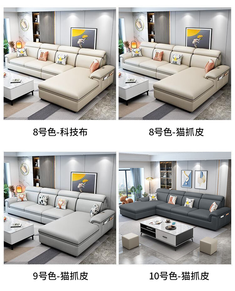 Leather art sofa modern minimalist living room fabric sofa large and small apartment combination cat claw technology cloth sofa color No. 9 - cat scratch leather - latex style 2.8 meters / four people + imperial concubine Please note the color when placing an order