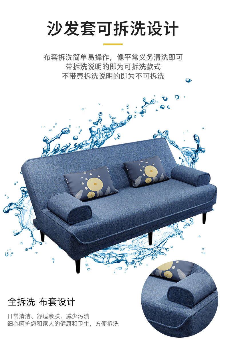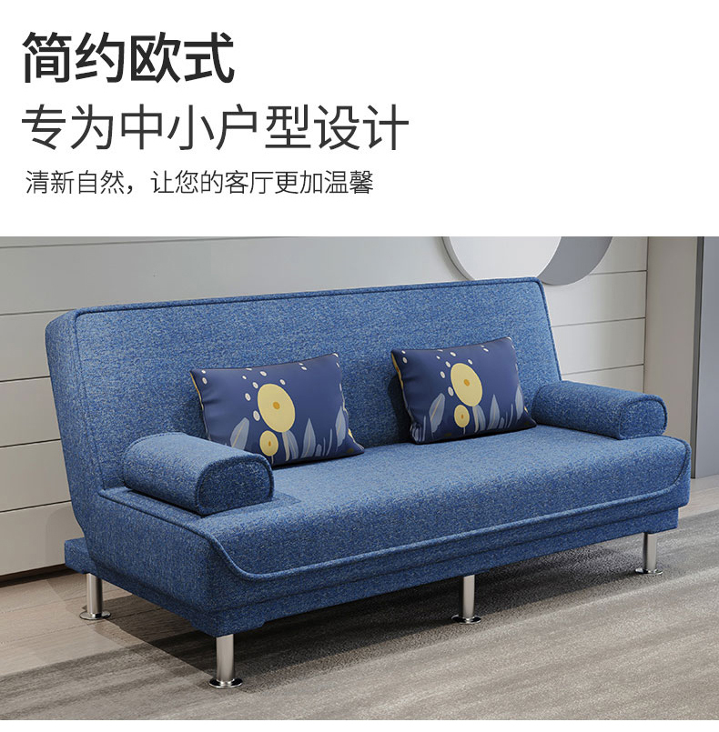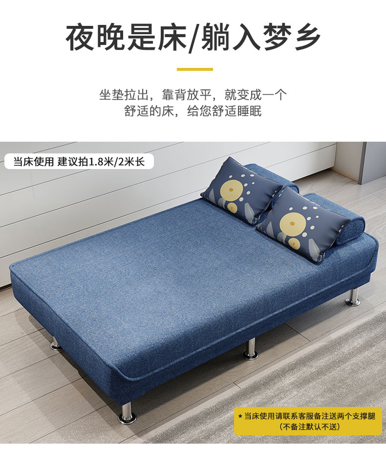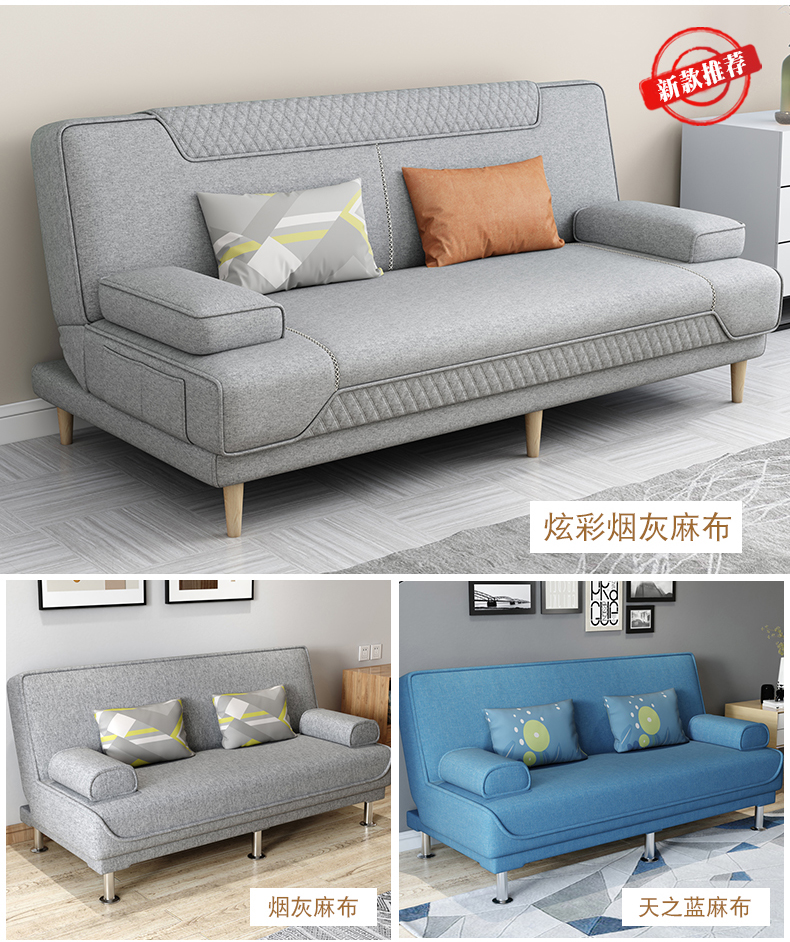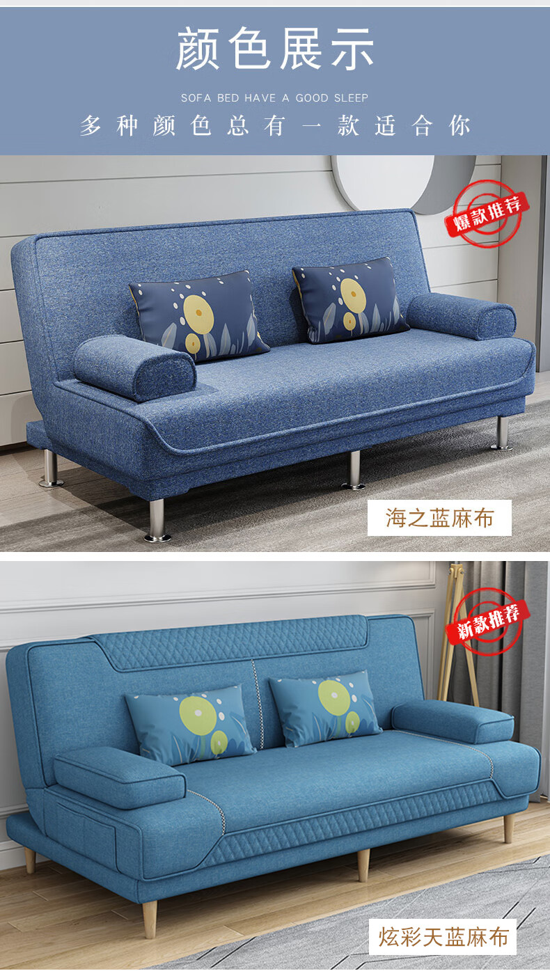 Huiyue multifunctional folding sofa bed dual-purpose simple three-person small apartment living room rental furniture lazy sofa recommended sea blue linen removable and washable three-seater 1.8 meters 2 armrests 2 waist pillows