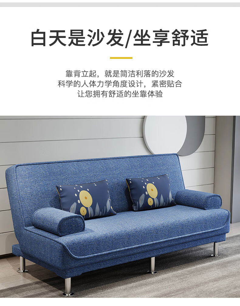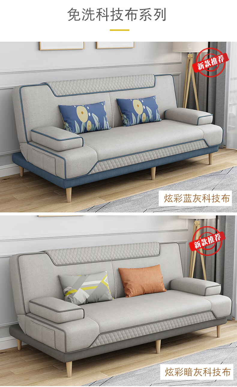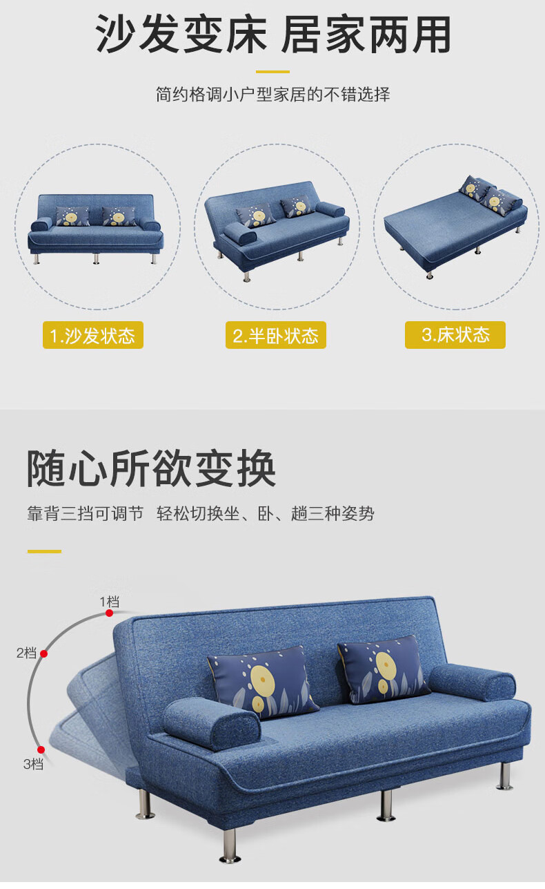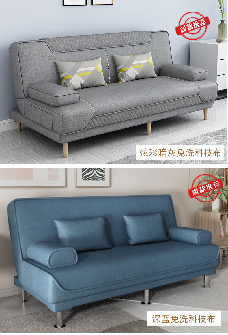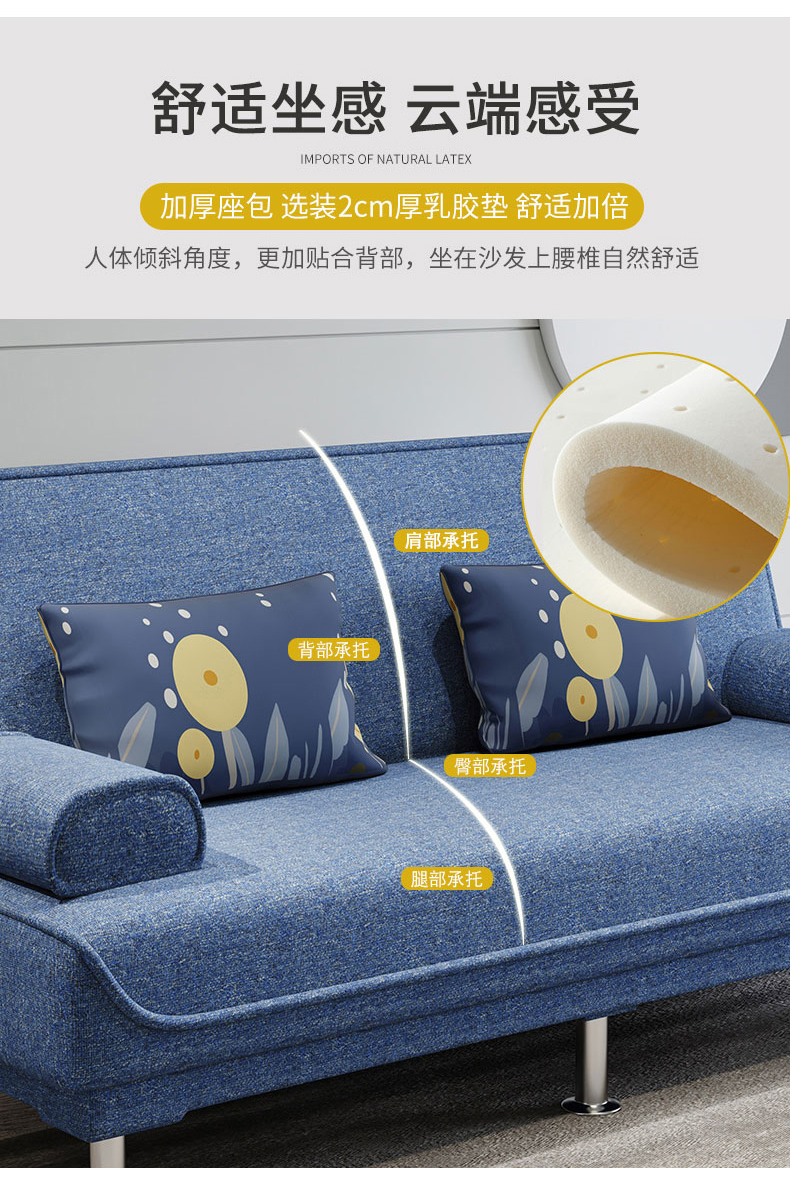 Huiyue multifunctional folding sofa bed dual-purpose simple three-person small apartment living room rental furniture lazy sofa recommended sea blue linen removable and washable three-seater 1.8 meters 2 armrests 2 waist pillows