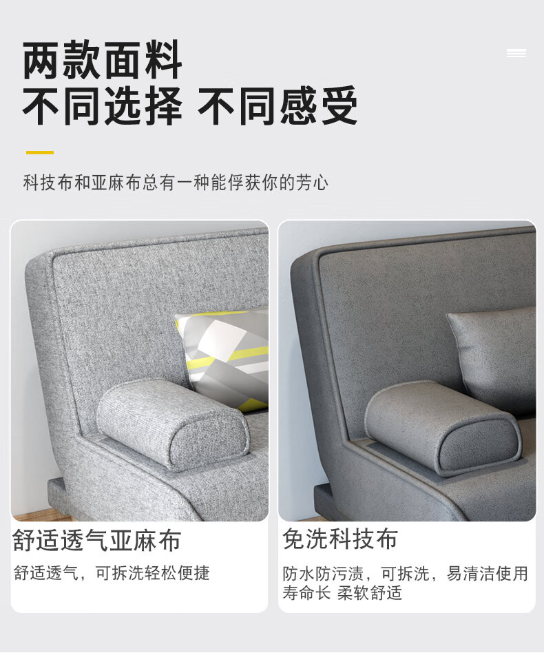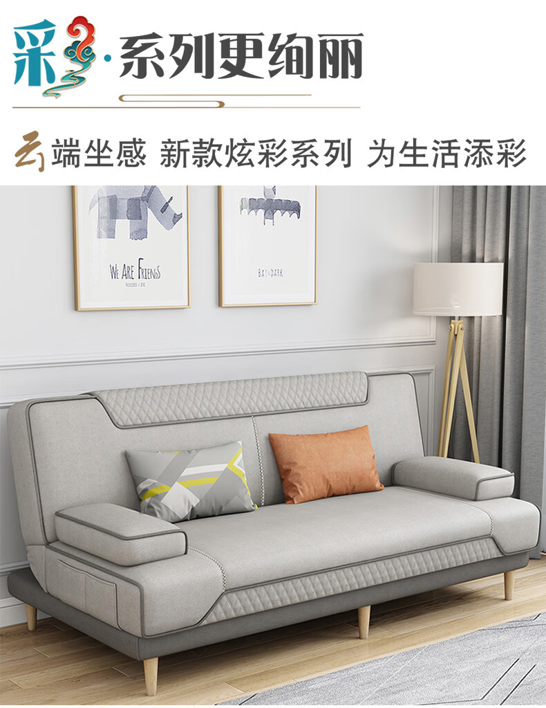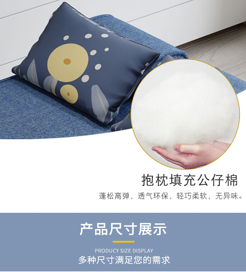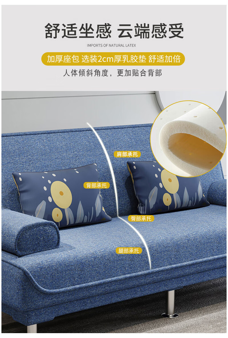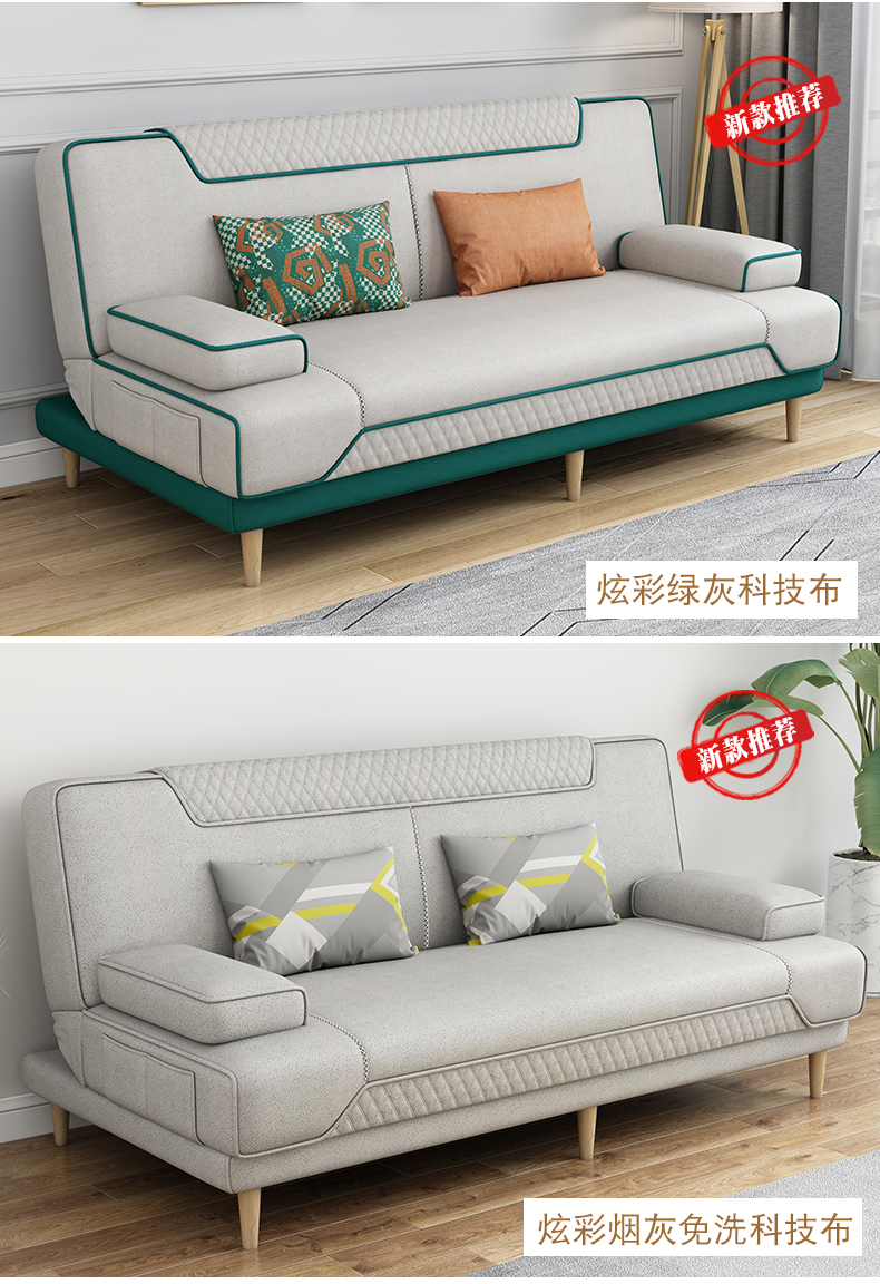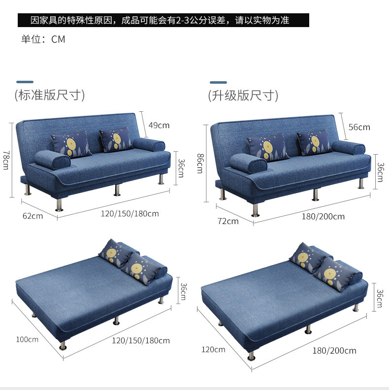 Huiyue multifunctional folding sofa bed dual-purpose simple three-person small apartment living room rental furniture lazy sofa recommended sea blue linen removable and washable three-seater 1.8 meters 2 armrests 2 waist pillows